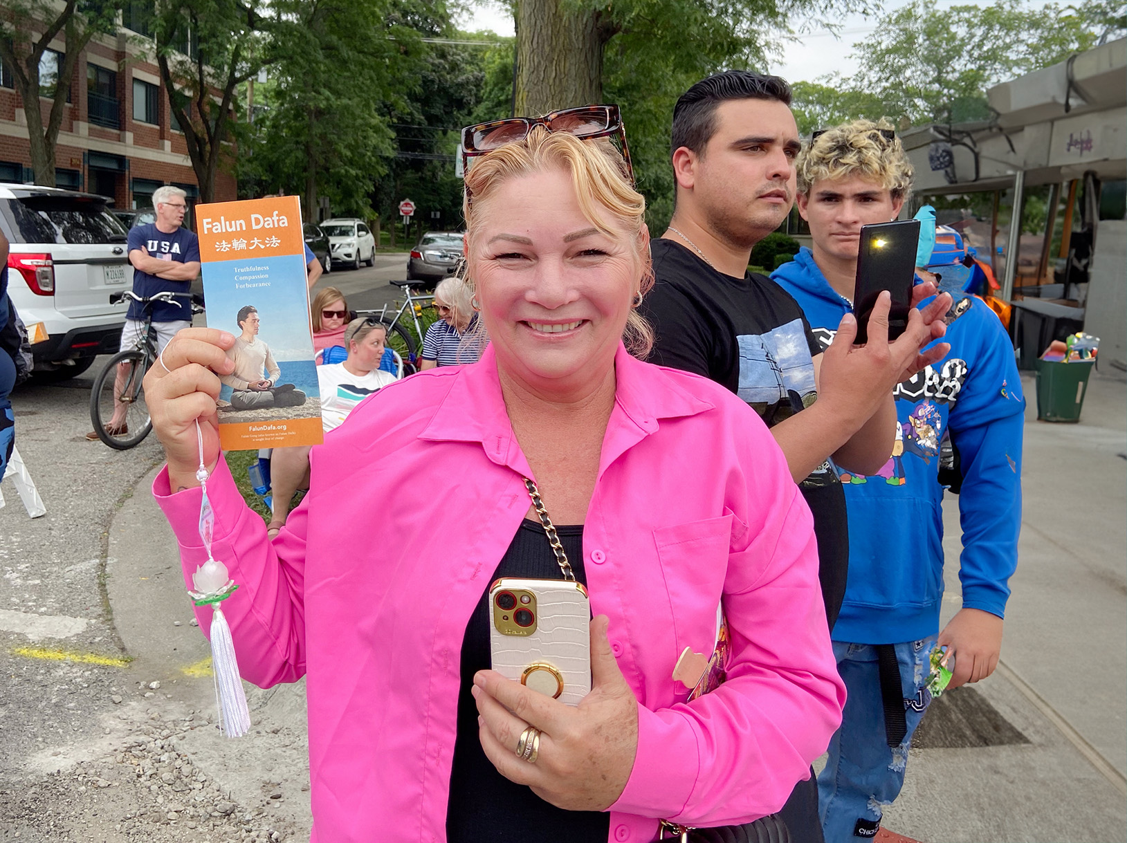 雅妮特·纳波利斯(Yanet Naples)非常喜欢法轮功的游行表演。她非常感谢能得到法轮大法的真相资料,她想更多地了解法轮大法。