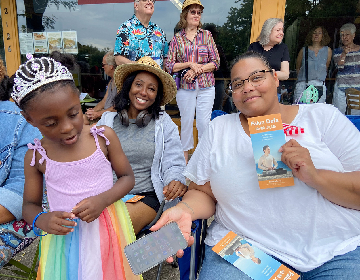 住在附近的安吉拉·梅里克(Angela Merrick)和她的家人一起观看了游行,她表示花车非常美丽,令人印象深刻。花车上展示的炼功动作和真、善、忍的原则让她对法轮功产生好奇和兴趣。