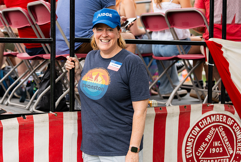 ![]() 图15:埃文斯顿独立日游行的评审委员会的共同负责人之一珍·彼得森(Jen Peterson) |