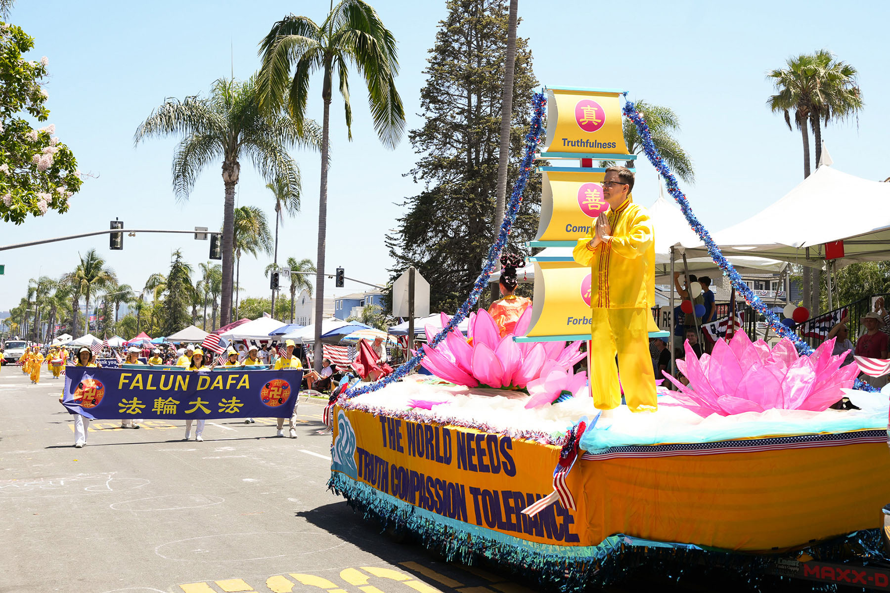 【明慧网二零二四年七月七日】二零二四年七月四日美国独立248周年庆祝日,加州圣地亚哥法轮功学员再次参加了科罗讷多市(Coronado)的国庆游行。这是圣地亚哥县最大的国庆游行,今年是第75届,有将近140个队伍参加。法轮功学员的花车和整个游行队伍获奖。