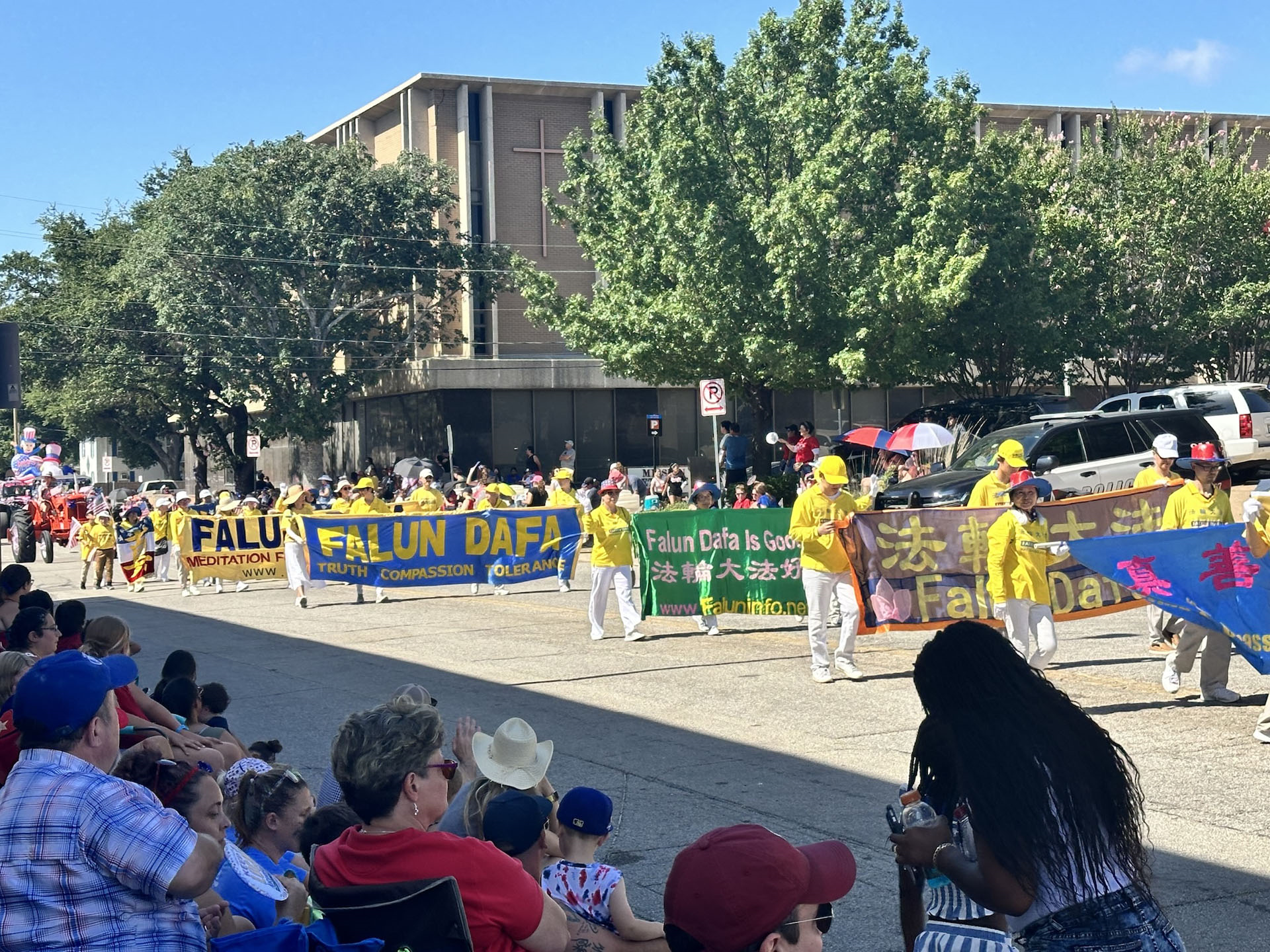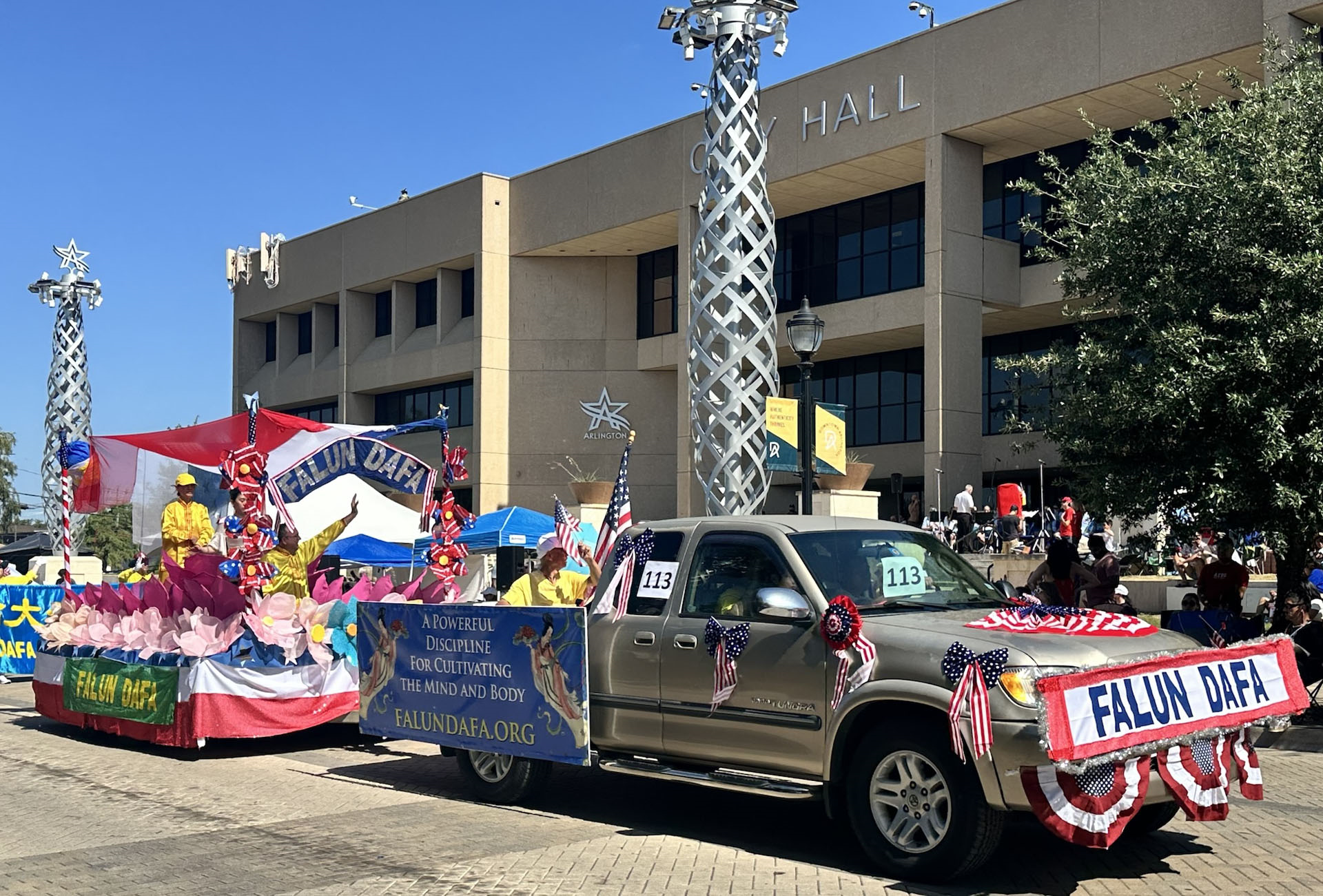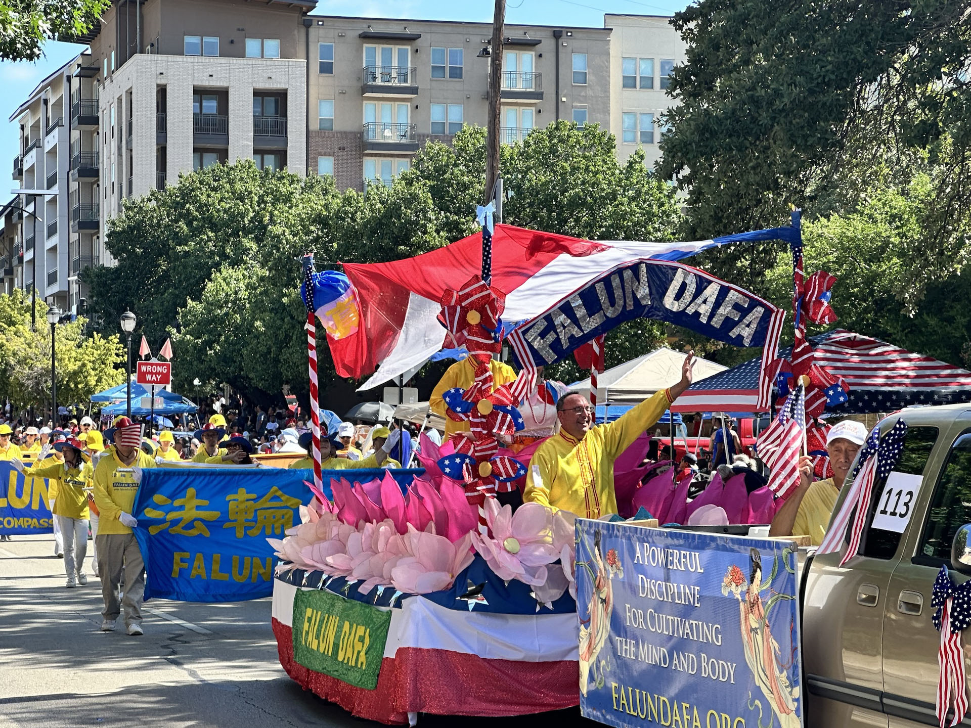 【明慧网二零二四年七月八日】(明慧记者曾洪美国达拉斯报道)二零二四年七月四日,美国国庆日,举国欢庆。美国达拉斯地区法轮功学员参加了德克萨斯州最大的独立日大游行-阿灵顿市独立日游行,受到人们的热情欢迎,并被评为本次游行的最优秀团体之一。