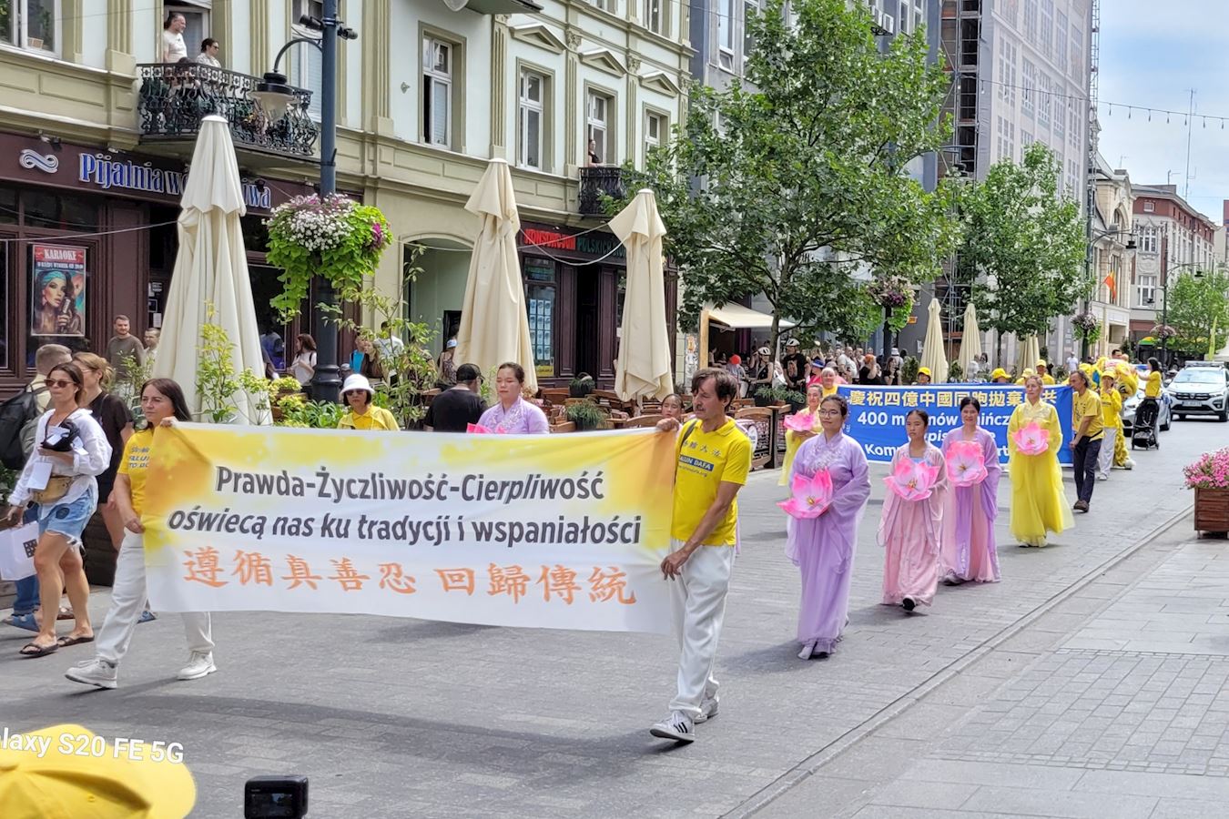 【明慧网二零二四年八月一日】二零二四年七月二十七日,波兰中部城市罗兹市迎来601周年市庆,捷克、德国与波兰法轮功学员共同组成壮观的游行队伍参加了庆祝活动,受到沿街民众的热烈欢迎。大游行的图片即出现在当地多家媒体的封面报道之中,很多人说:“第一次看见这样的游行队伍,太震撼人心了。”