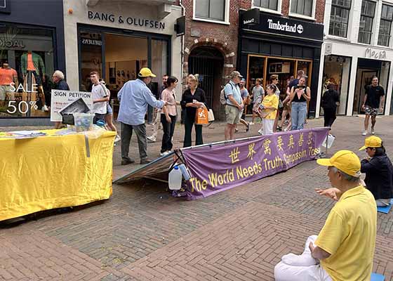八月三日和十日两个星期六,荷兰法轮功学员分别在阿姆斯特尔芬和哈勒姆两座城市举办信息日,传播法轮大法的美好,受到人们的喜爱。