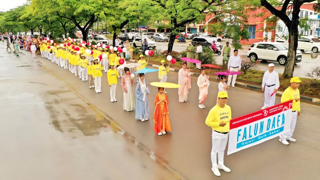 【明慧网二零二四年八月十九日】二零二四年八月十一日,受印度尼西亚巴淡岛(Batam)市政府的邀请,法轮功学员参加了巴淡岛市第七十九届独立日游行。由政府机构、印尼海军和各社区等组织组成的超过八千人的游行队伍,壮观盛大。法轮功团体的精彩表演受到了主办方和观众的称赞,并荣获嘉奖。