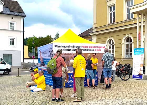 八月十七日,德国巴伐利亚州的部分法轮功学员在著名风景区新天鹅堡山脚下的菲森向过往民众介绍法轮功,揭露中共对法轮功的迫害。