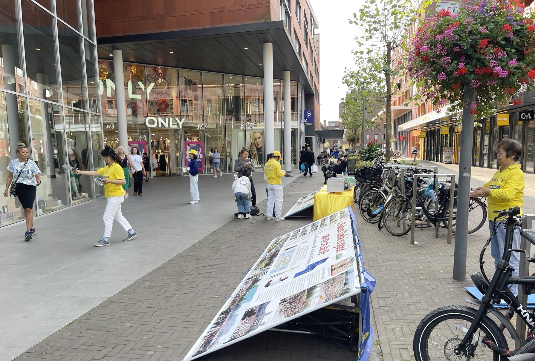 霍夫多普是北荷兰省哈莱默梅尔的一个主要城镇。八月十七日中午,学员们在Marktlaan商业区举办法轮功信息日活动,弘法、派发传单。吸引过往的路人驻足观看,有的与学员交谈,想了解更多关于法轮功的讯息。