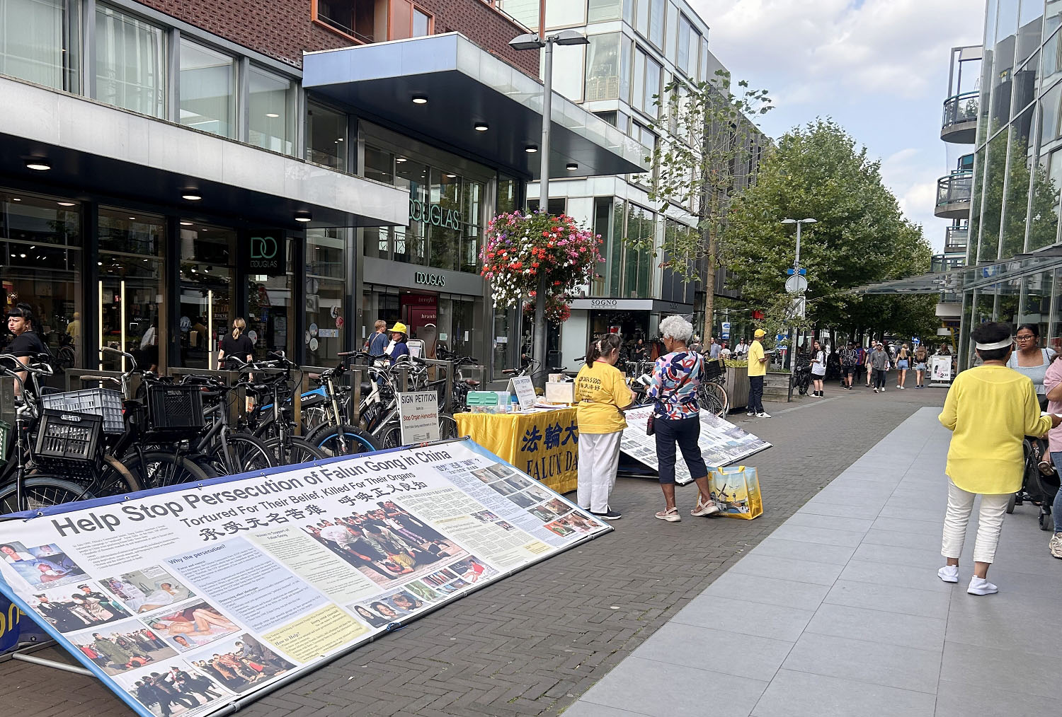 一名荷兰女士走到征签桌前签名后对学员说:“我可以多带几份传单走吗,我居住的社区有三百人,我要把这些资料放在大家活动的公共区域,把这个消息告诉他们!”