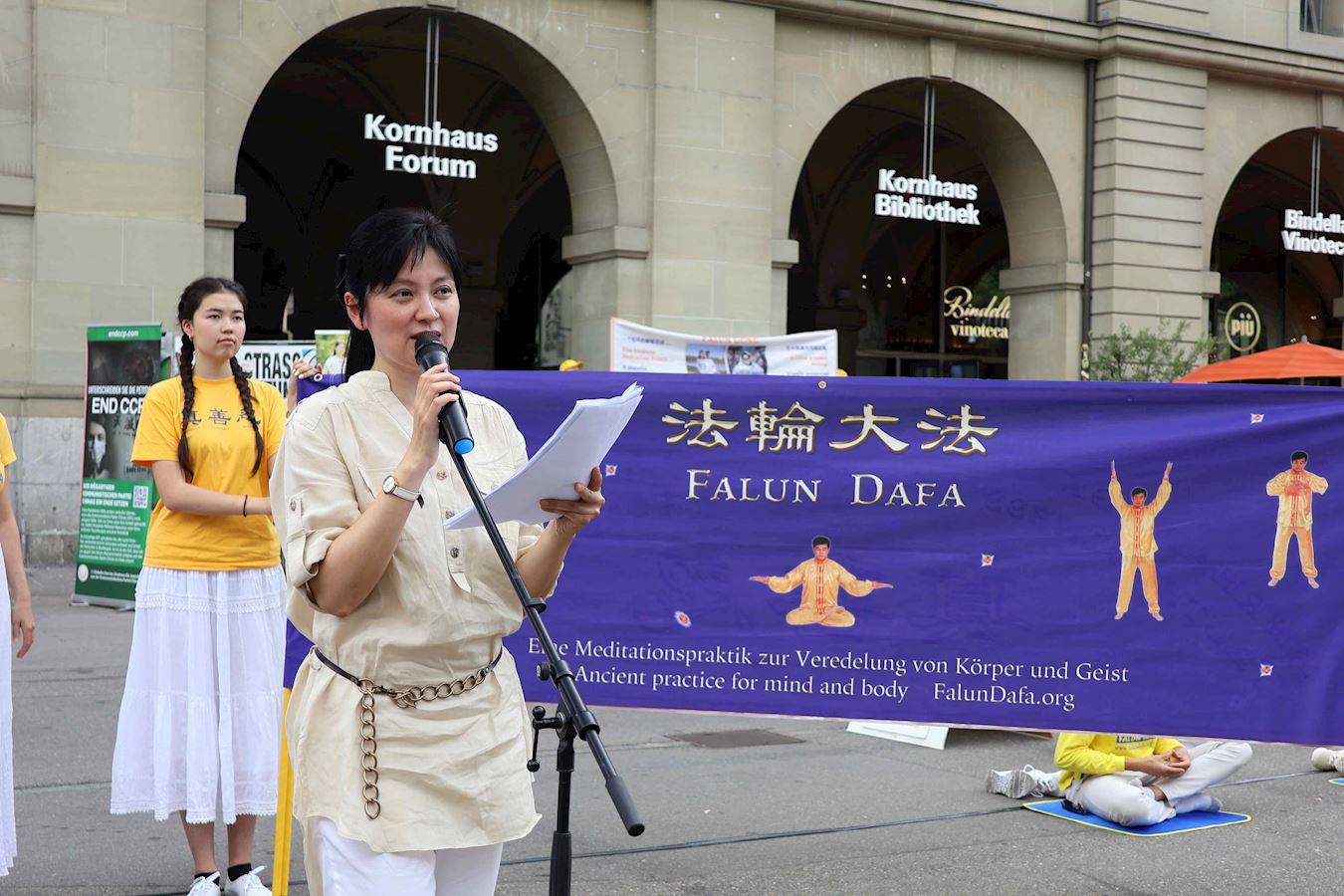 演讲中也分享了当天上午在中共驻伯尔尼使馆前宣读的劝善信,在中文和德文的两封信中,法轮功学员告诉中共使馆工作人员:正因大法的美好,三十多年来弘传世界上百个国家;也因迫害的危害,二十五年来多少家破人亡;但无论身在何处,来自哪个国家,中国,瑞士及世界各地的法轮功学员都希望您,身为使馆的工作人员,能敞开心扉,了解真相,选择美好的未来——为了您自己,也为了您的家人。