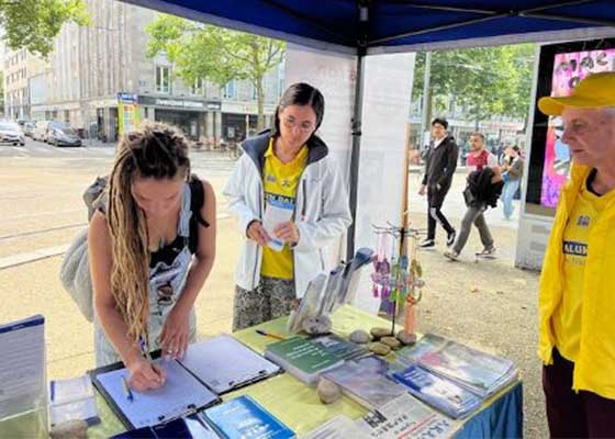 九月七日,法轮功学员在法国西部布莱斯特市中心举办了法轮功信息日活动。他们向民众介绍法轮功,揭露中共迫害法轮功的罪行,同时征集签名反对中共迫害。