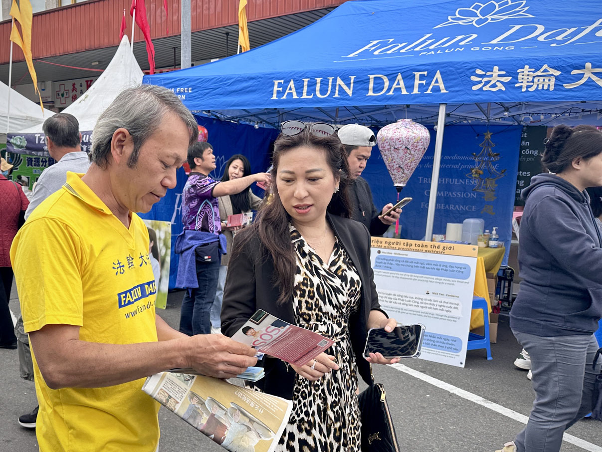 九月八日,星期日,悉尼卡市(Cabramatta)举办了澳洲越南社区最隆重的一年一度的传统节日之一——中秋佳节庆祝活动(Cabramatta Moon Festival),这是以丰富的东南亚社区的精神、色彩和风格庆祝的传统节日。法轮功学员参展并向市民传播法轮大法的美好和揭露中共迫害法轮功的真相,民众赞赏真、善、忍的普世价值,他们认为应该制止中共的迫害。