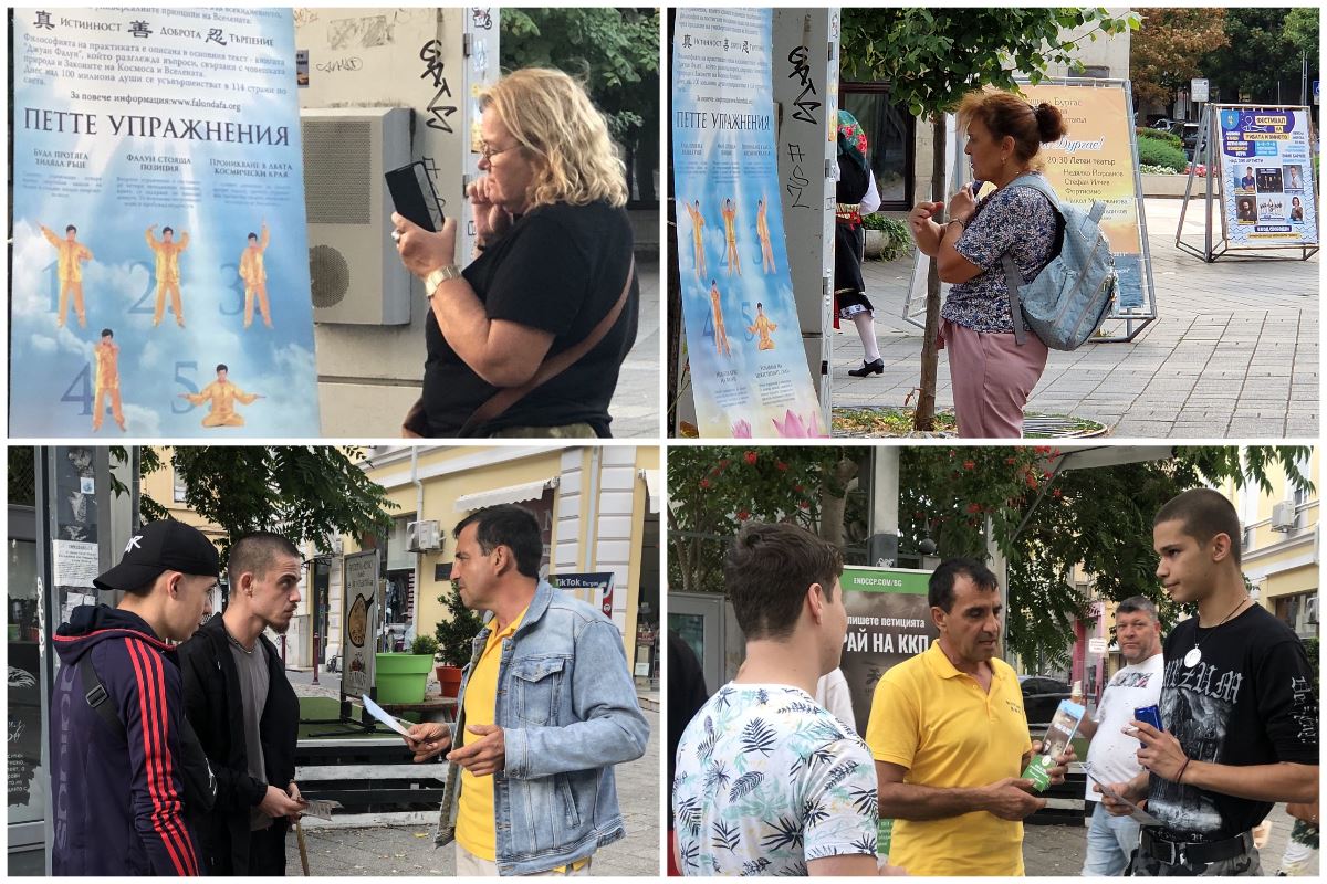 九月七日晚,学员们在布尔加斯市中心的时钟广场(Clock Square)设立了真相信息台,引起许多路人的关注。