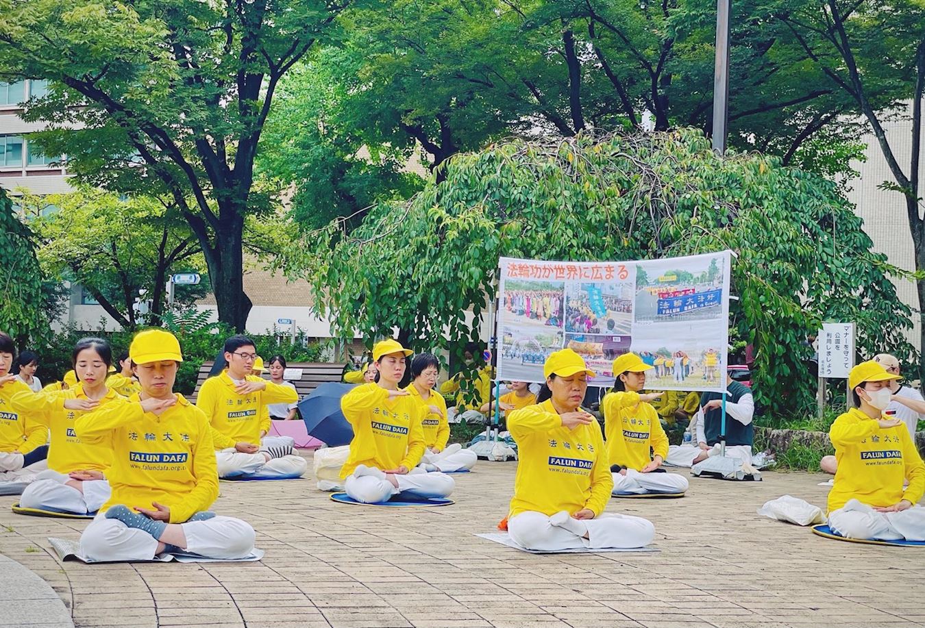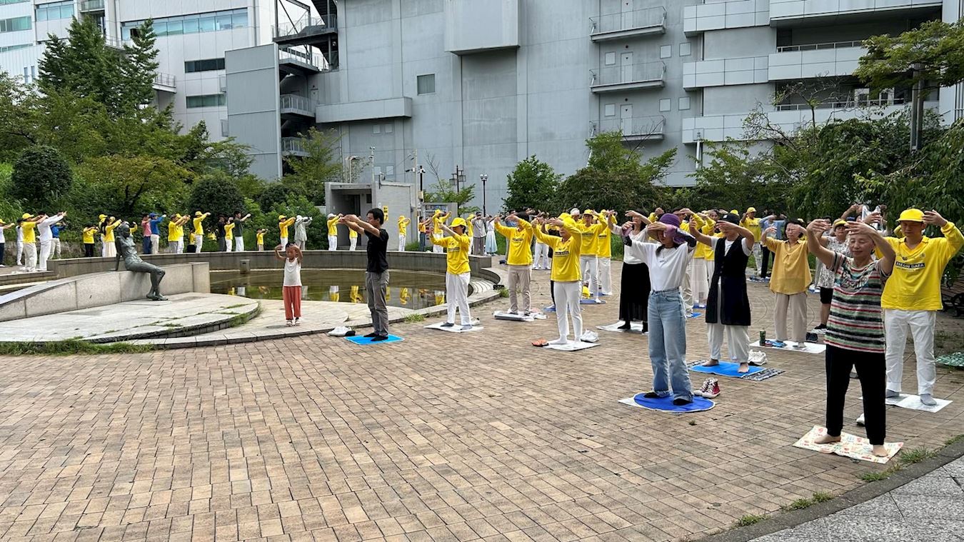 '图1~3:二零二四年九月十五日上午,日本法轮功学员在中部地区爱知县首府——名古屋市中心的荣公园集体炼功。'