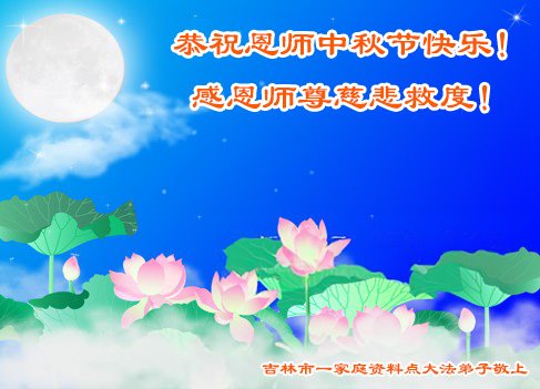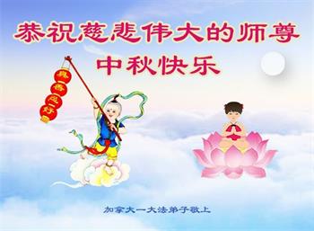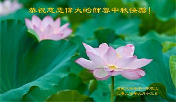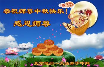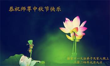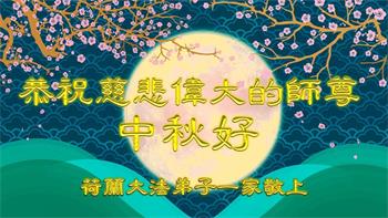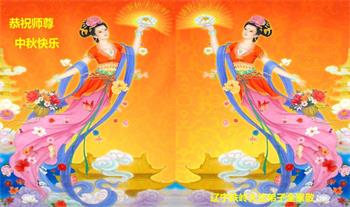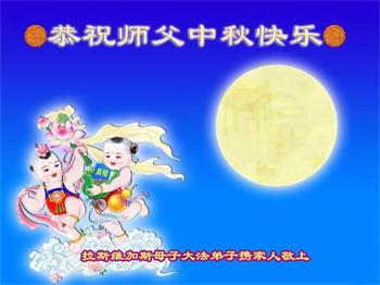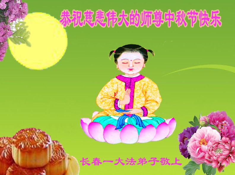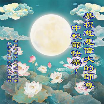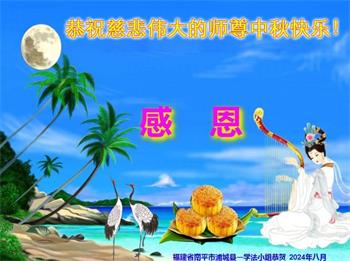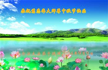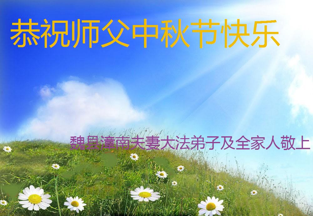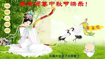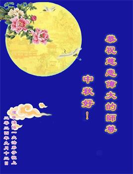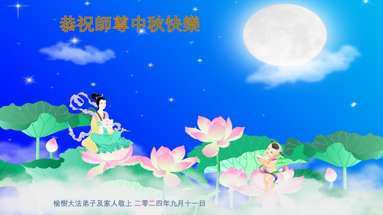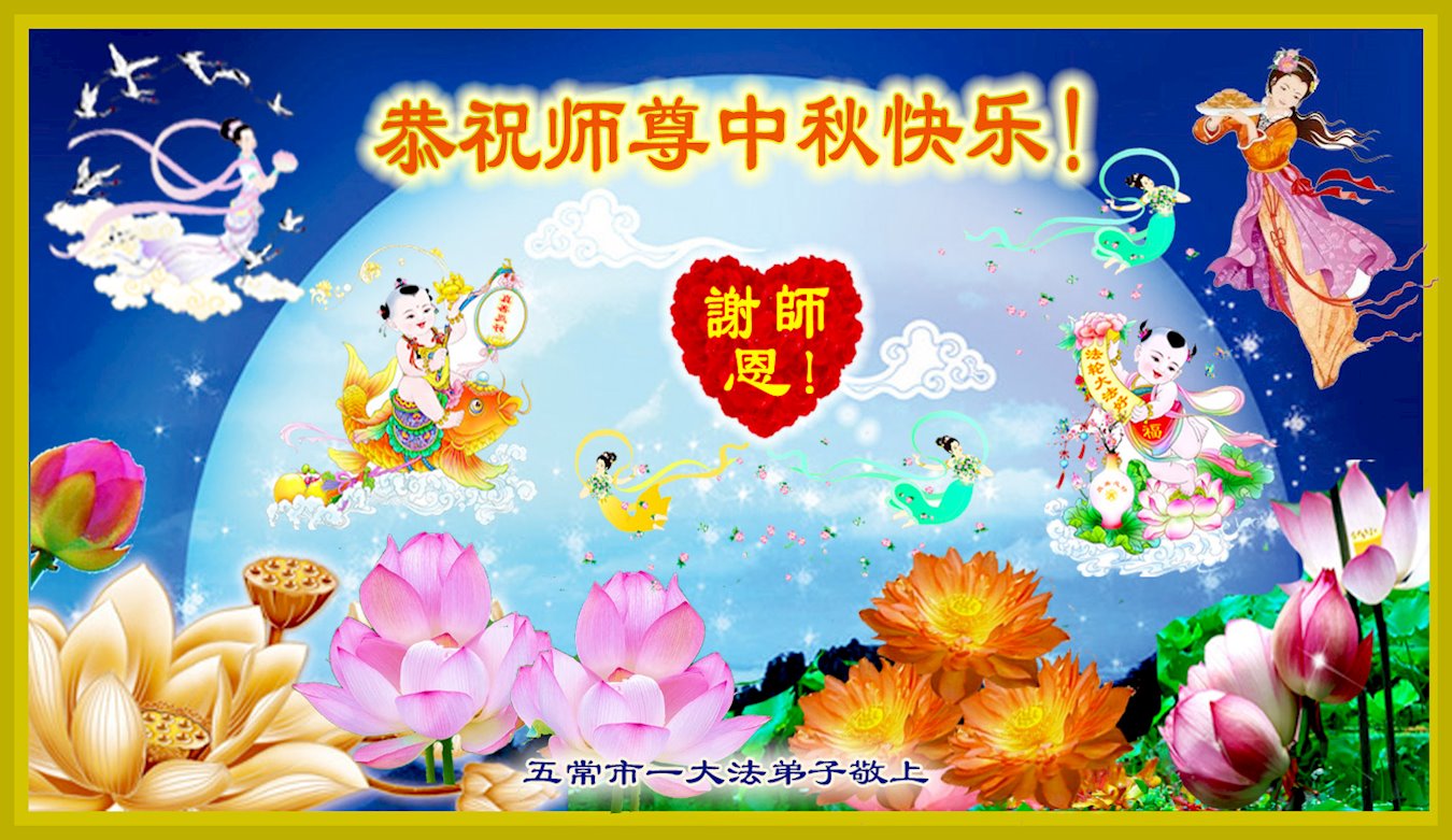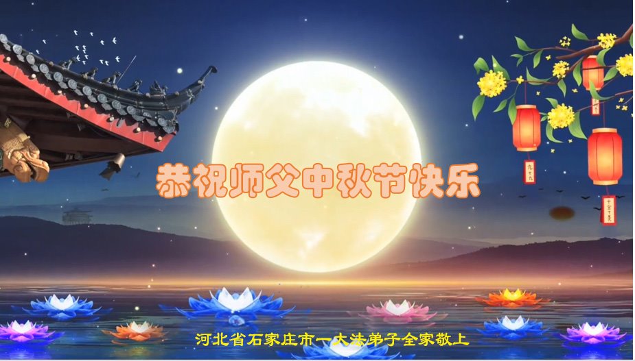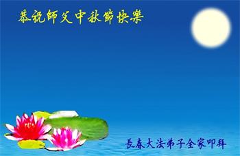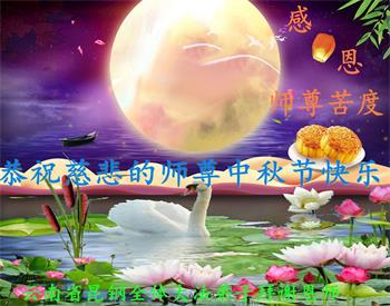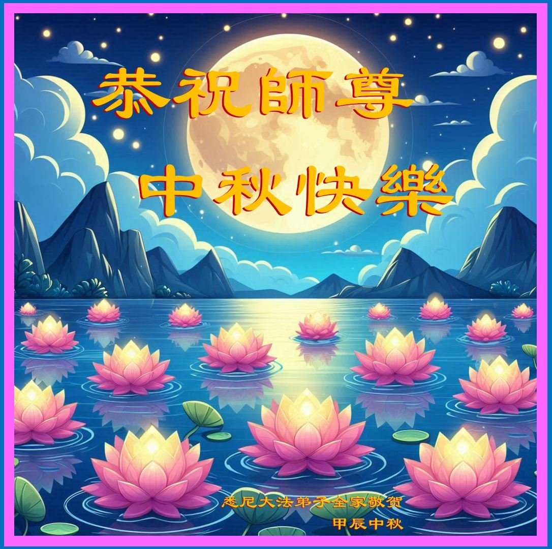 弟子和家人同修恭祝师父中秋节快乐!感恩师父对弟子和家人同修的一路慈悲看护!弟子也感恩师父对弟子的一切慈悲安排!弟子一定努力多学法炼功,用心做好救人的事情,修去妒嫉心,怨恨心,及人心,人念,人情,努力做好师父让弟子做的救人的事,跟随师父回家!