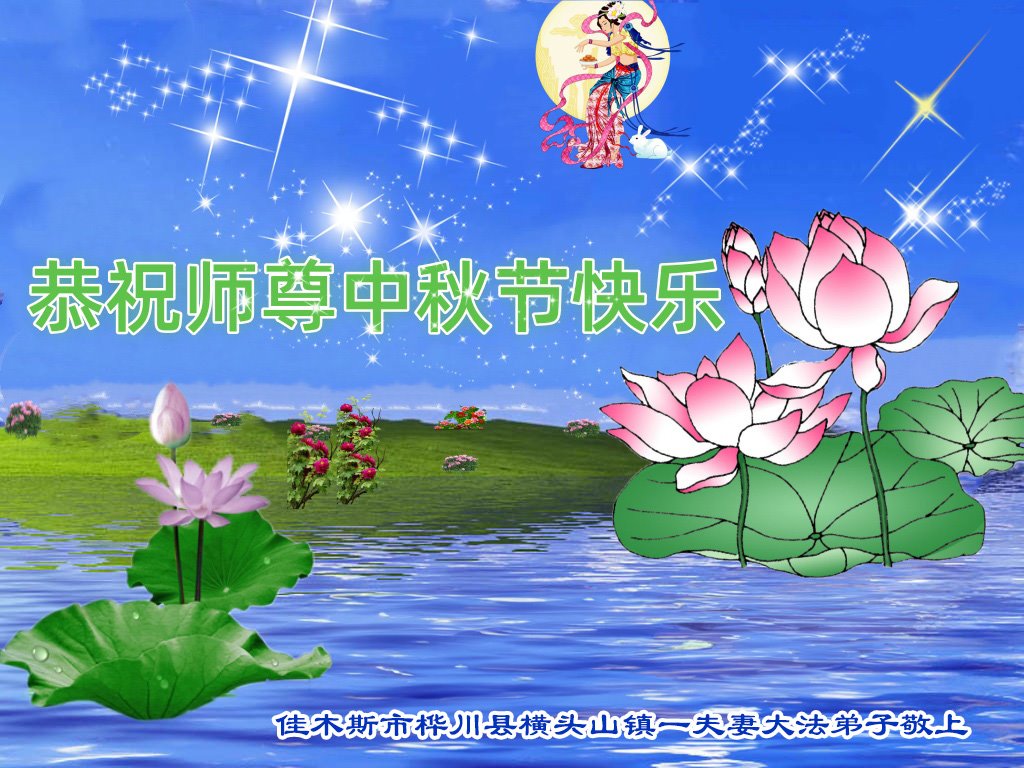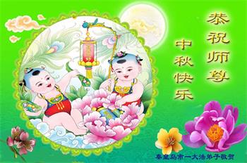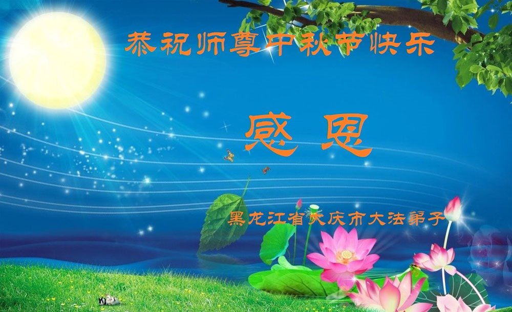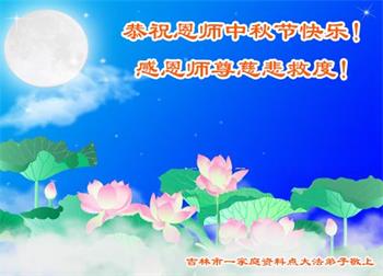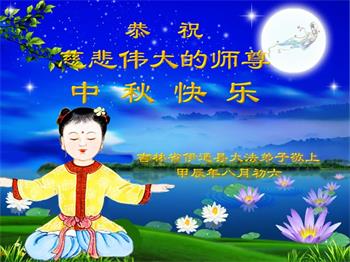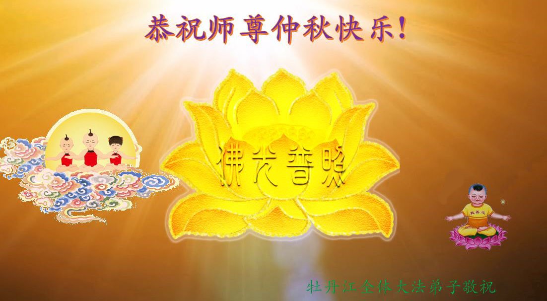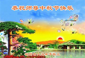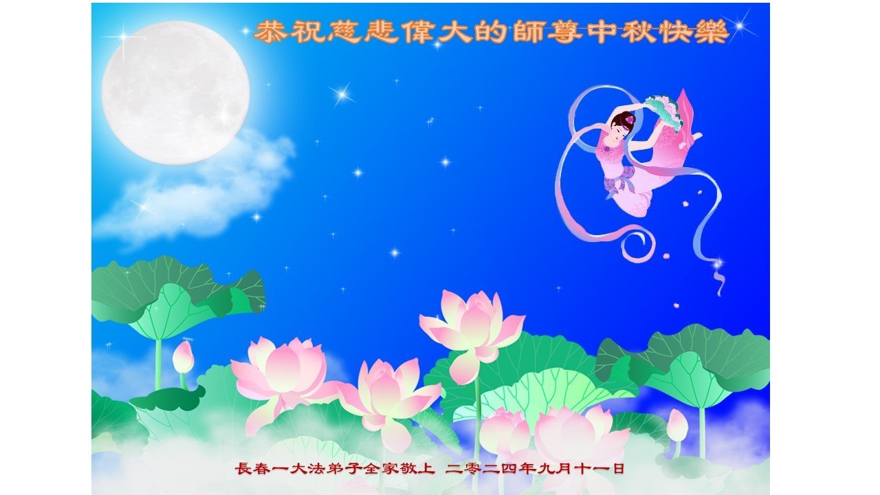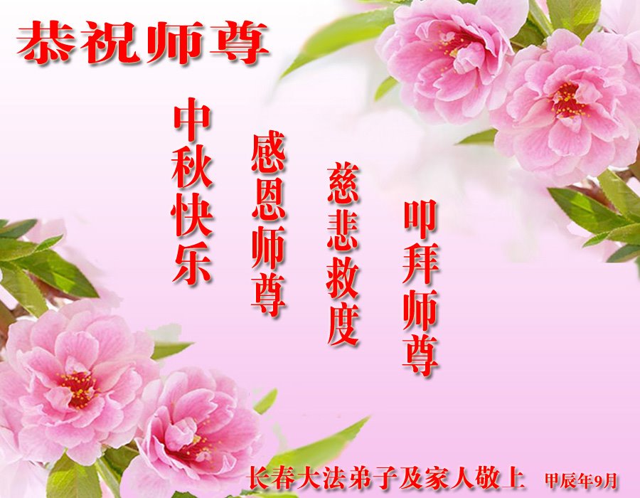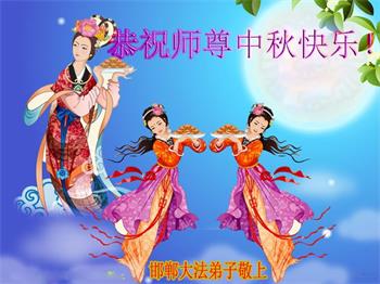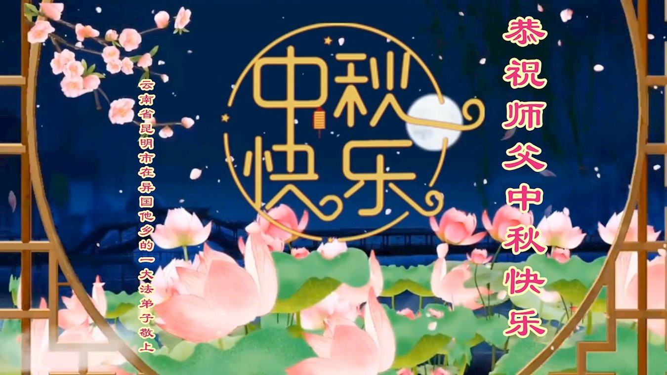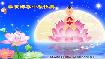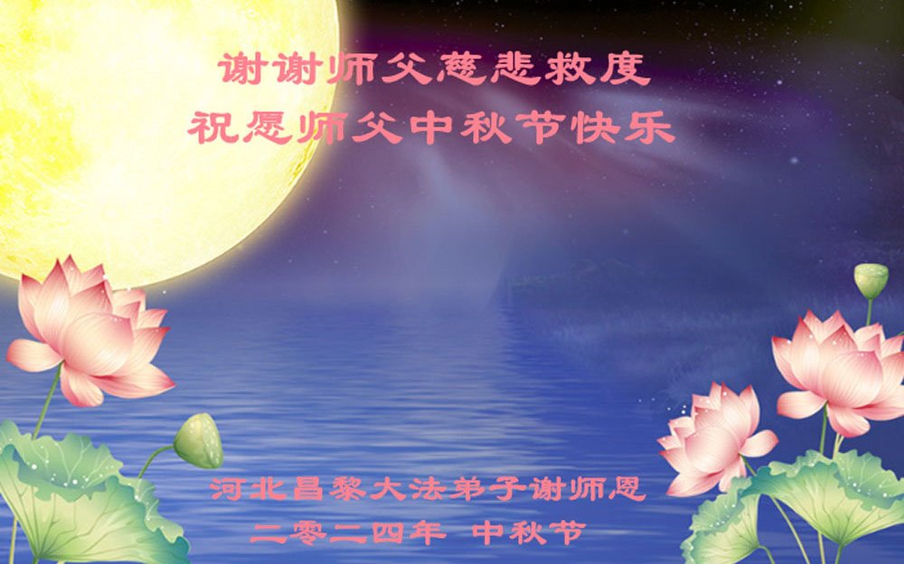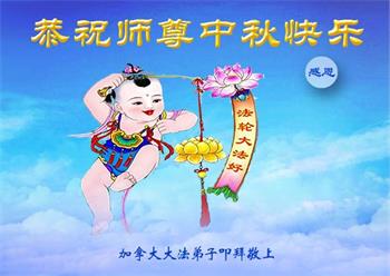 弟子和家人同修恭祝师父中秋节快乐!感恩师父对弟子和家人同修的一路慈悲看护!弟子也感恩师父对弟子的一切慈悲安排!弟子一定努力多学法炼功,用心做好救人的事情,修去妒嫉心,怨恨心,及人心,人念,人情,努力做好师父让弟子做的救人的事,跟随师父回家!
