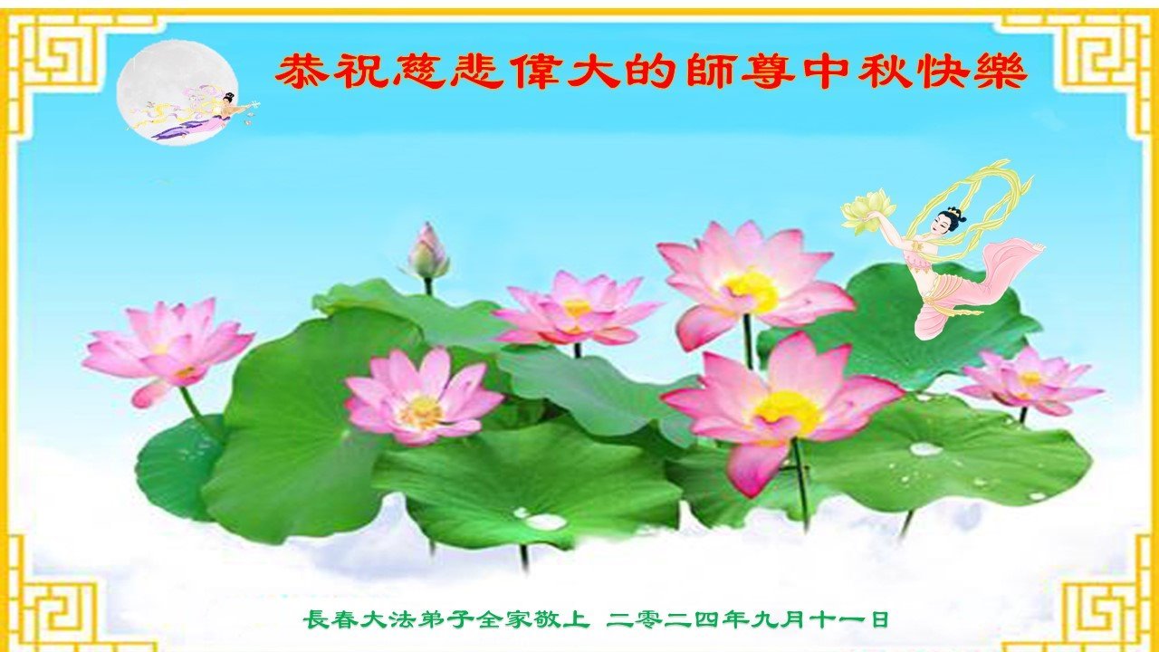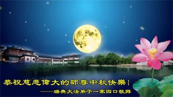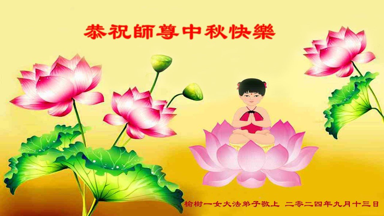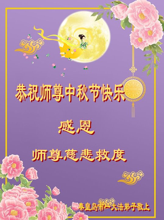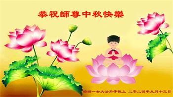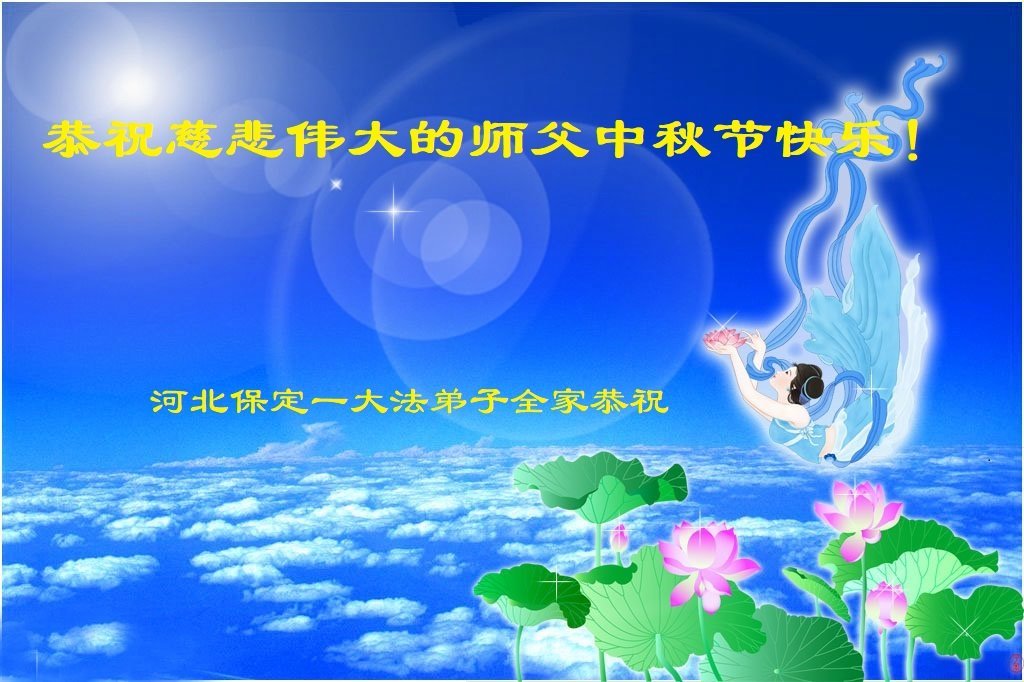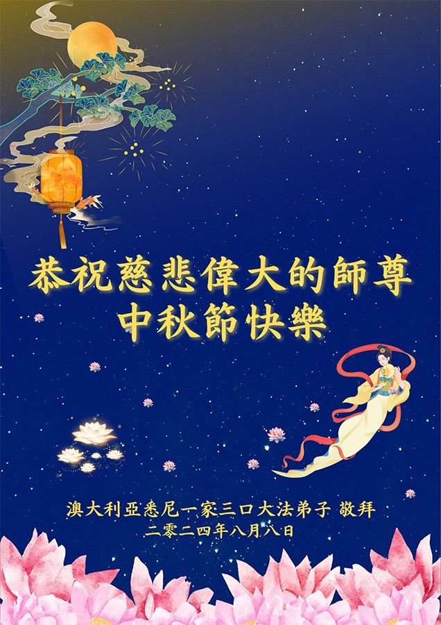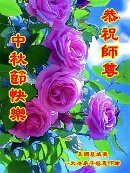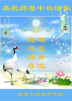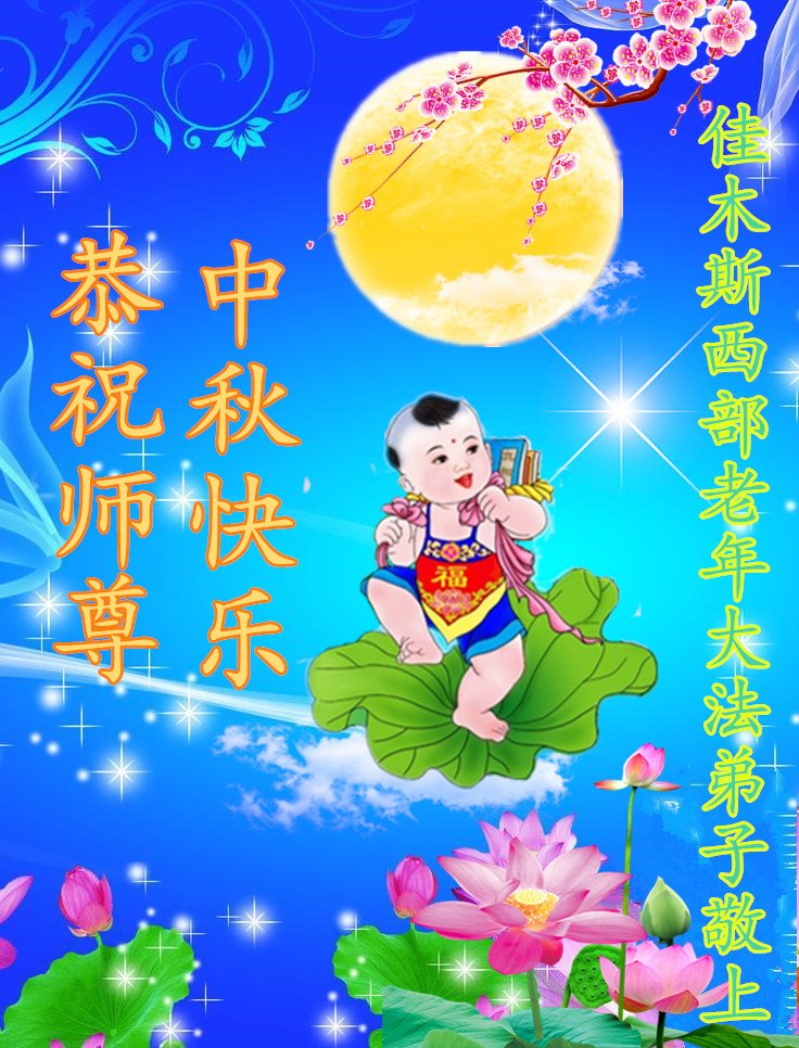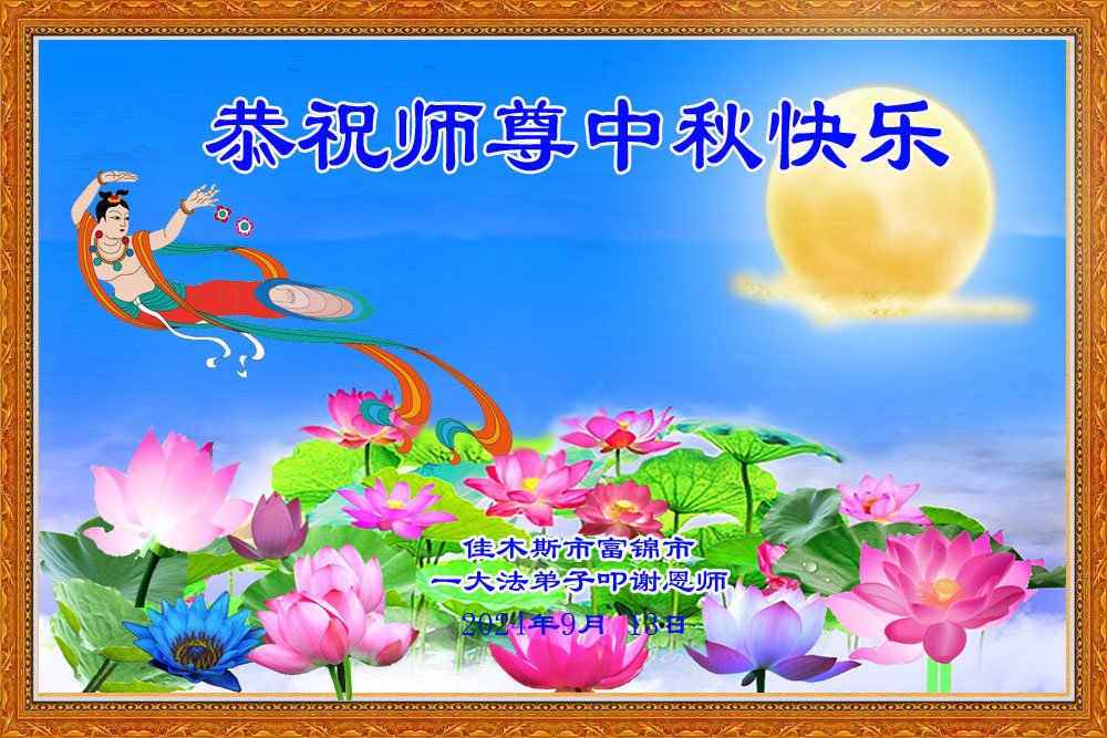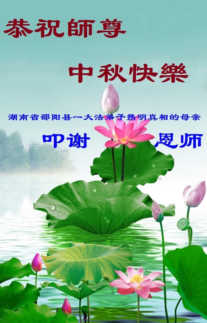 弟子和家人同修恭祝师父中秋节快乐!感恩师父对弟子和家人同修的一路慈悲看护!弟子也感恩师父对弟子的一切慈悲安排!弟子一定努力多学法炼功,用心做好救人的事情,修去妒嫉心,怨恨心,及人心,人念,人情,努力做好师父让弟子做的救人的事,跟随师父回家!