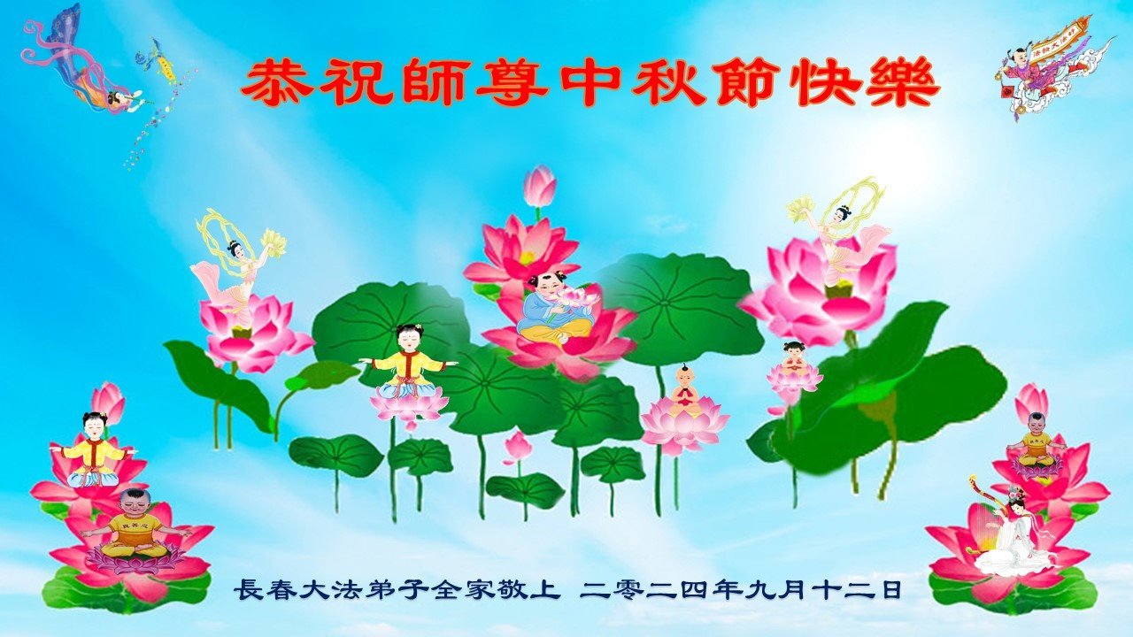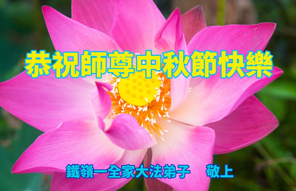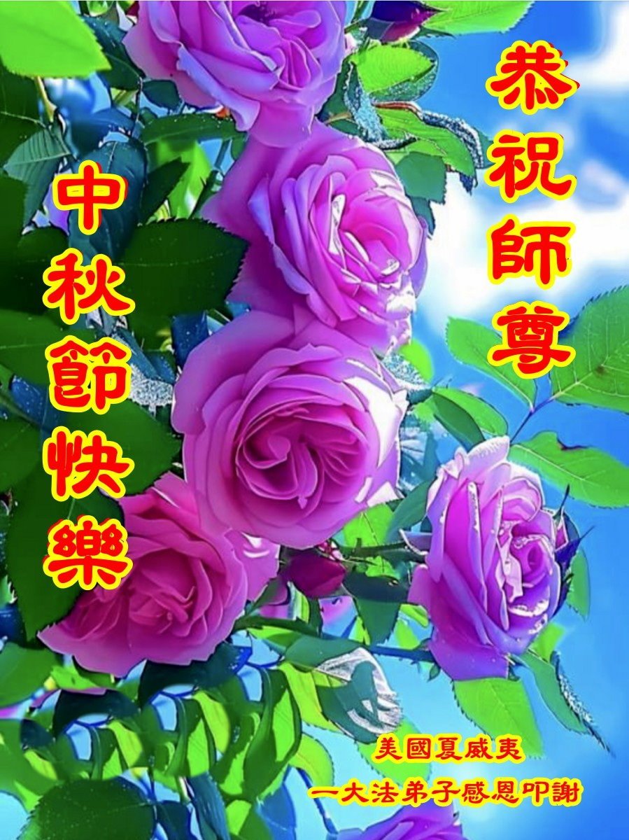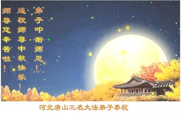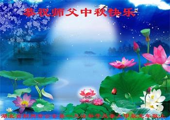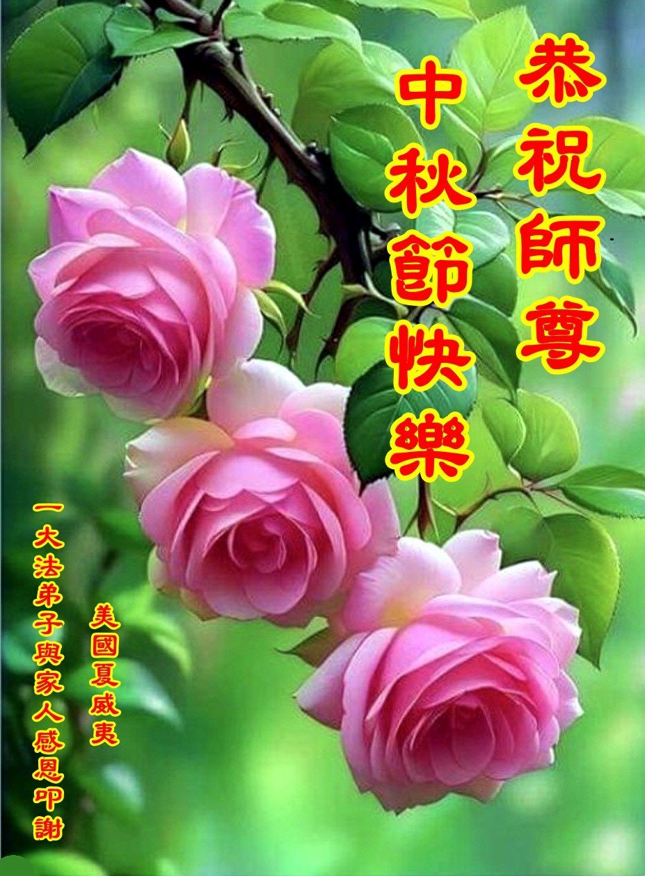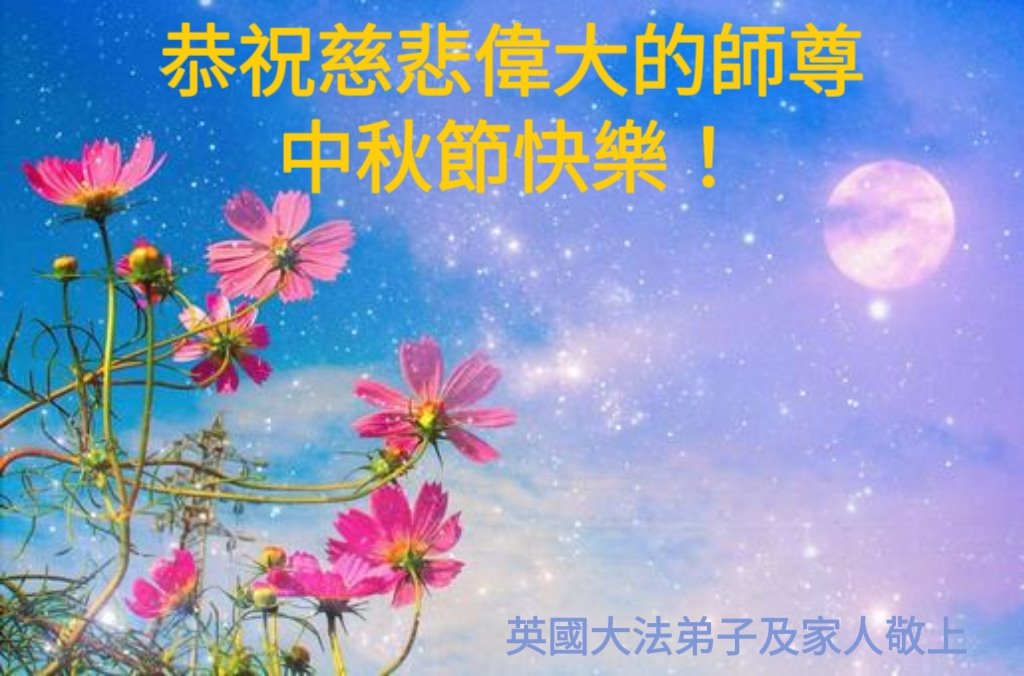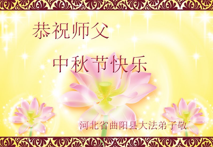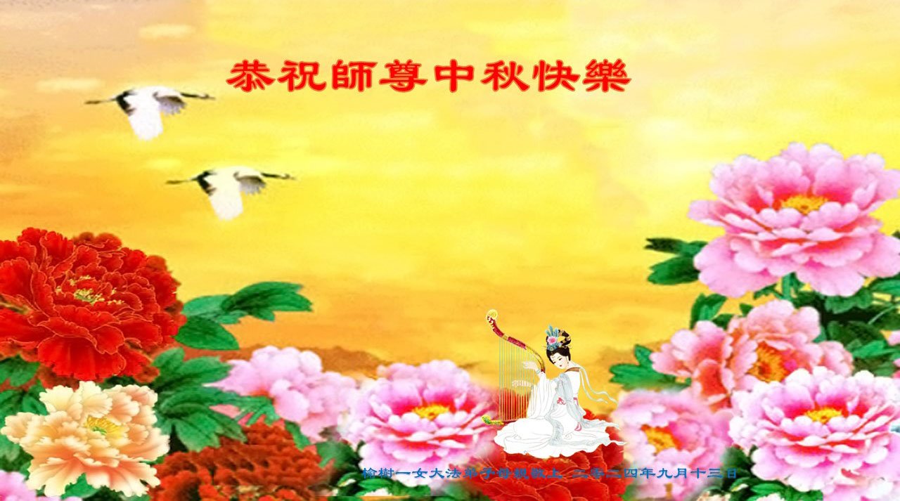 弟子和家人同修恭祝师父中秋节快乐!感恩师父对弟子和家人同修的一路慈悲看护!弟子也感恩师父对弟子的一切慈悲安排!弟子一定努力多学法炼功,用心做好救人的事情,修去妒嫉心,怨恨心,及人心,人念,人情,努力做好师父让弟子做的救人的事,跟随师父回家!