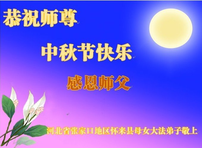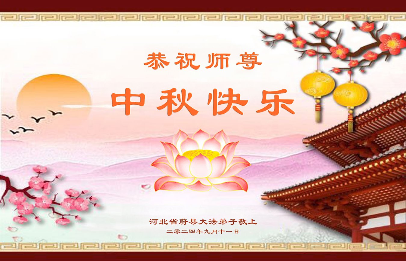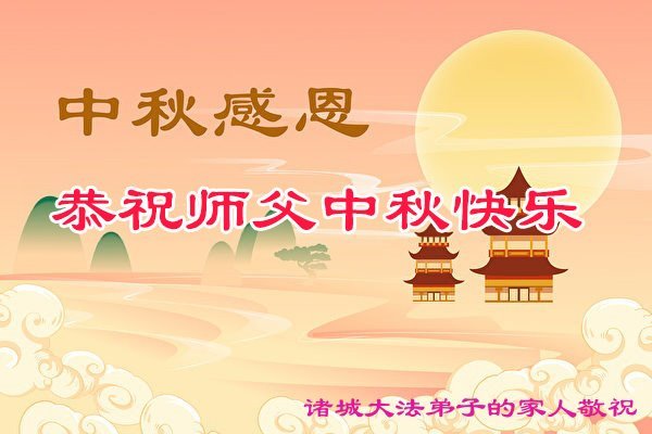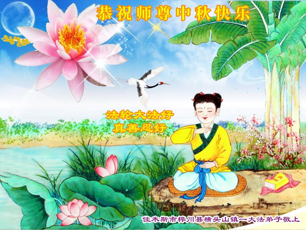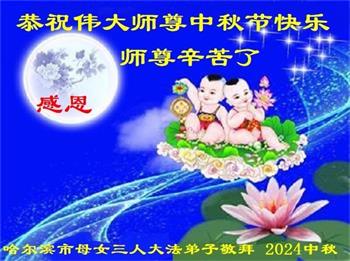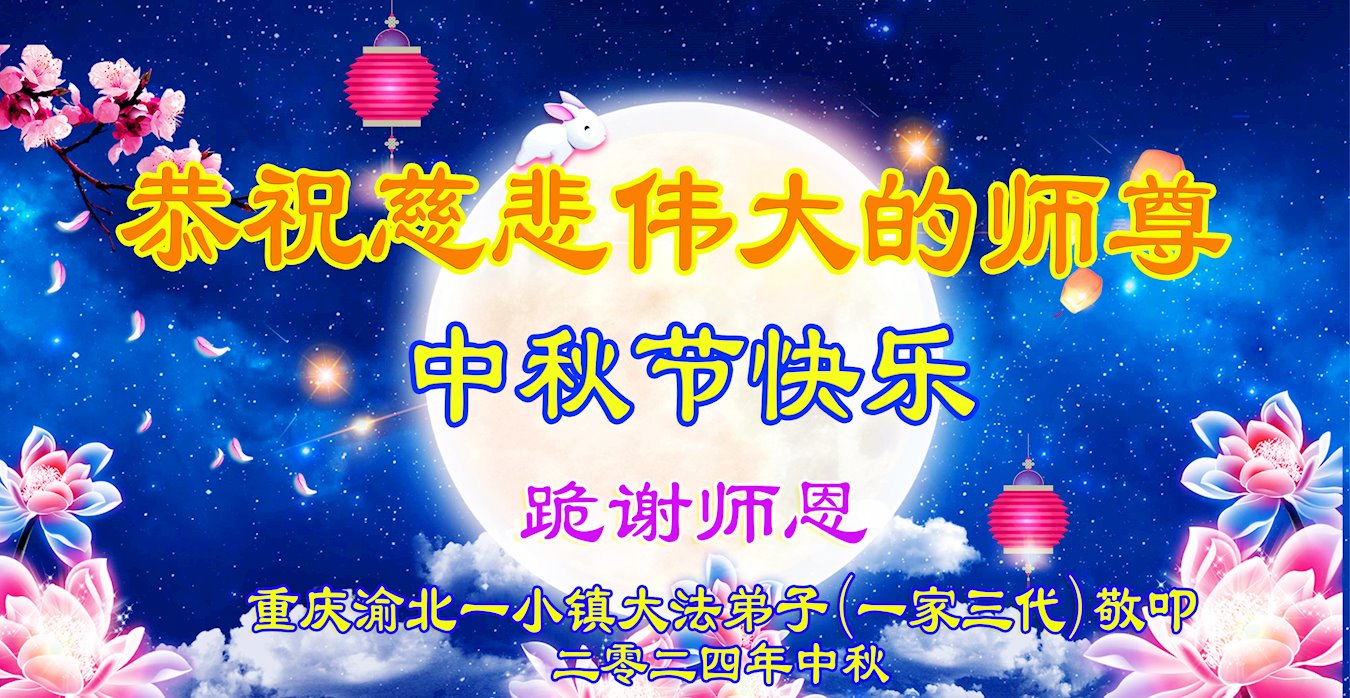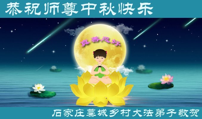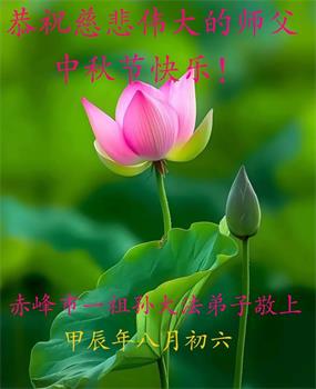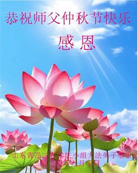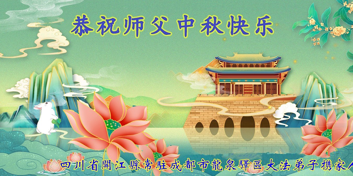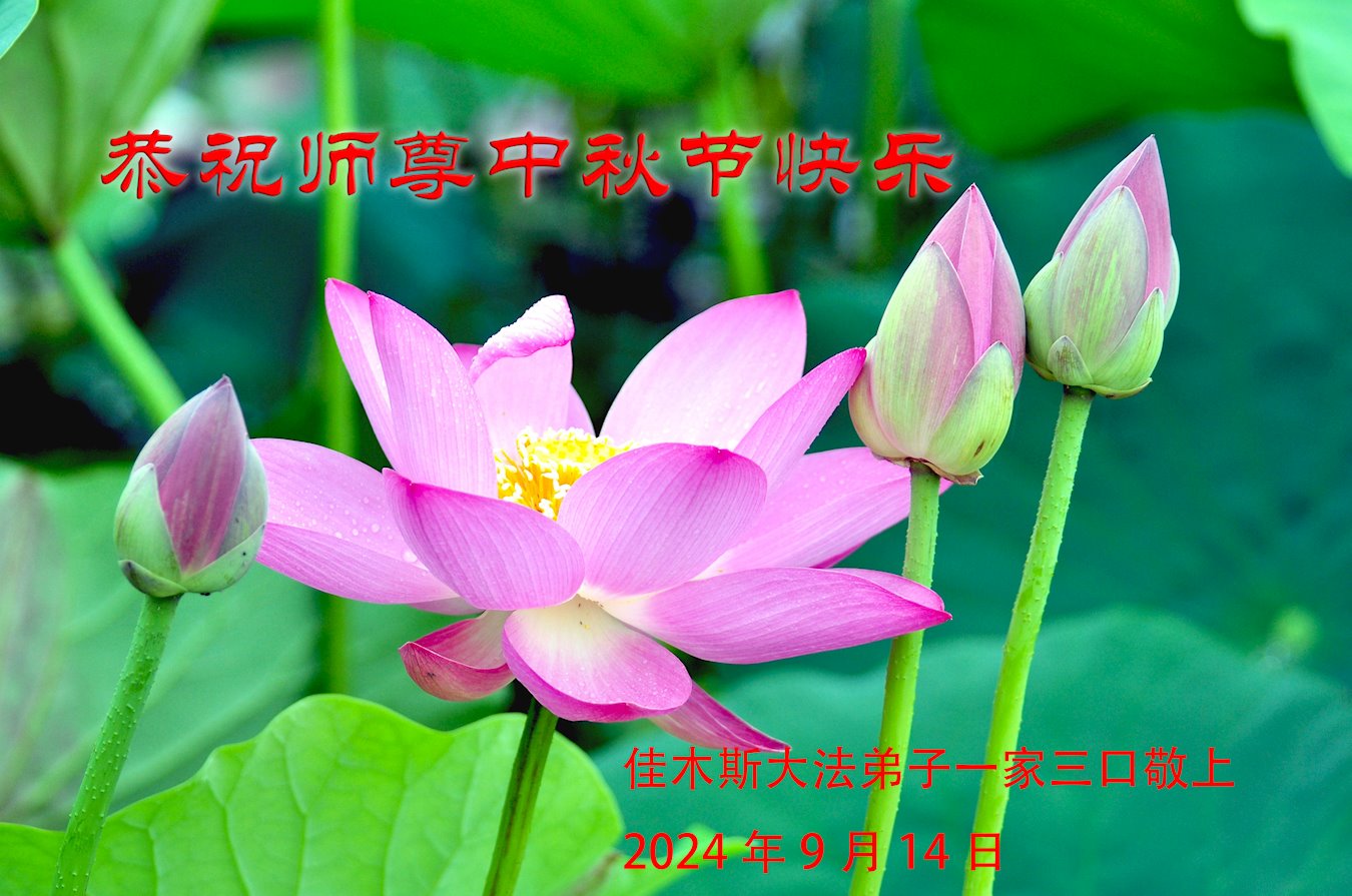 弟子和家人同修恭祝师父中秋节快乐!感恩师父对弟子和家人同修的一路慈悲看护!弟子也感恩师父对弟子的一切慈悲安排!弟子一定努力多学法炼功,用心做好救人的事情,修去妒嫉心,怨恨心,及人心,人念,人情,努力做好师父让弟子做的救人的事,跟随师父回家!