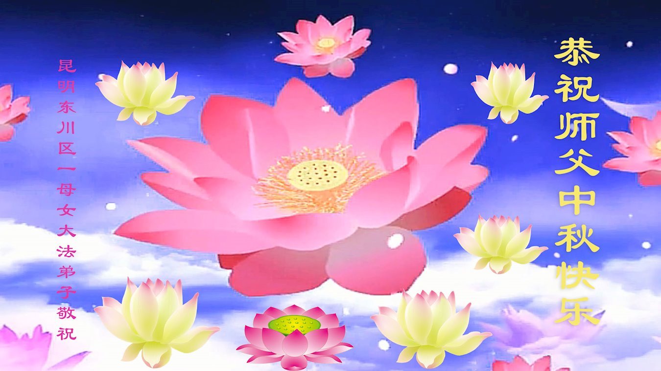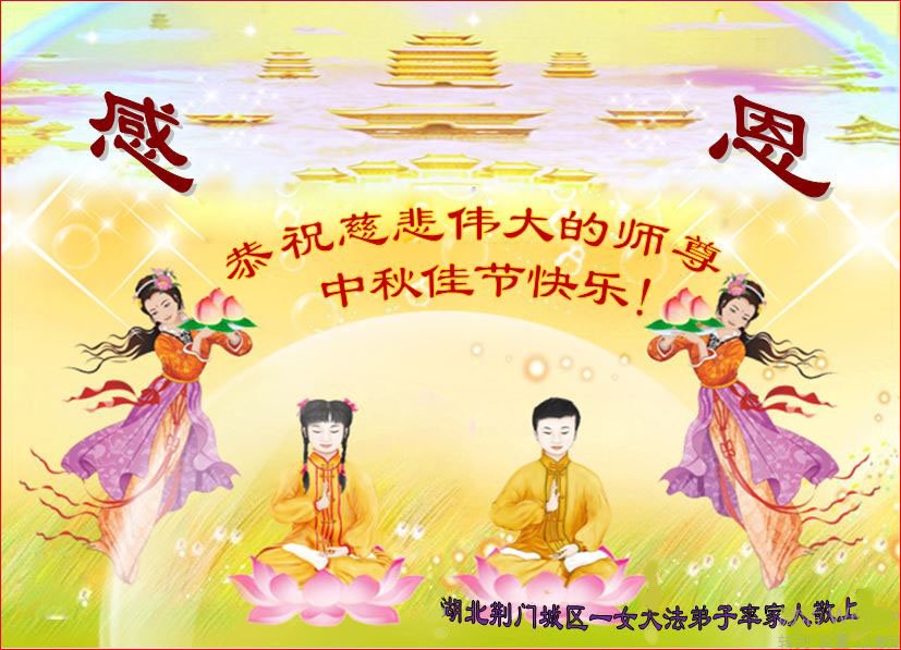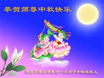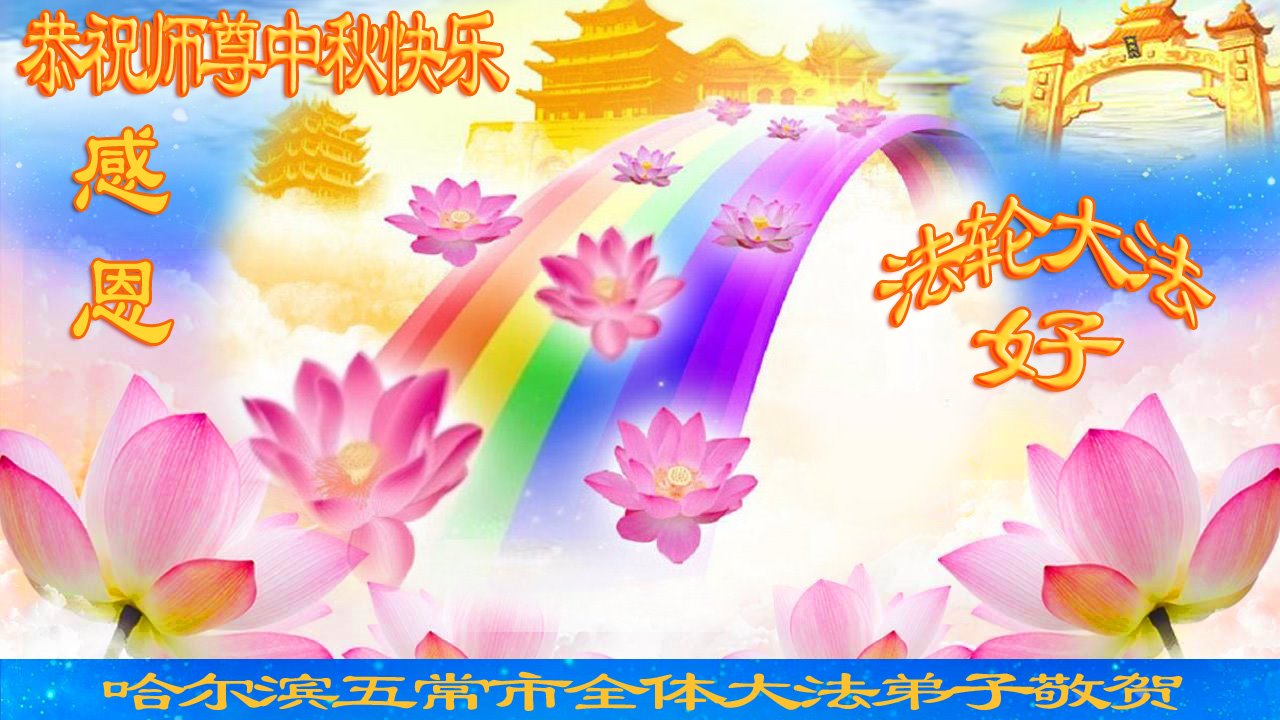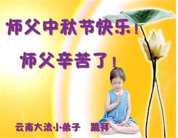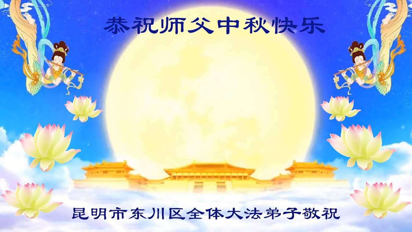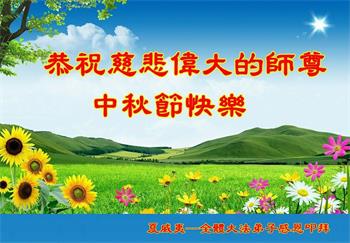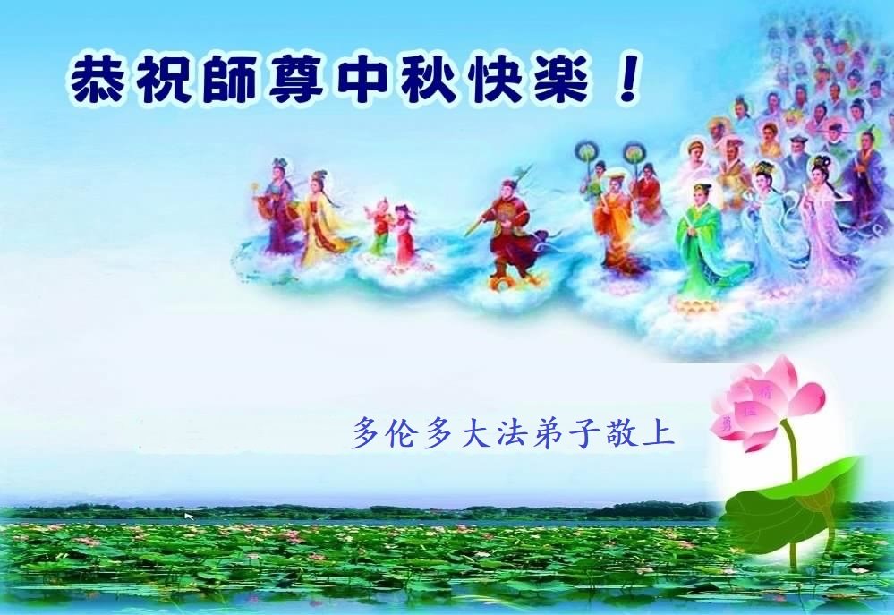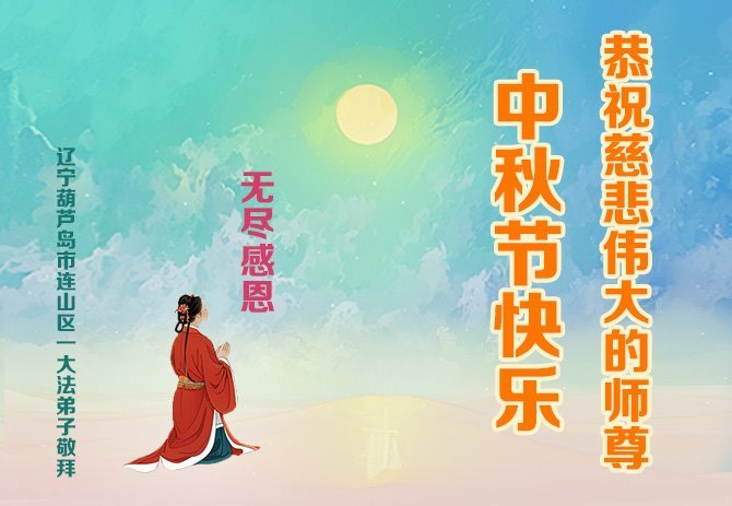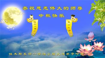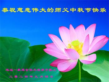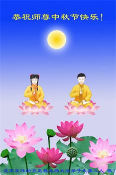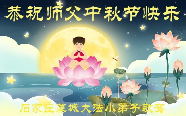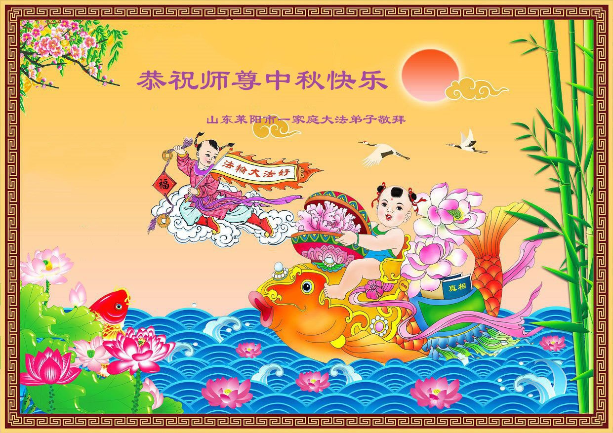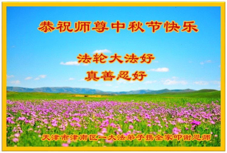 弟子和家人同修恭祝师父中秋节快乐!感恩师父对弟子和家人同修的一路慈悲看护!弟子也感恩师父对弟子的一切慈悲安排!弟子一定努力多学法炼功,用心做好救人的事情,修去妒嫉心,怨恨心,及人心,人念,人情,努力做好师父让弟子做的救人的事,跟随师父回家!