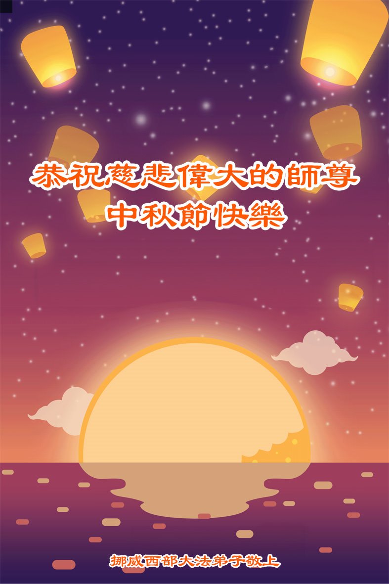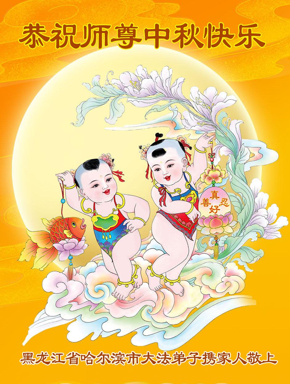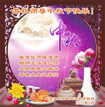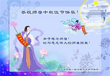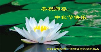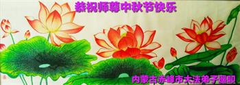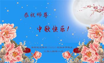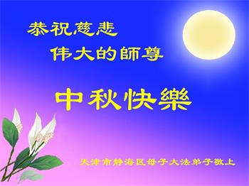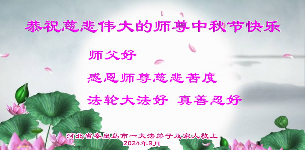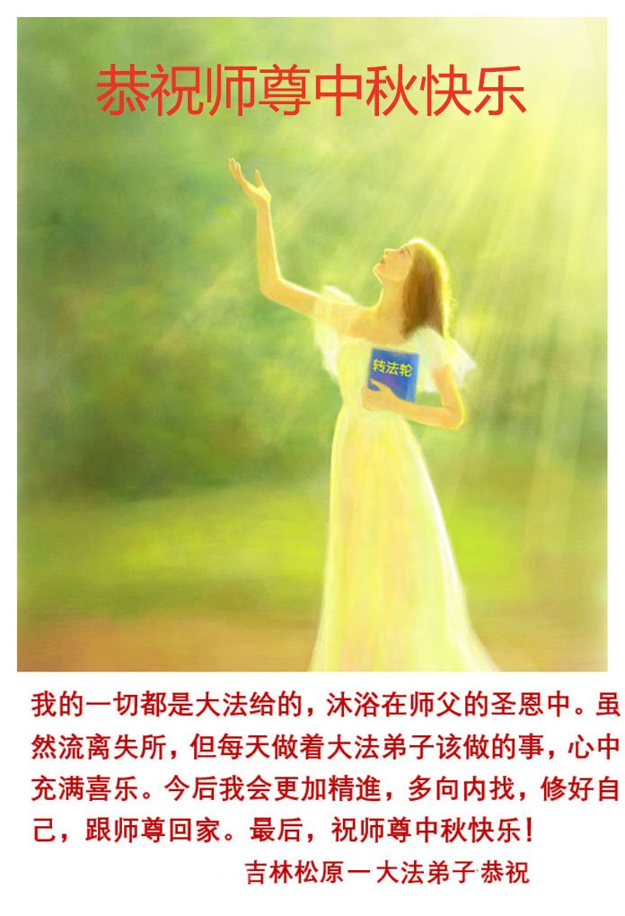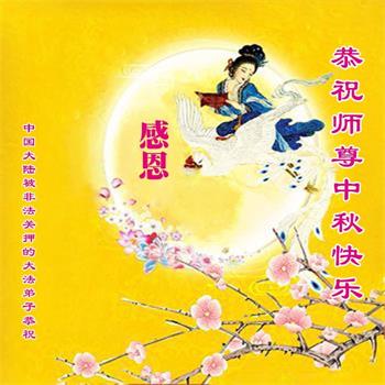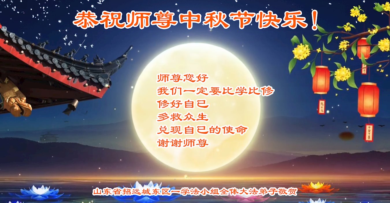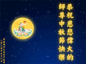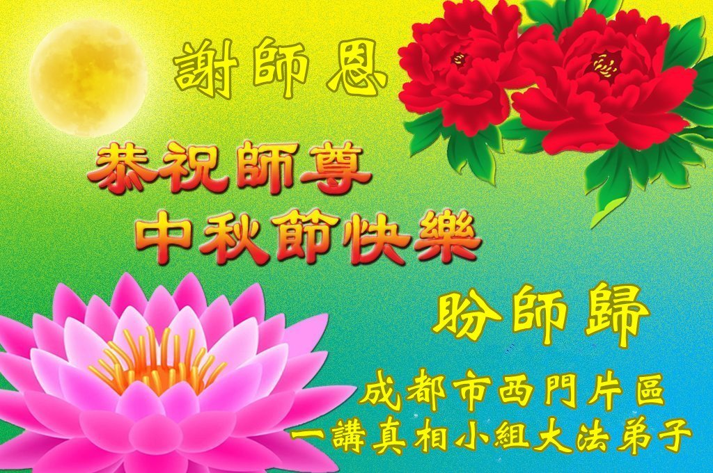 弟子和家人同修恭祝师父中秋节快乐!感恩师父对弟子和家人同修的一路慈悲看护!弟子也感恩师父对弟子的一切慈悲安排!弟子一定努力多学法炼功,用心做好救人的事情,修去妒嫉心,怨恨心,及人心,人念,人情,努力做好师父让弟子做的救人的事,跟随师父回家!