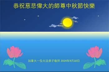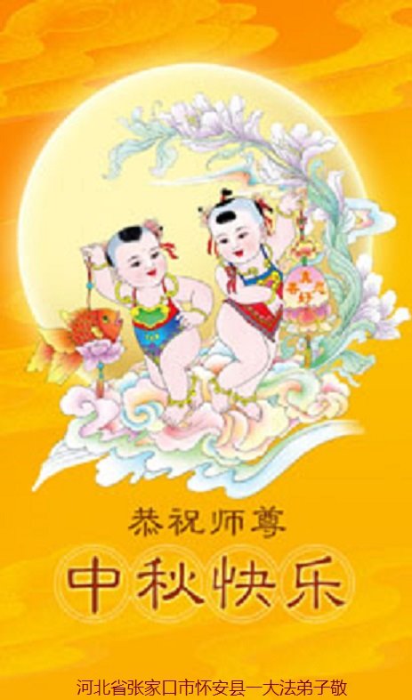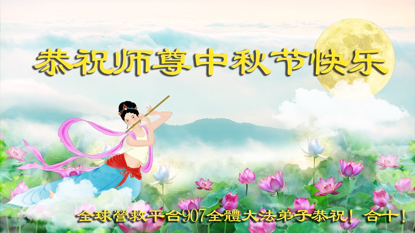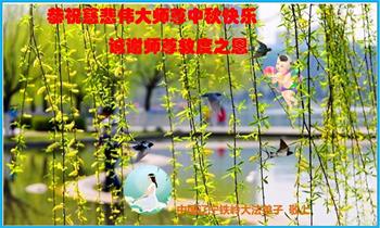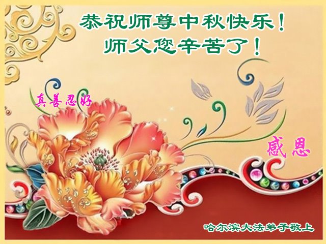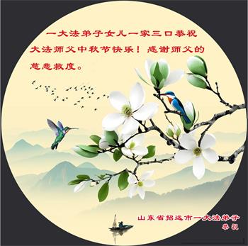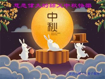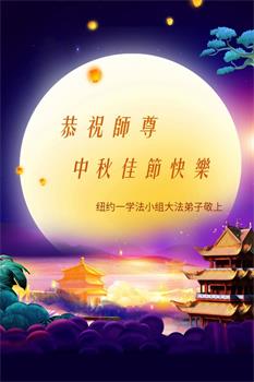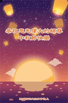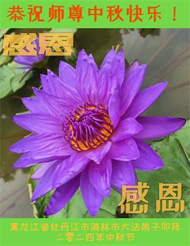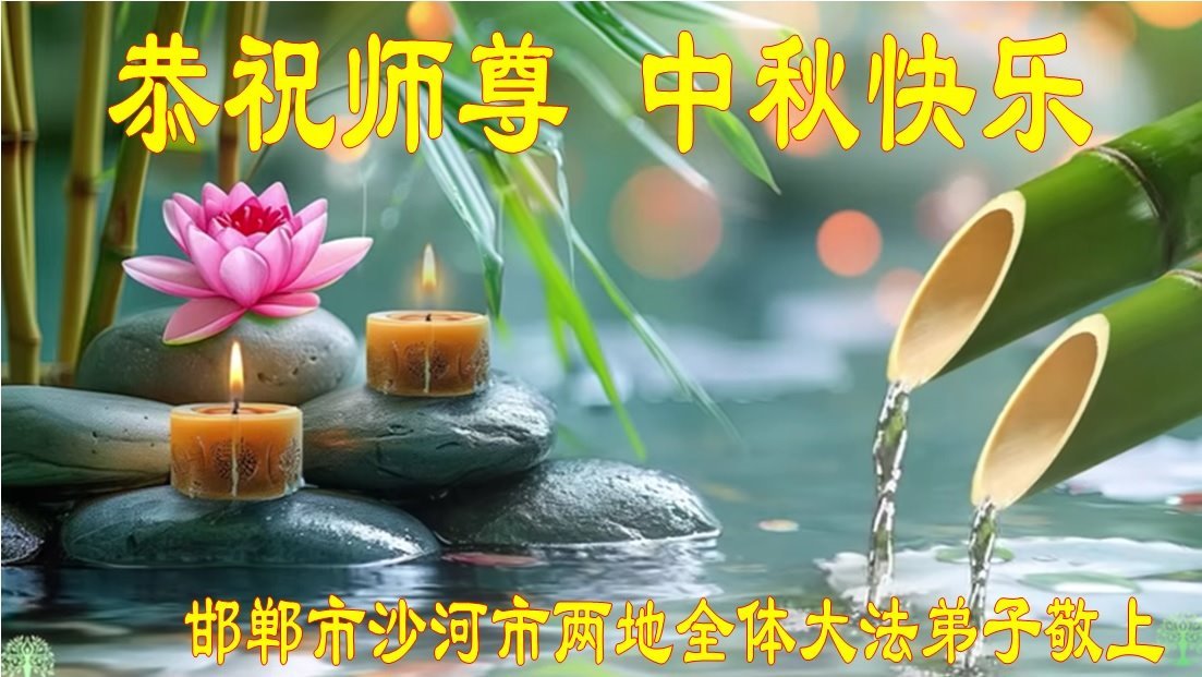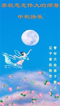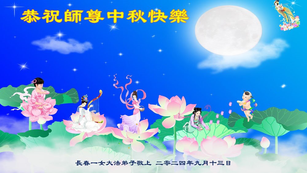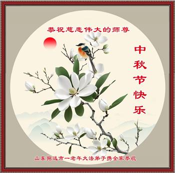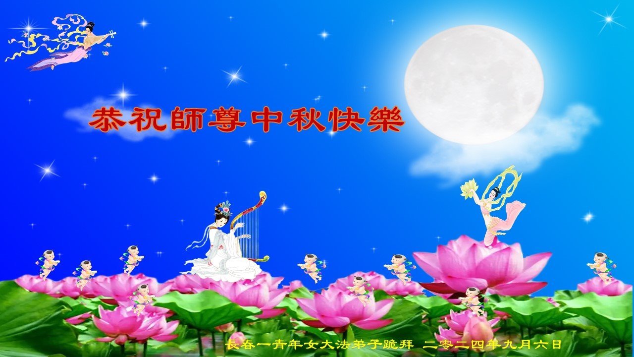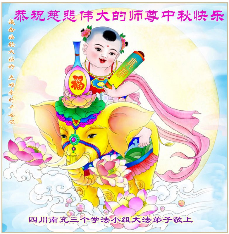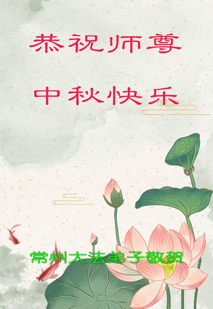 弟子和家人同修恭祝师父中秋节快乐!感恩师父对弟子和家人同修的一路慈悲看护!弟子也感恩师父对弟子的一切慈悲安排!弟子一定努力多学法炼功,用心做好救人的事情,修去妒嫉心,怨恨心,及人心,人念,人情,努力做好师父让弟子做的救人的事,跟随师父回家!