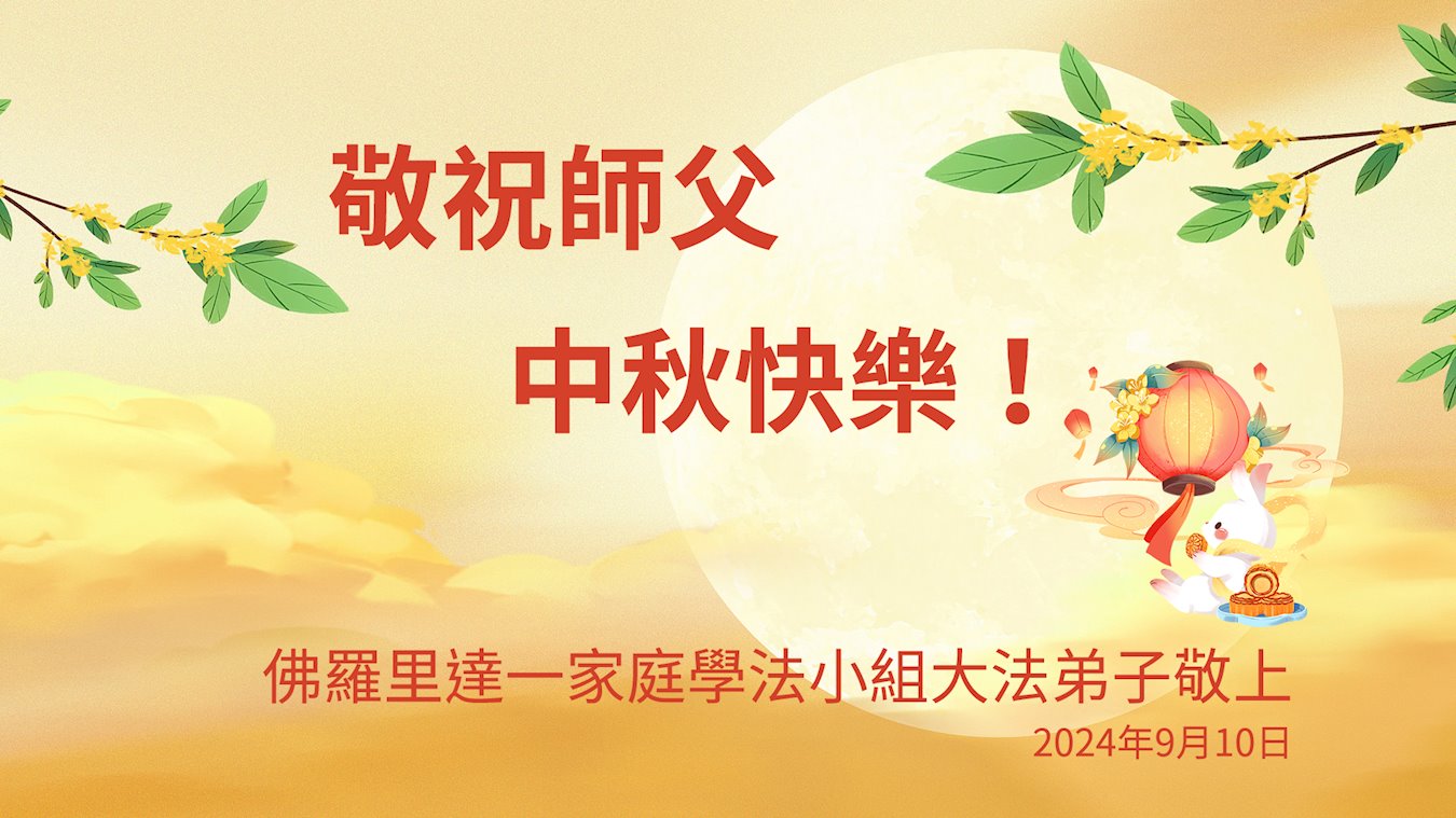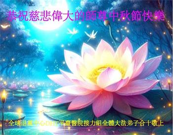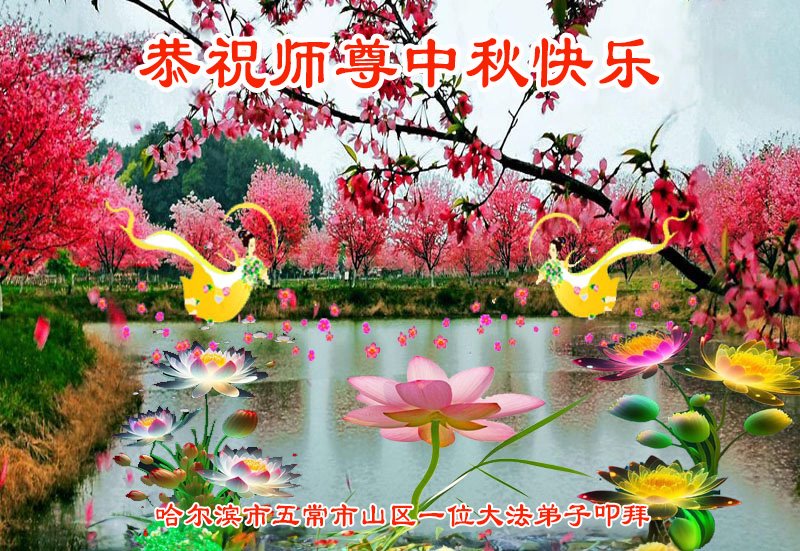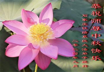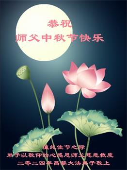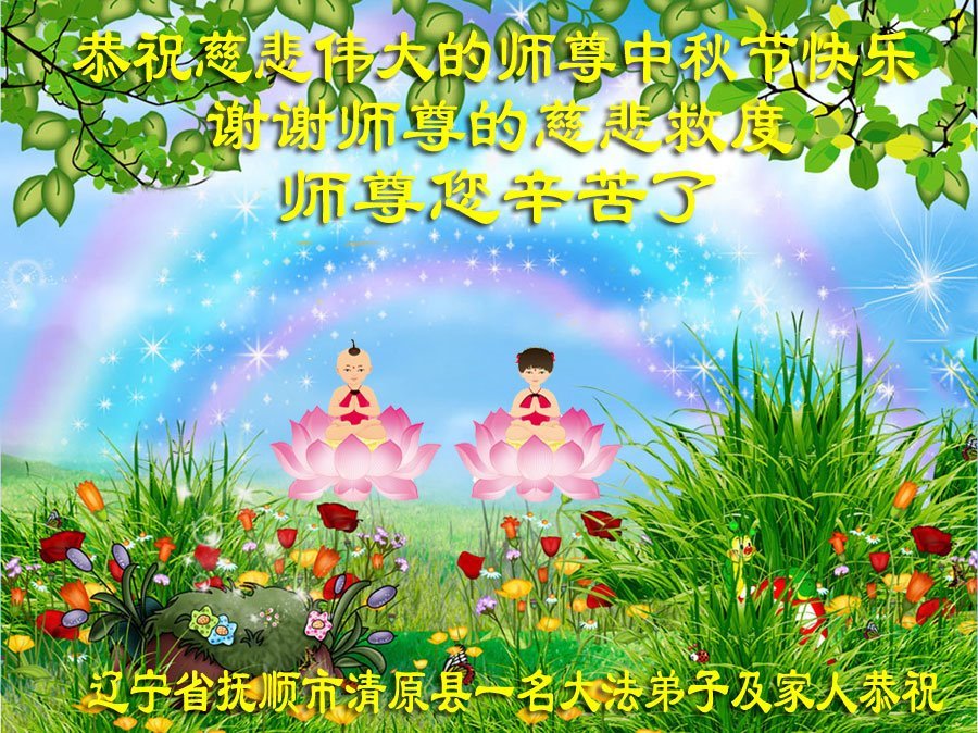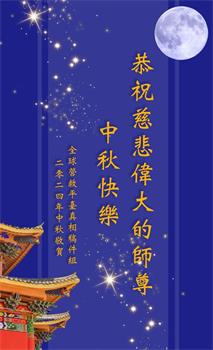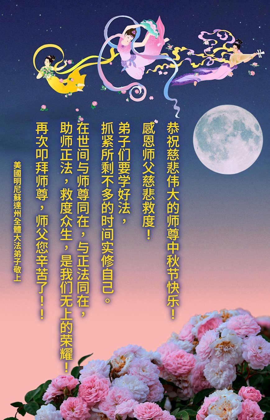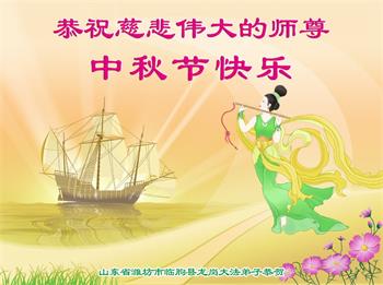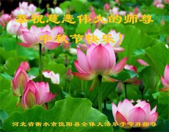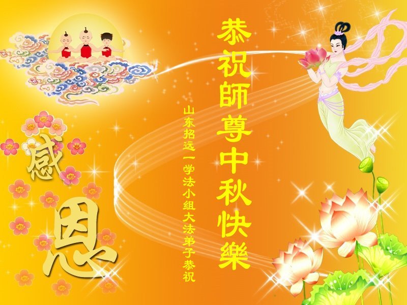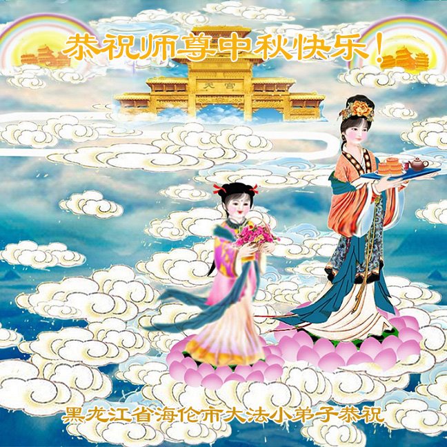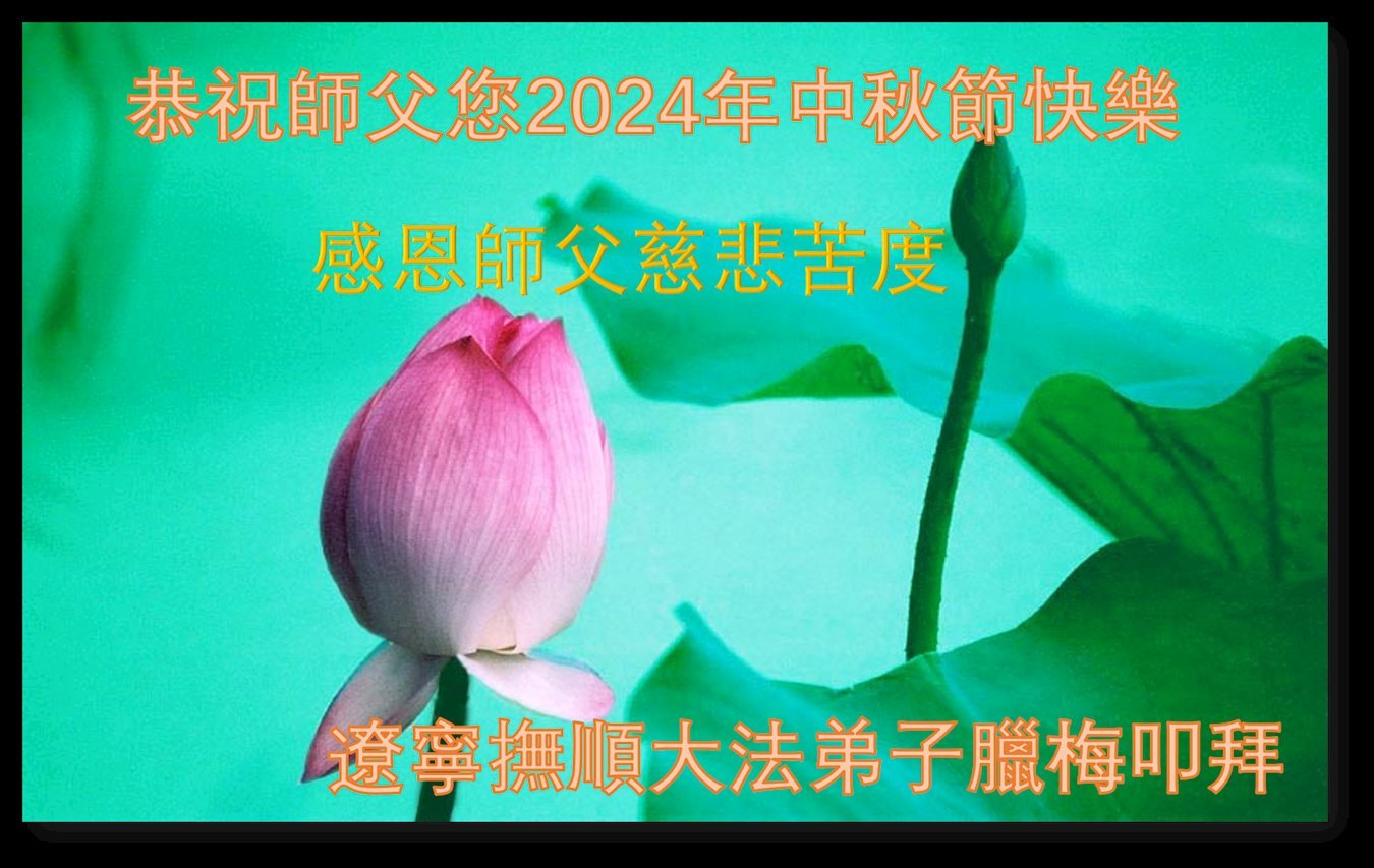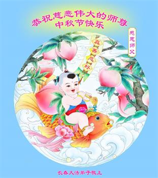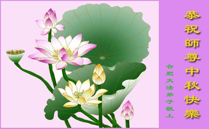 弟子和家人同修恭祝师父中秋节快乐!感恩师父对弟子和家人同修的一路慈悲看护!弟子也感恩师父对弟子的一切慈悲安排!弟子一定努力多学法炼功,用心做好救人的事情,修去妒嫉心,怨恨心,及人心,人念,人情,努力做好师父让弟子做的救人的事,跟随师父回家!