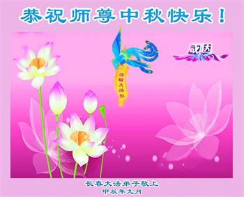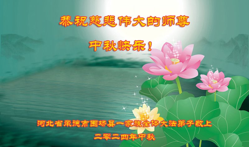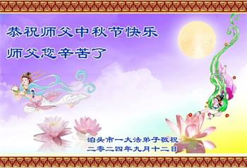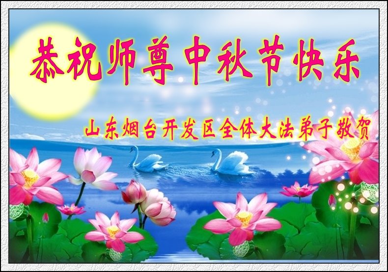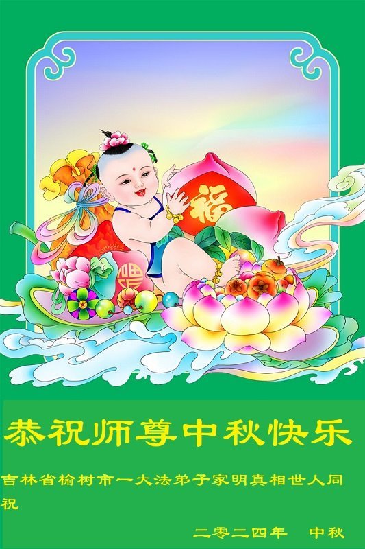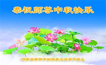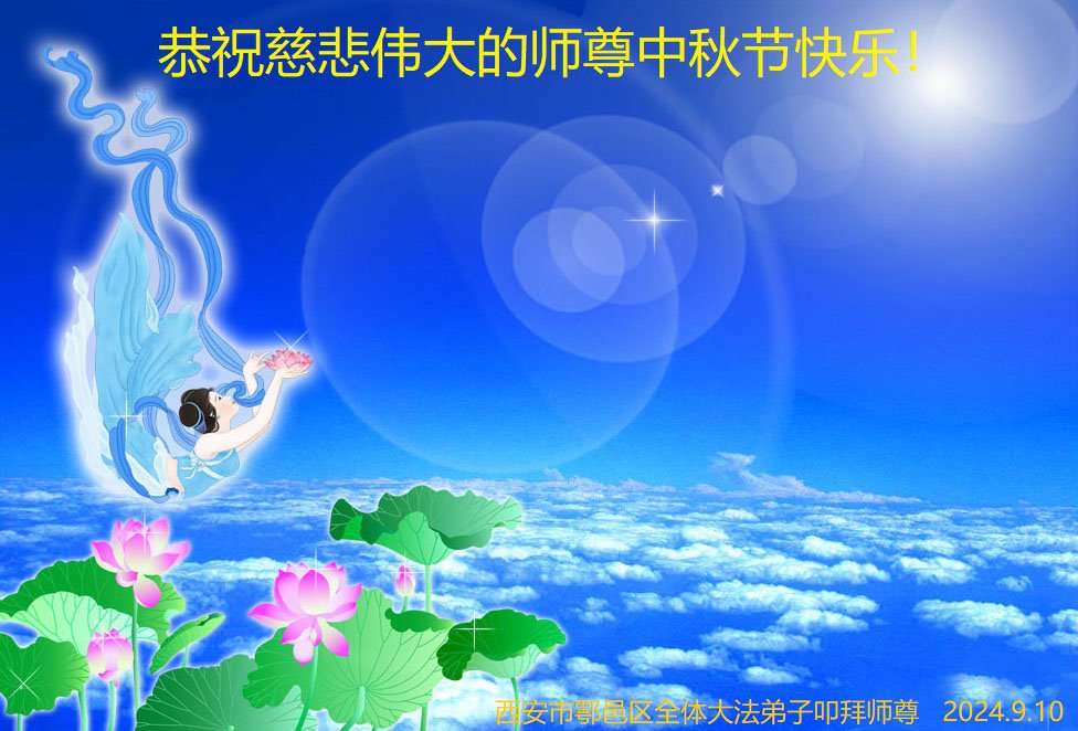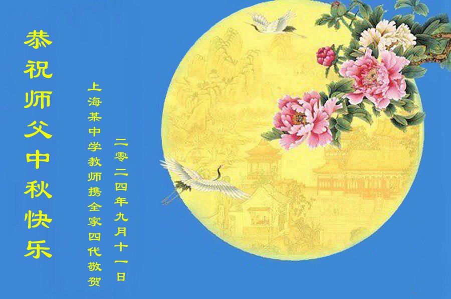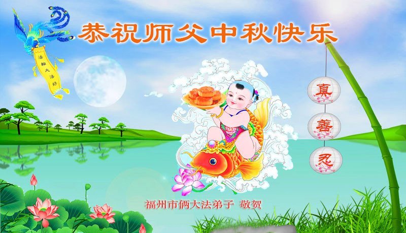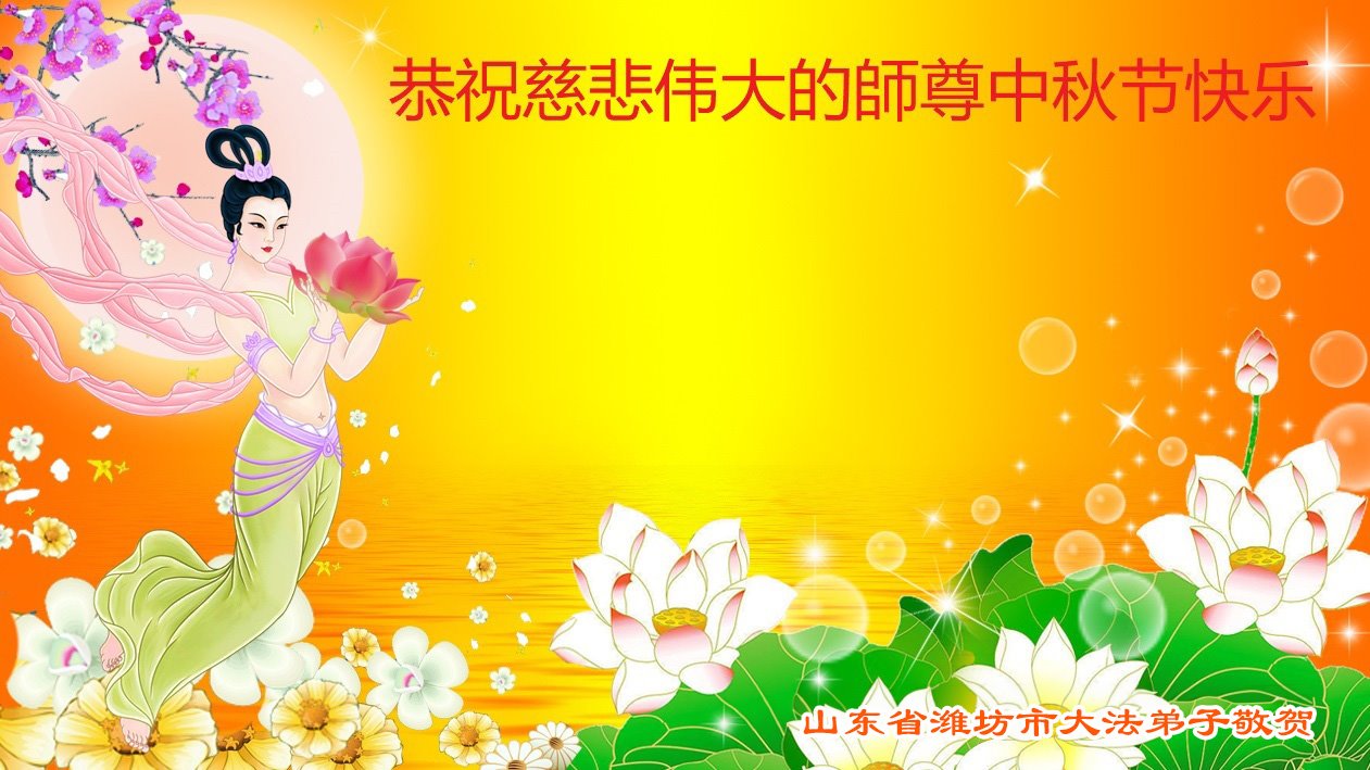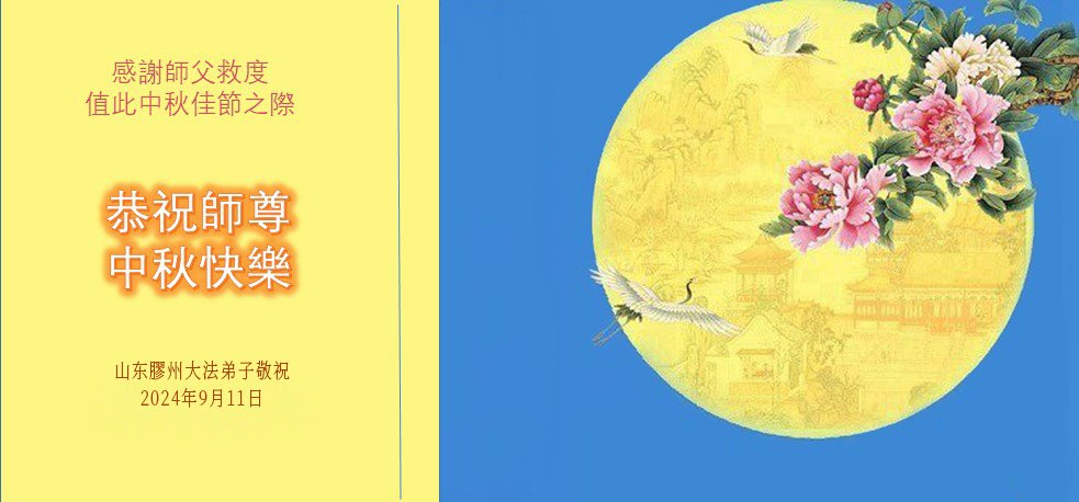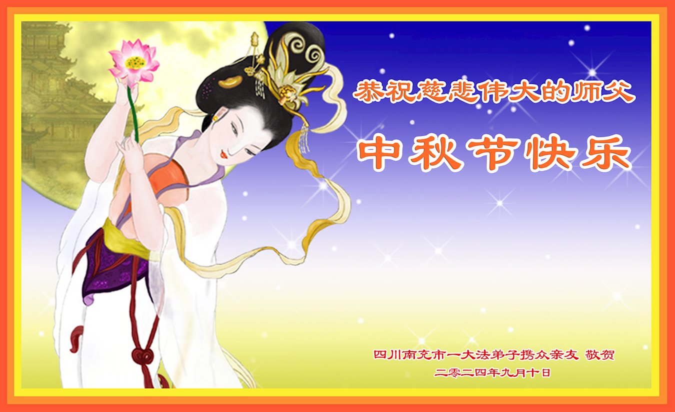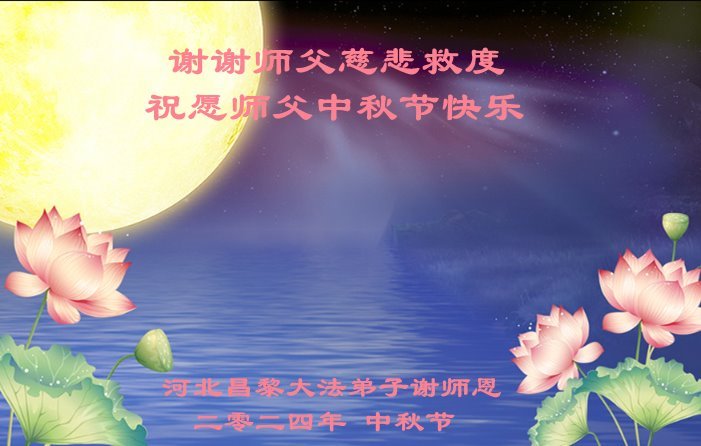 弟子和家人同修恭祝师父中秋节快乐!感恩师父对弟子和家人同修的一路慈悲看护!弟子也感恩师父对弟子的一切慈悲安排!弟子一定努力多学法炼功,用心做好救人的事情,修去妒嫉心,怨恨心,及人心,人念,人情,努力做好师父让弟子做的救人的事,跟随师父回家!