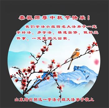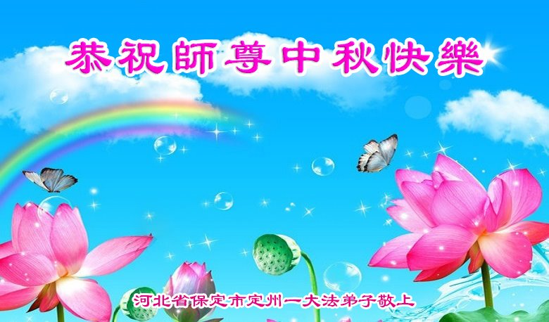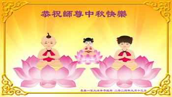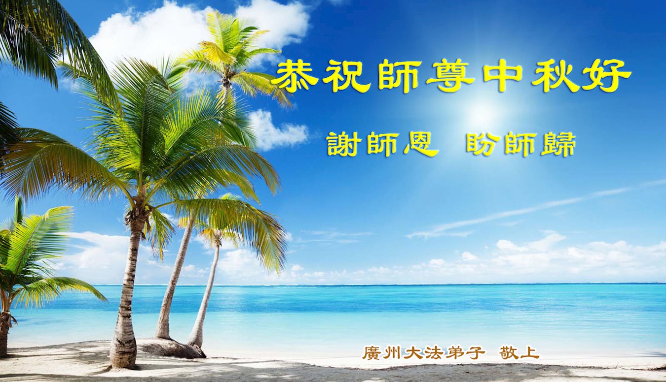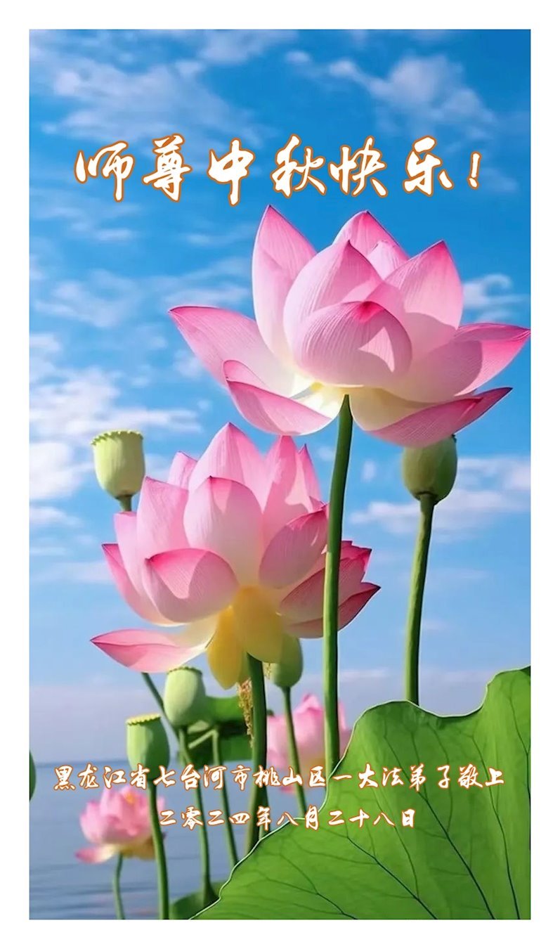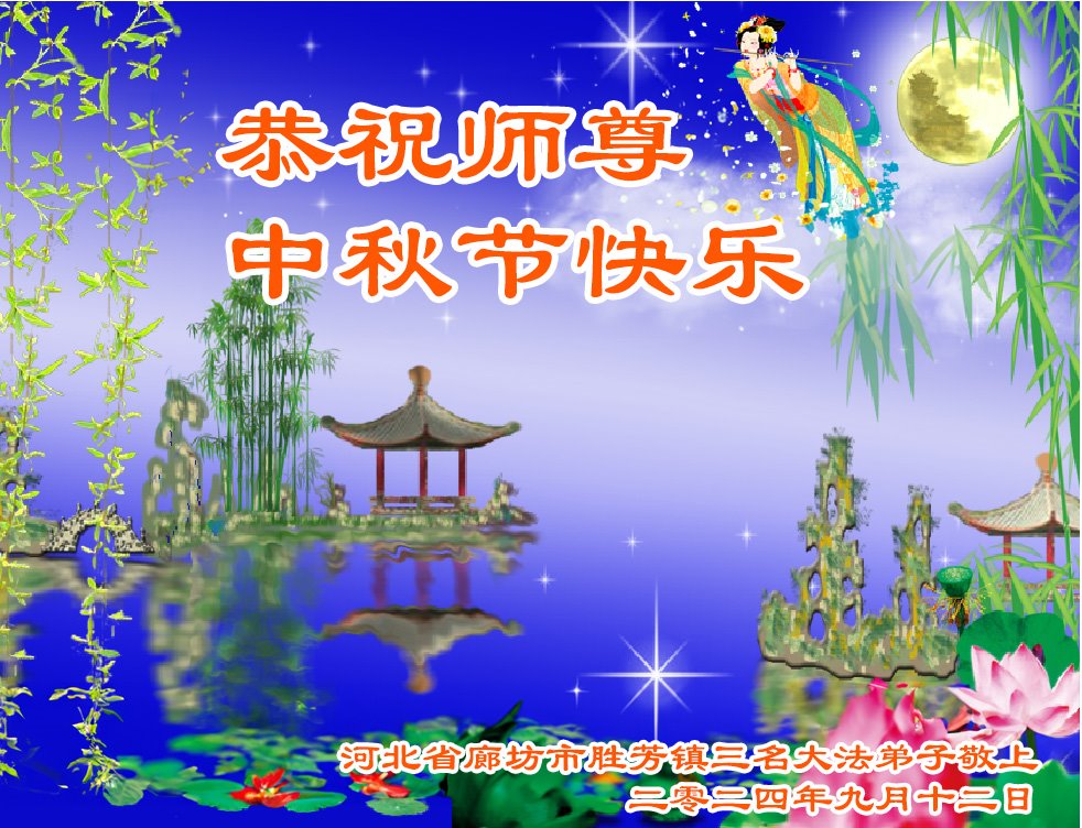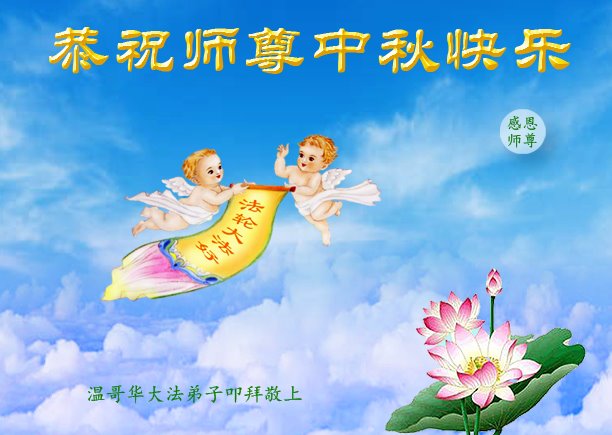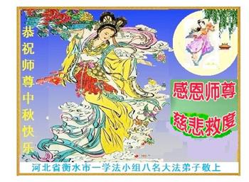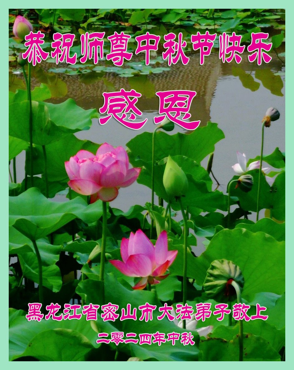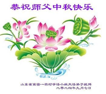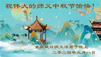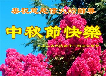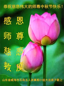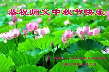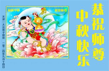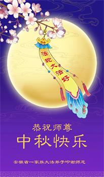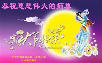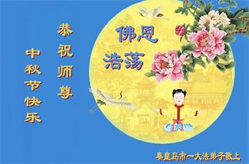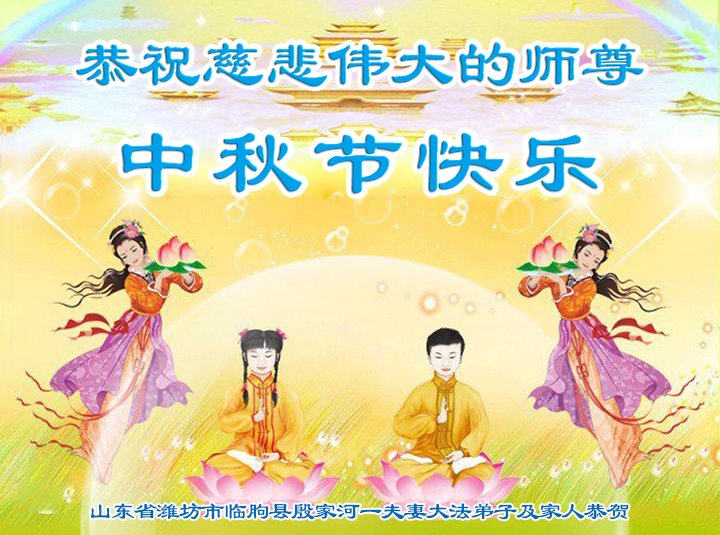 弟子和家人同修恭祝师父中秋节快乐!感恩师父对弟子和家人同修的一路慈悲看护!弟子也感恩师父对弟子的一切慈悲安排!弟子一定努力多学法炼功,用心做好救人的事情,修去妒嫉心,怨恨心,及人心,人念,人情,努力做好师父让弟子做的救人的事,跟随师父回家!