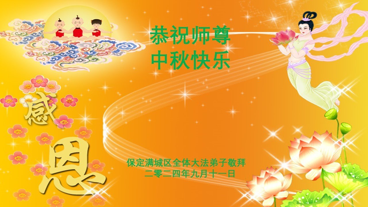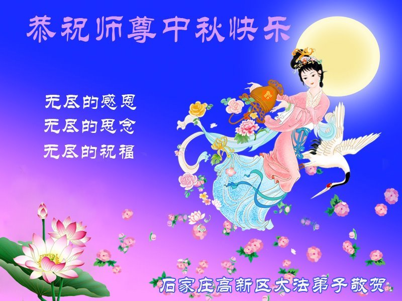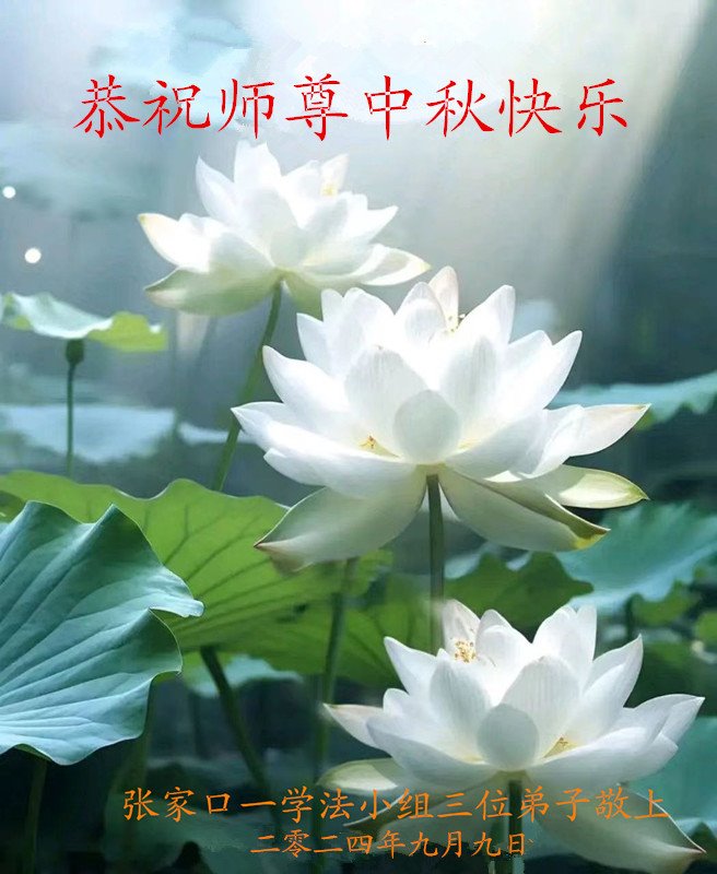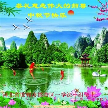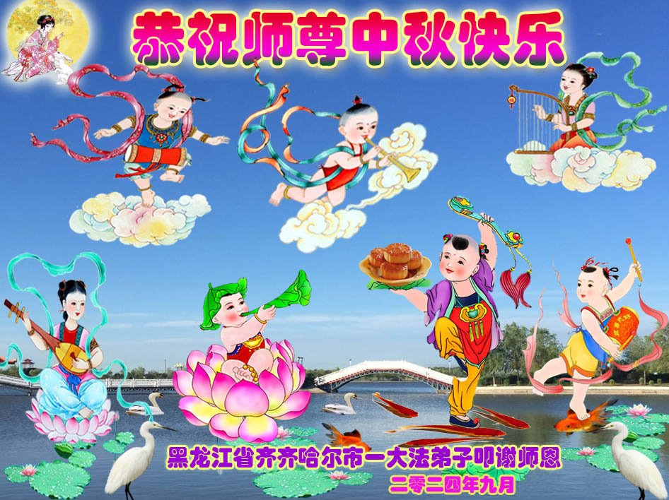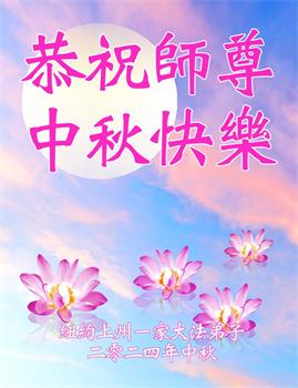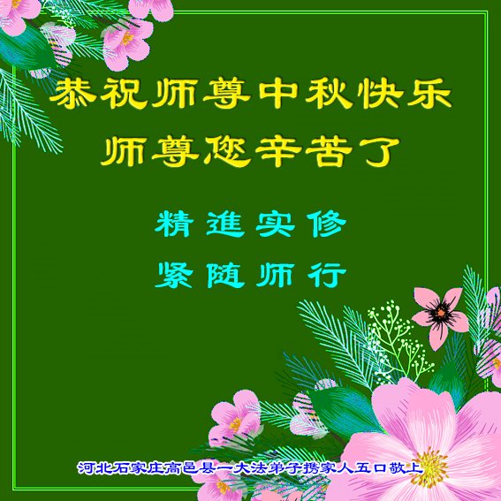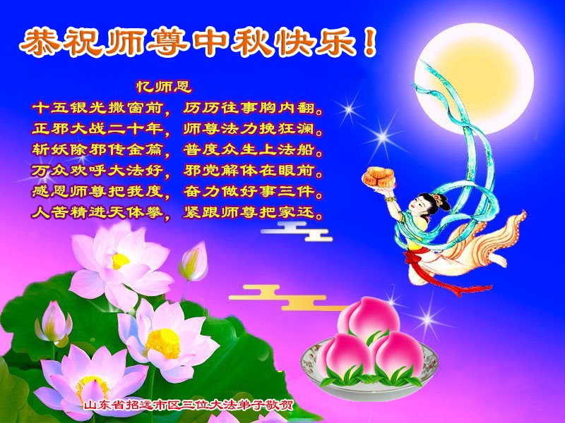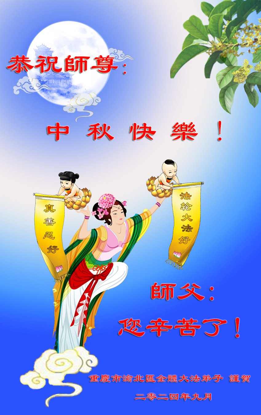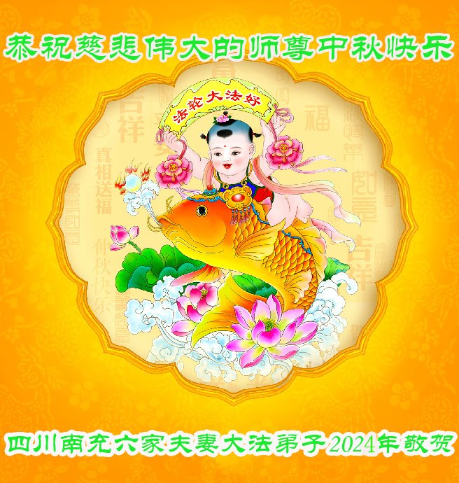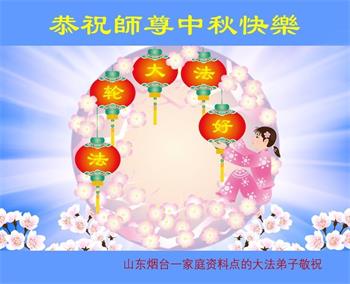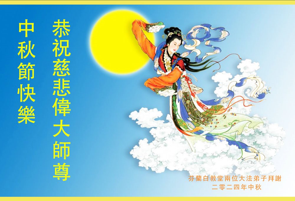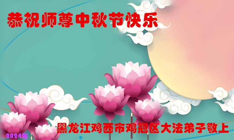 弟子和家人同修恭祝师父中秋节快乐!感恩师父对弟子和家人同修的一路慈悲看护!弟子也感恩师父对弟子的一切慈悲安排!弟子一定努力多学法炼功,用心做好救人的事情,修去妒嫉心,怨恨心,及人心,人念,人情,努力做好师父让弟子做的救人的事,跟随师父回家!