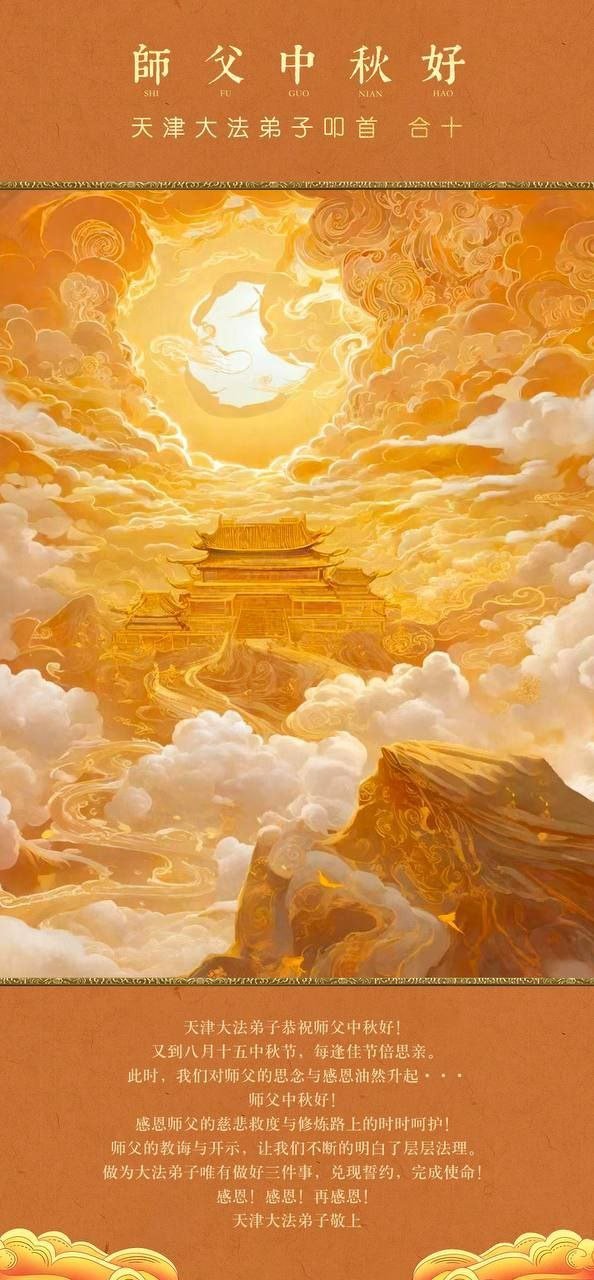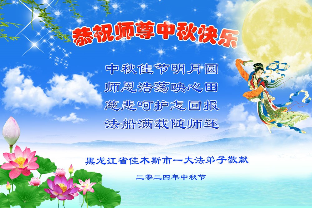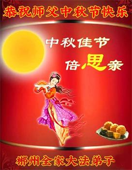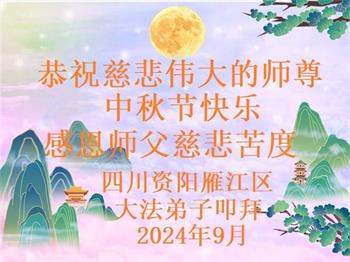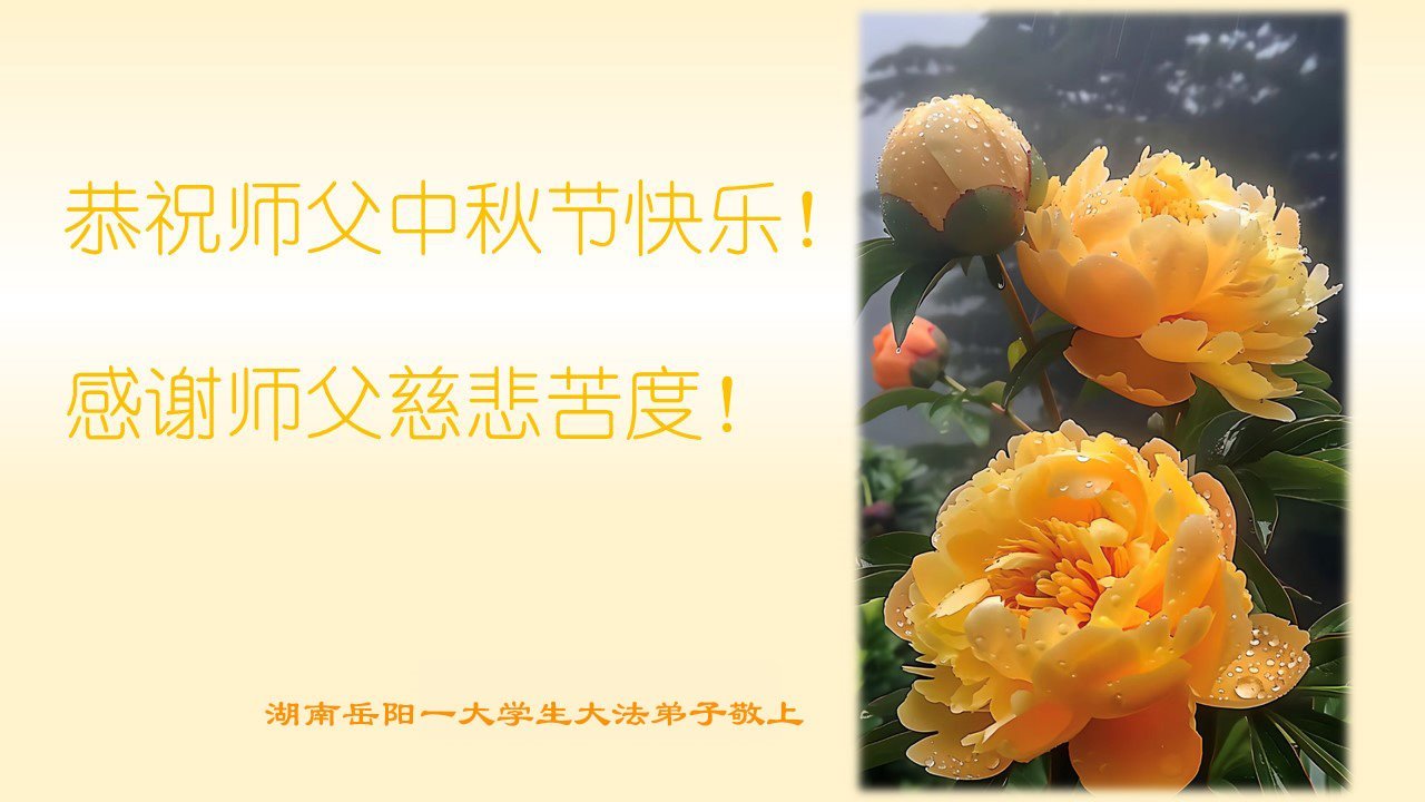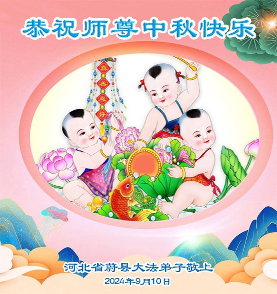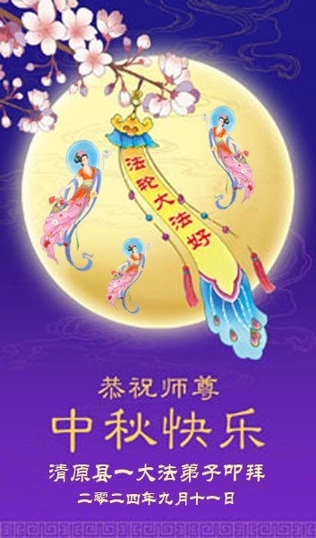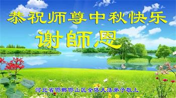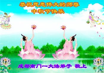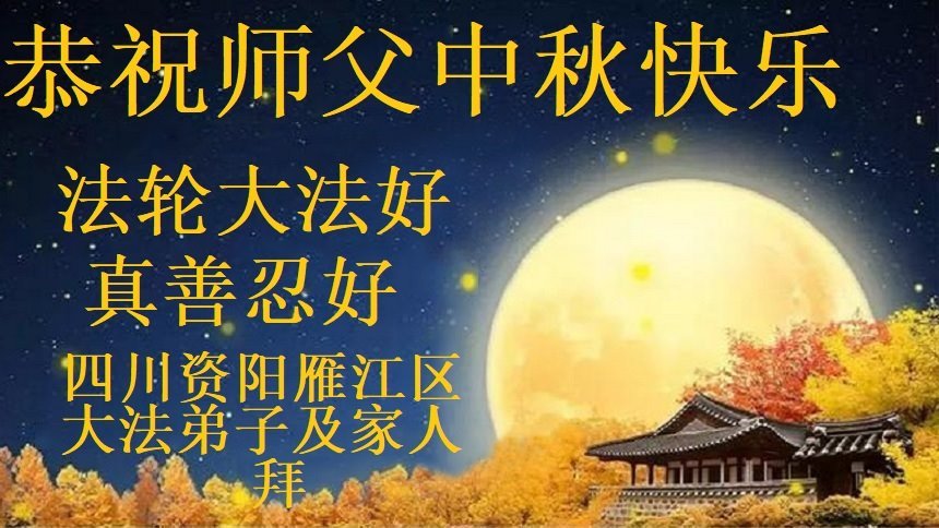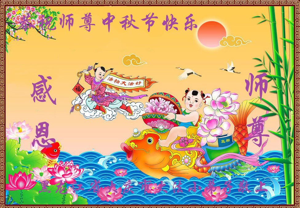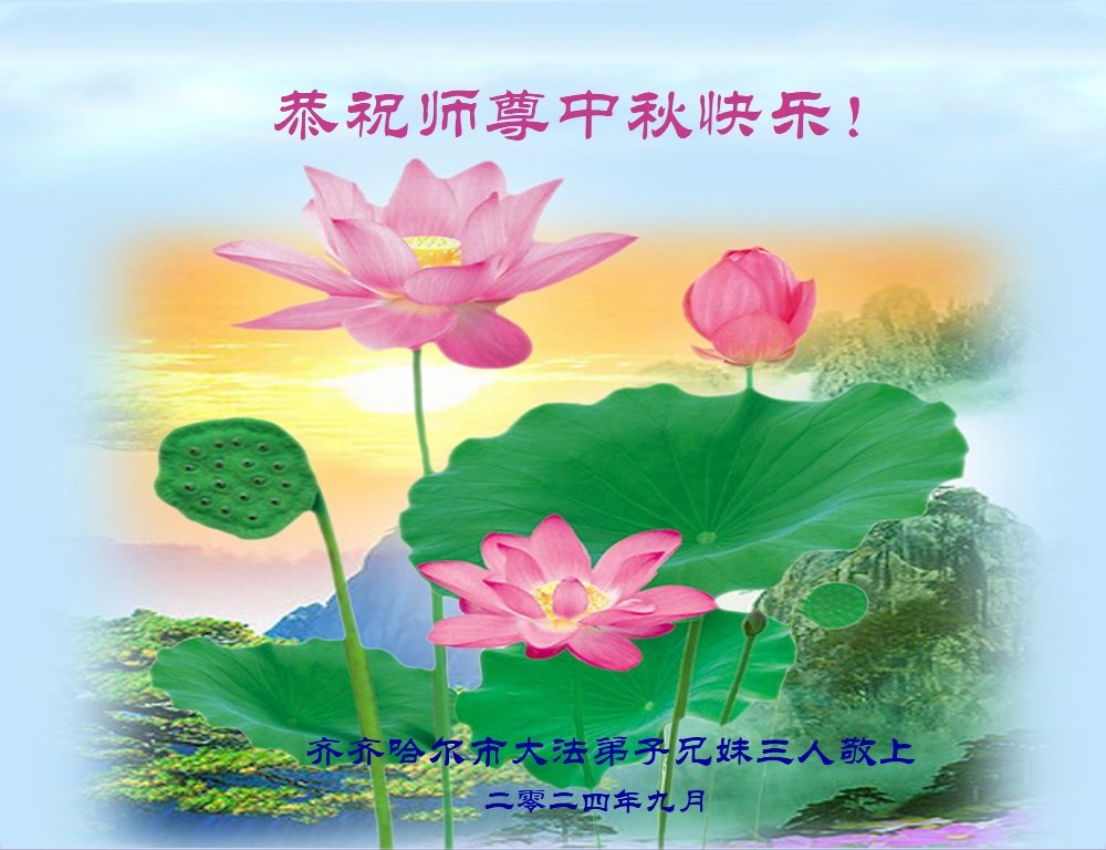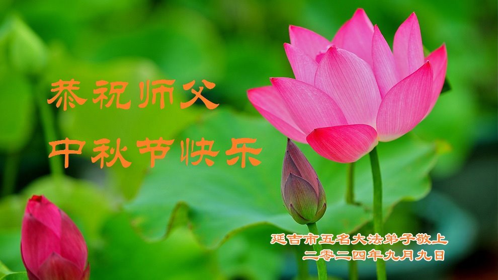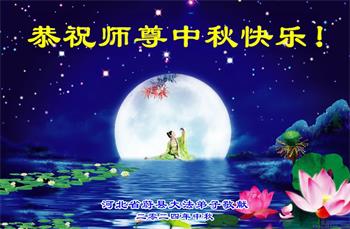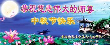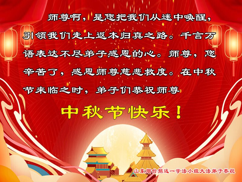 弟子和家人同修恭祝师父中秋节快乐!感恩师父对弟子和家人同修的一路慈悲看护!弟子也感恩师父对弟子的一切慈悲安排!弟子一定努力多学法炼功,用心做好救人的事情,修去妒嫉心,怨恨心,及人心,人念,人情,努力做好师父让弟子做的救人的事,跟随师父回家!