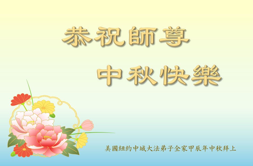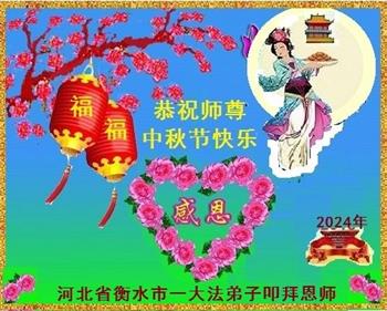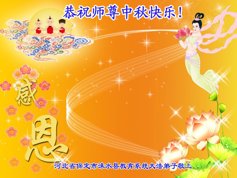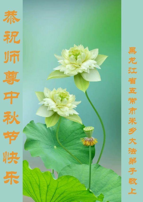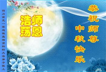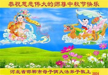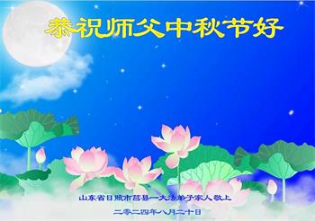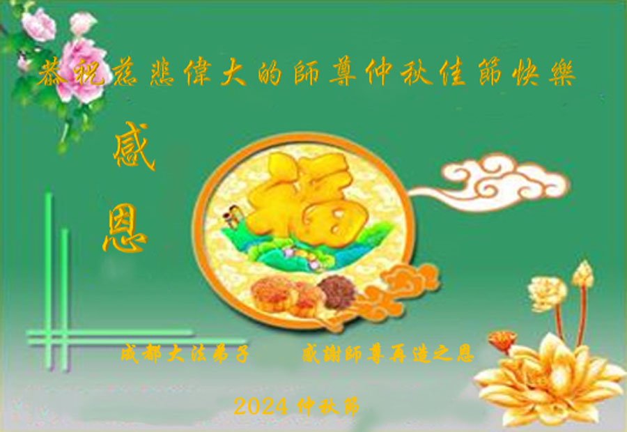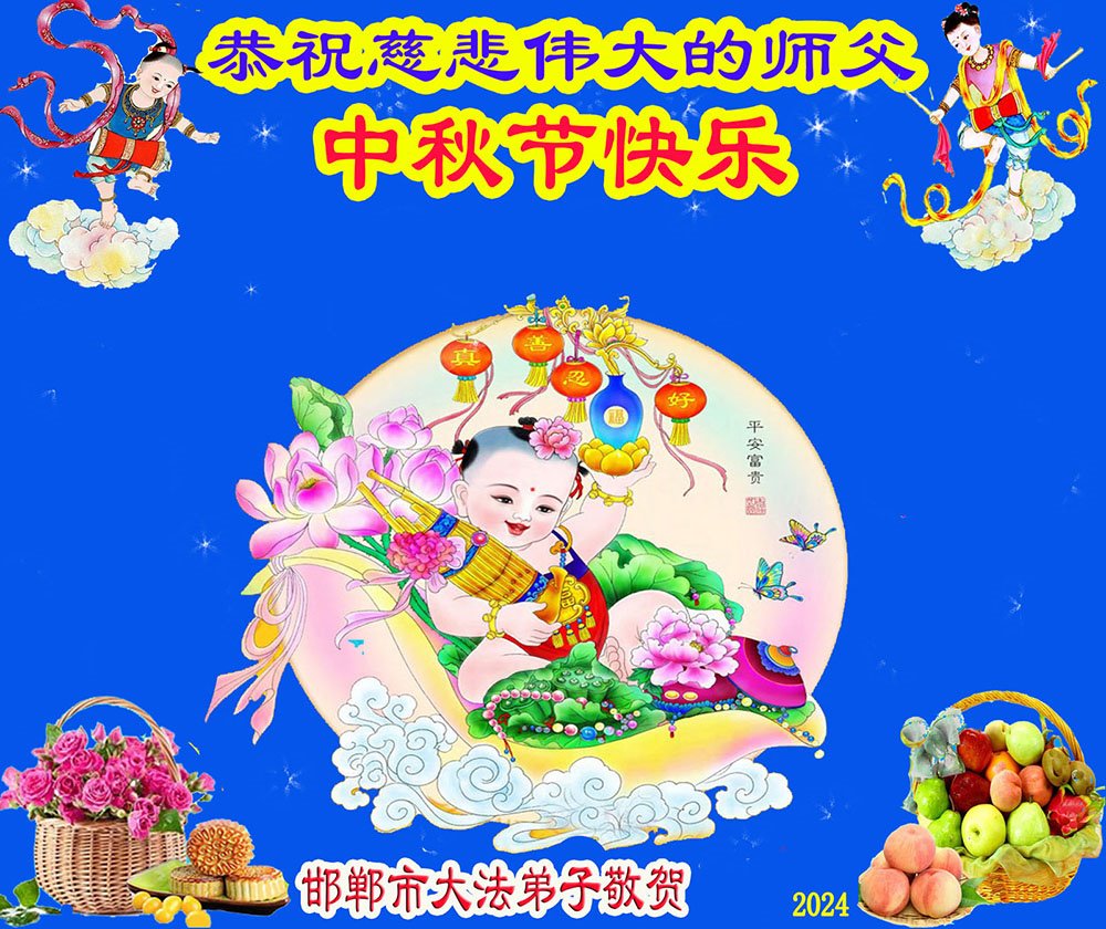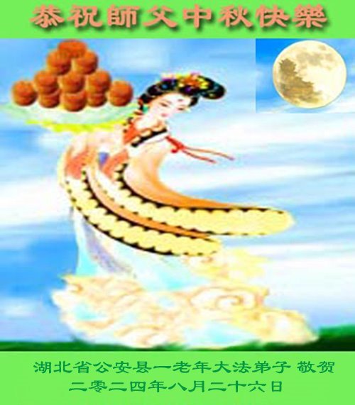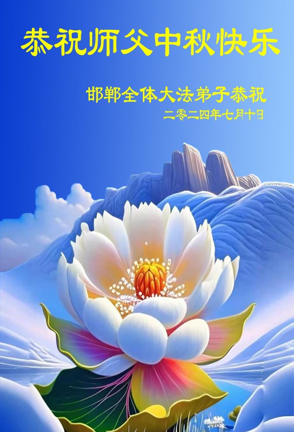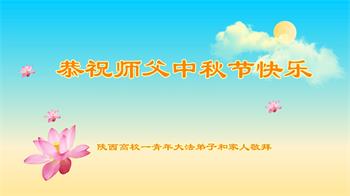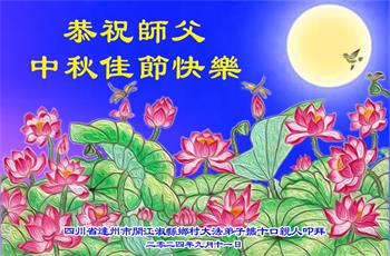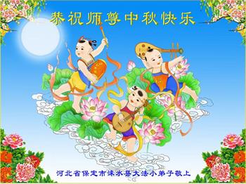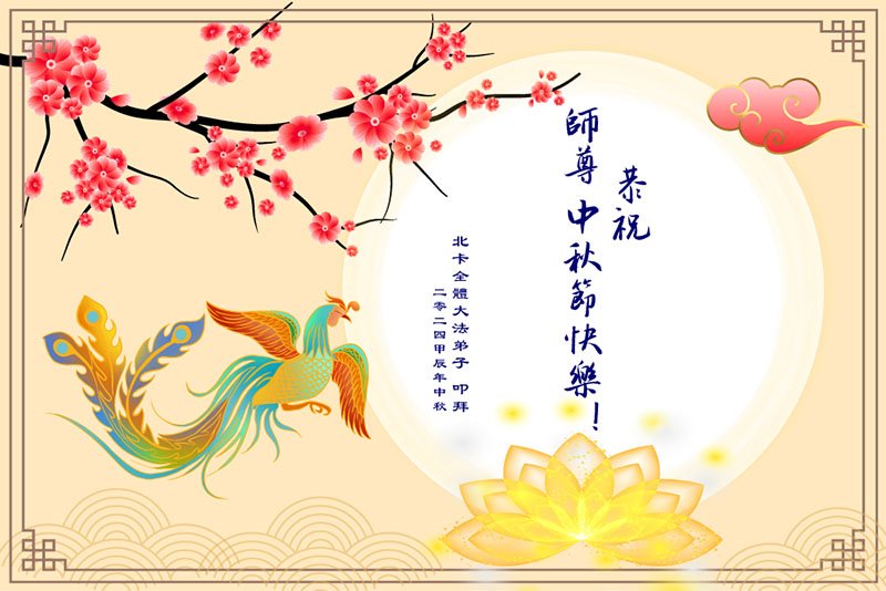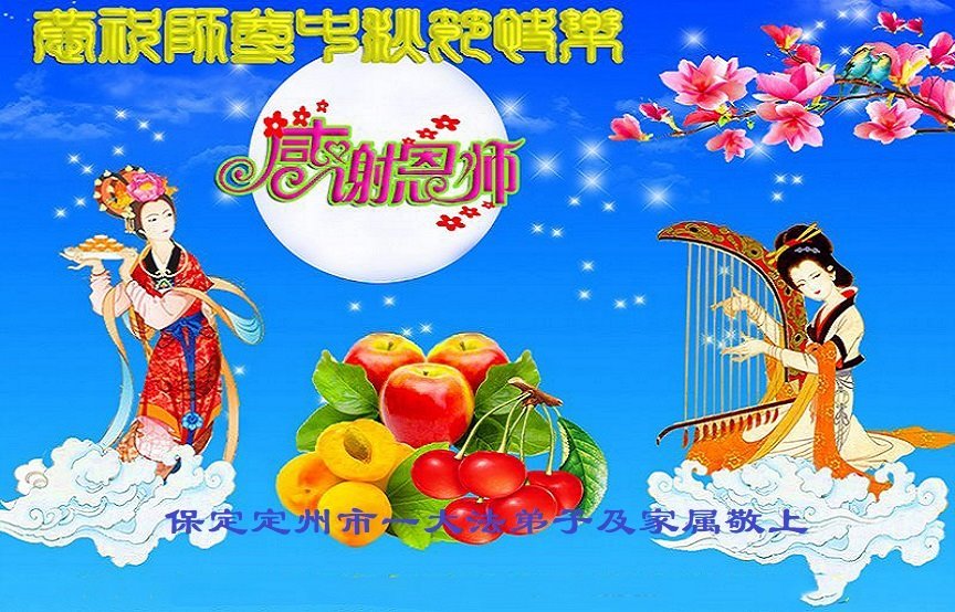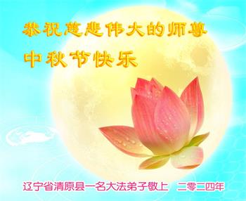 弟子和家人同修恭祝师父中秋节快乐!感恩师父对弟子和家人同修的一路慈悲看护!弟子也感恩师父对弟子的一切慈悲安排!弟子一定努力多学法炼功,用心做好救人的事情,修去妒嫉心,怨恨心,及人心,人念,人情,努力做好师父让弟子做的救人的事,跟随师父回家!