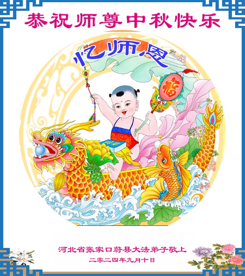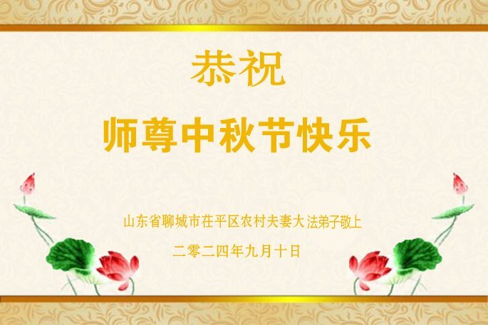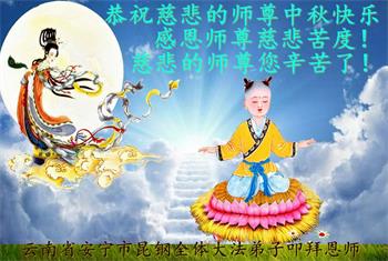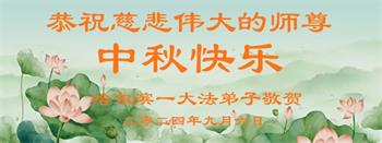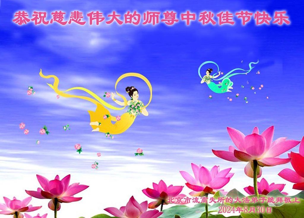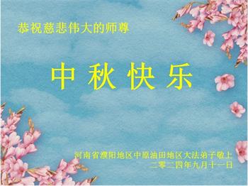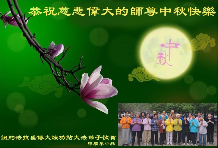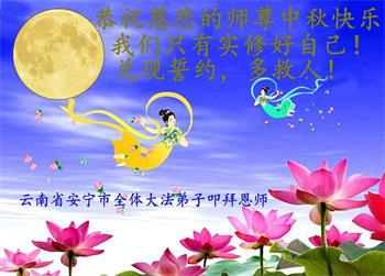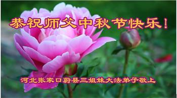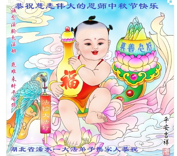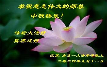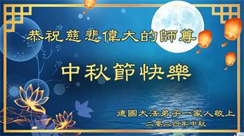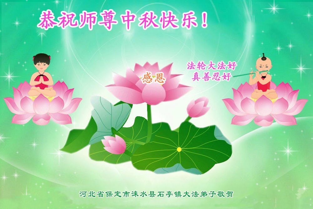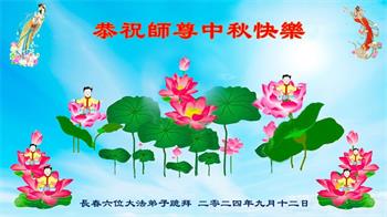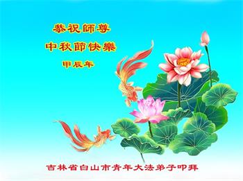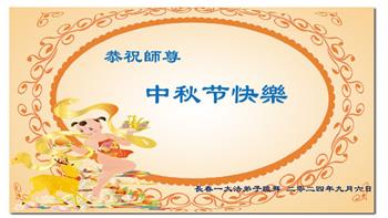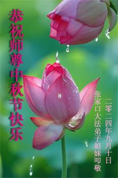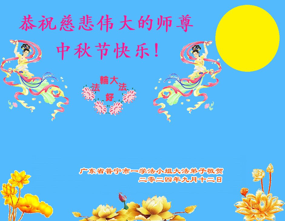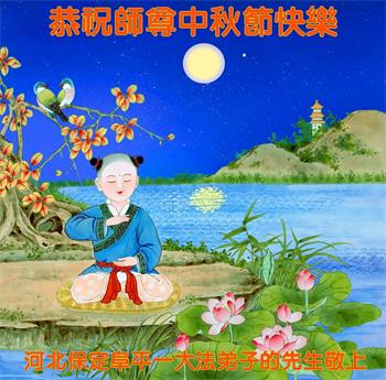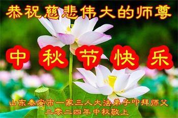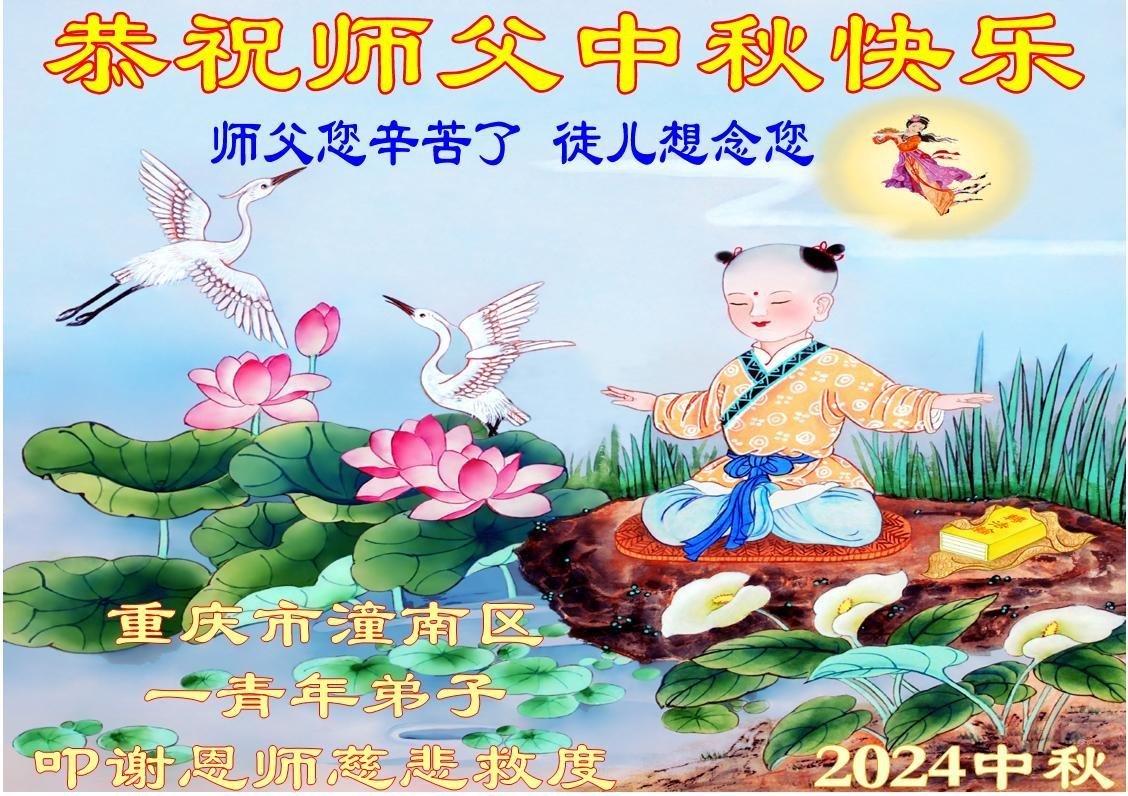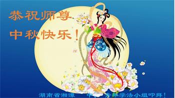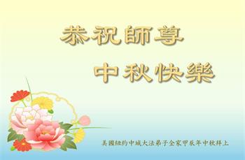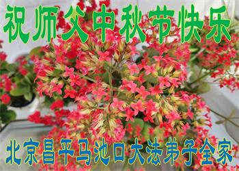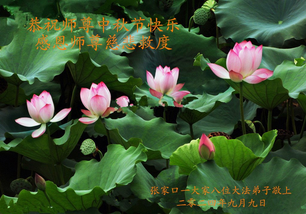 弟子和家人同修恭祝师父中秋节快乐!感恩师父对弟子和家人同修的一路慈悲看护!弟子也感恩师父对弟子的一切慈悲安排!弟子一定努力多学法炼功,用心做好救人的事情,修去妒嫉心,怨恨心,及人心,人念,人情,努力做好师父让弟子做的救人的事,跟随师父回家!
