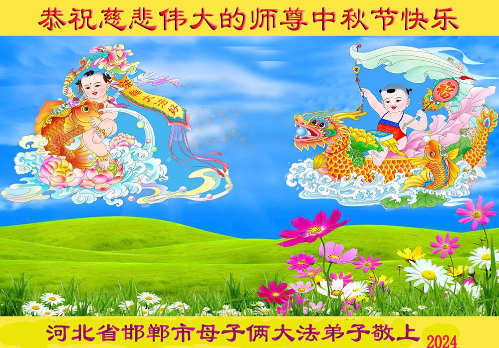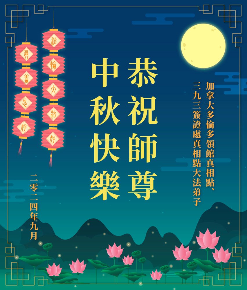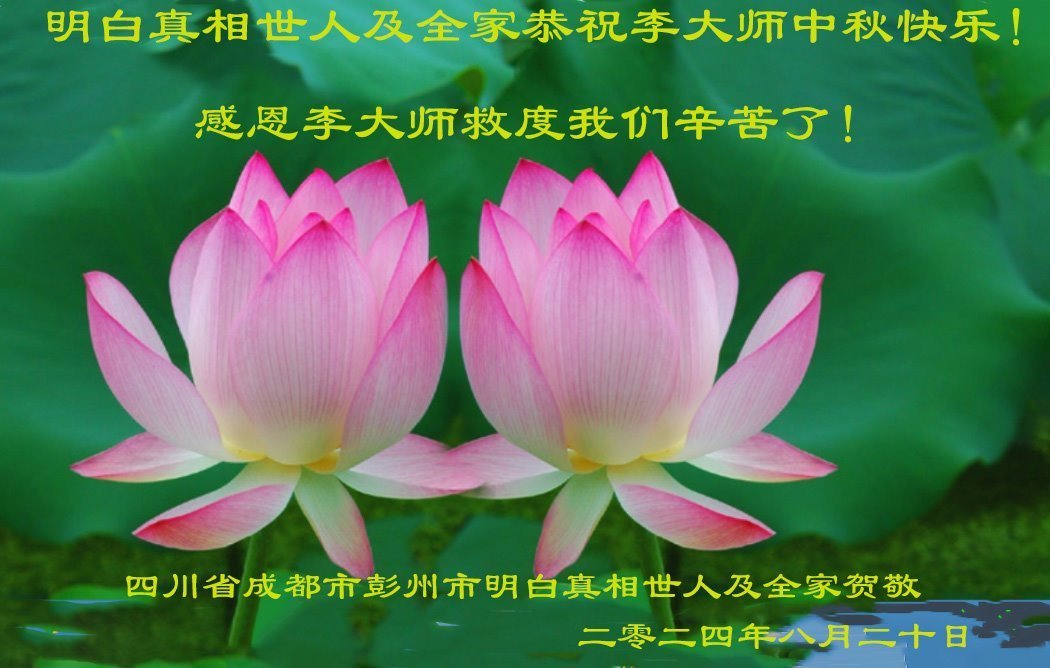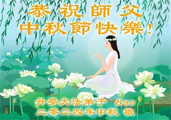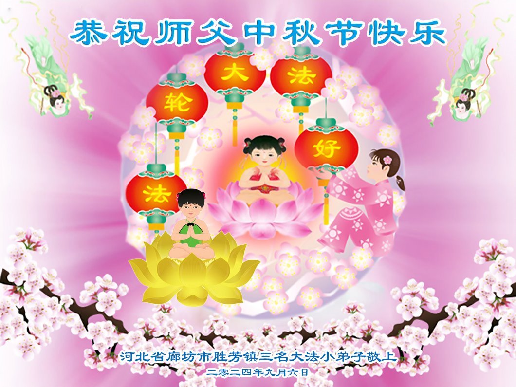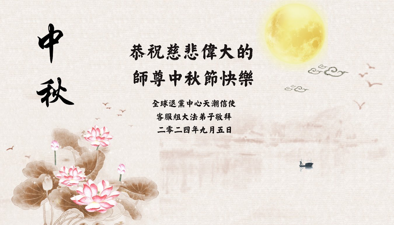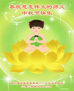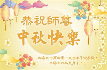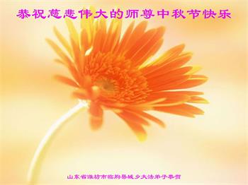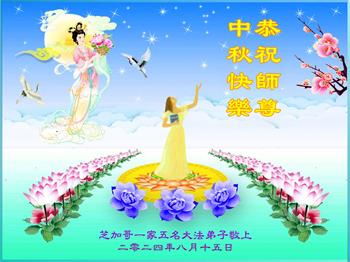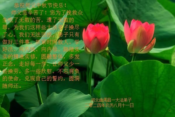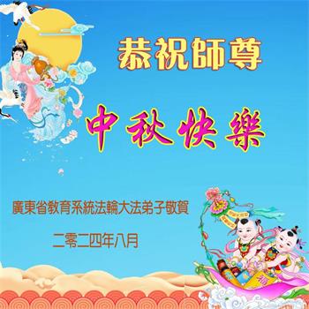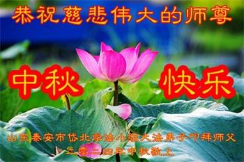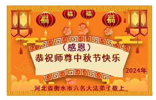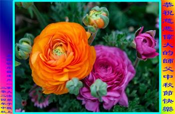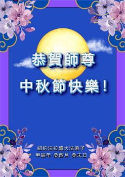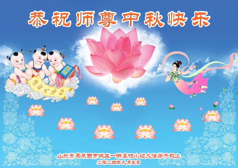 弟子和家人同修恭祝师父中秋节快乐!感恩师父对弟子和家人同修的一路慈悲看护!弟子也感恩师父对弟子的一切慈悲安排!弟子一定努力多学法炼功,用心做好救人的事情,修去妒嫉心,怨恨心,及人心,人念,人情,努力做好师父让弟子做的救人的事,跟随师父回家!