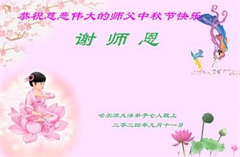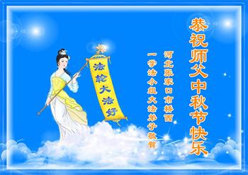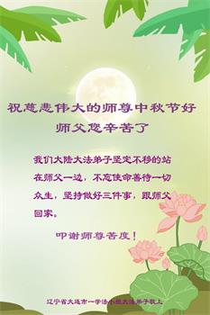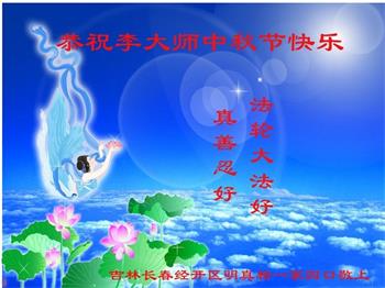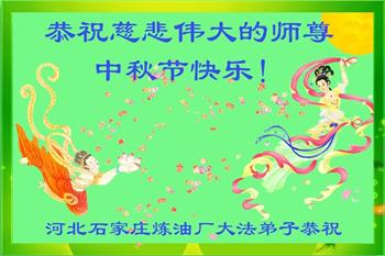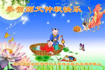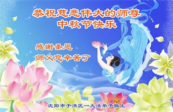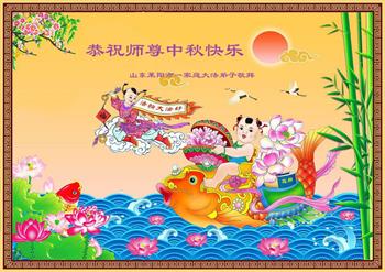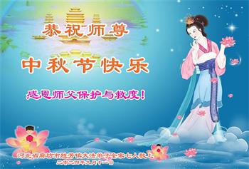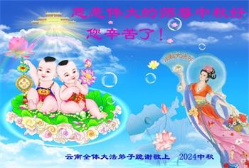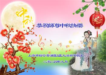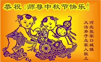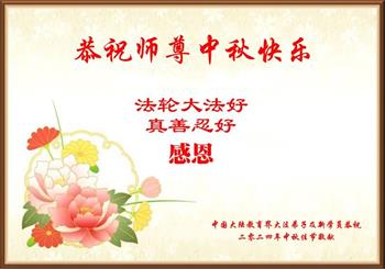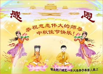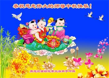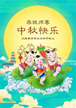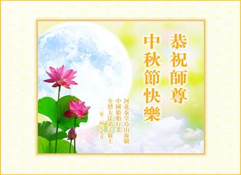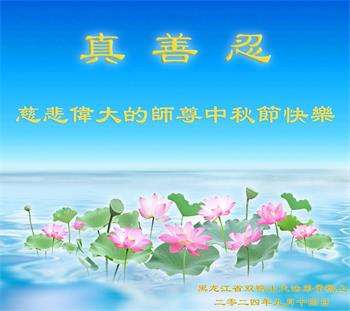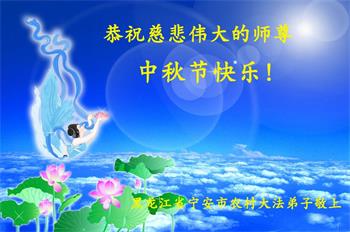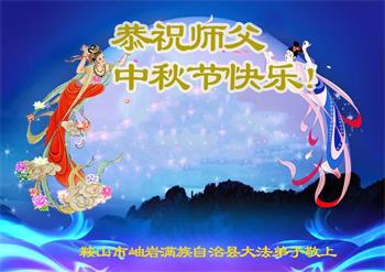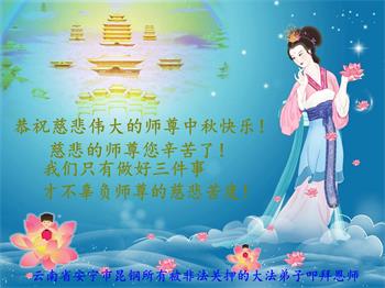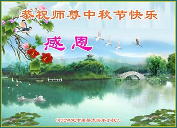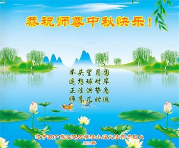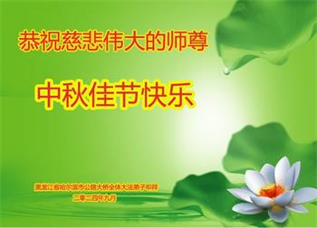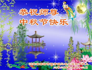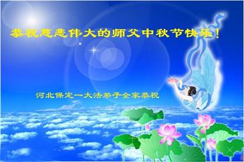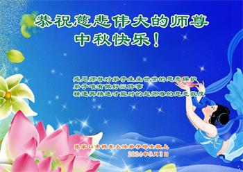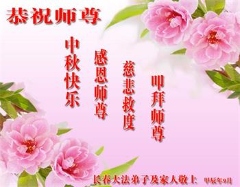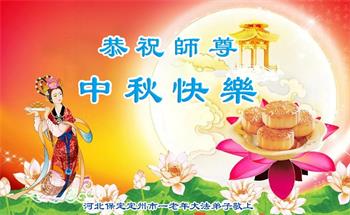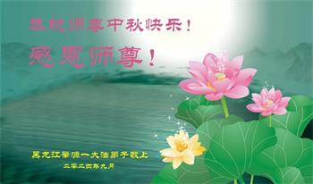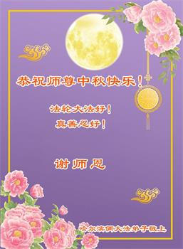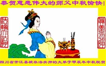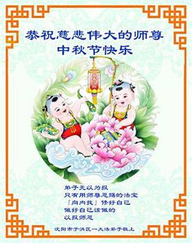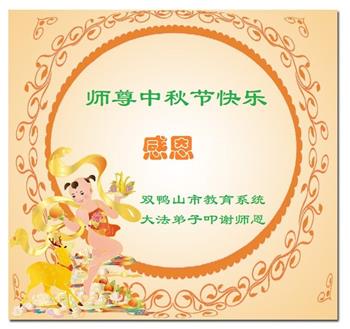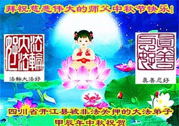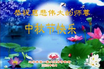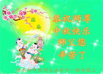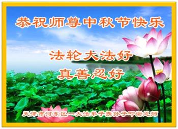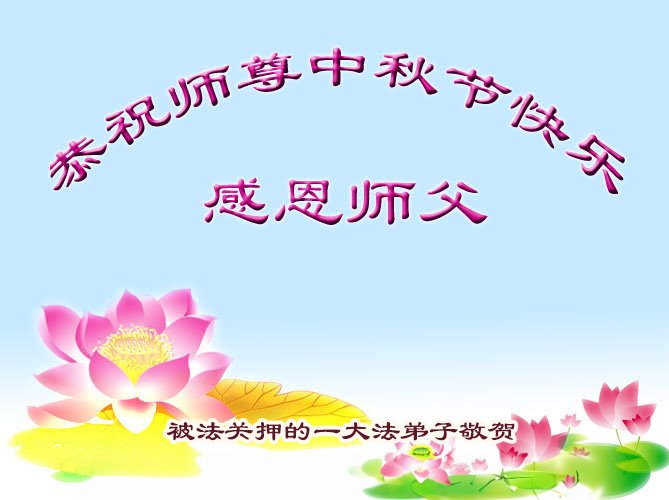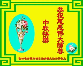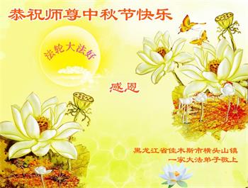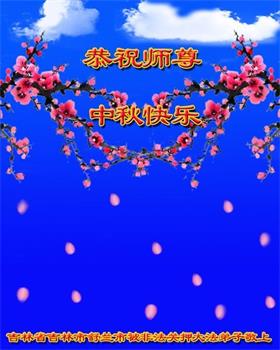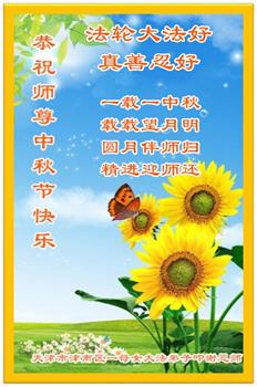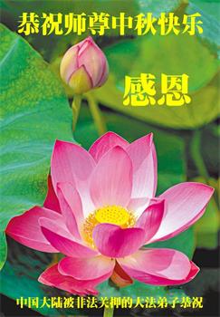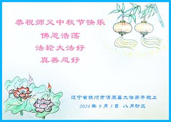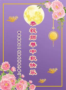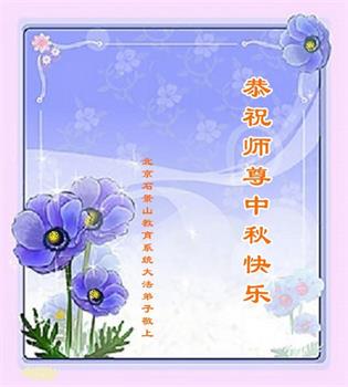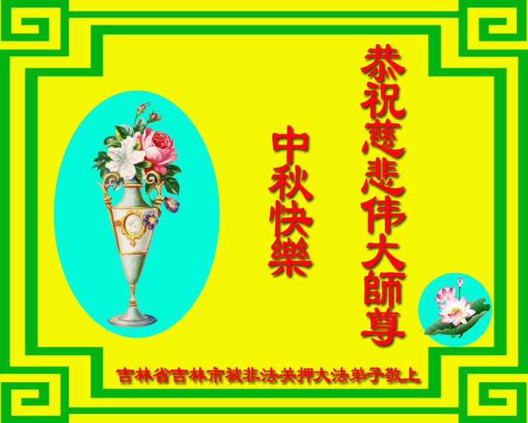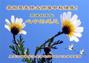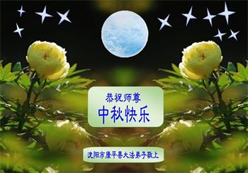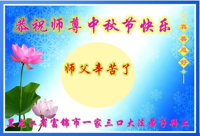 以下来自北京市、天津市、上海市、黑龙江省、吉林省长春市、吉林市、辽宁省沈阳市、新宾县、鞍山市、内蒙古自治区、宁夏回族自治区、山东省菏泽市、河北省石家庄市、河南省许昌市、三门峡市、湖北省武汉市、咸宁市、江苏省连云港市、浙江省、四川省自贡市、云南省等地的被非法关押大法弟子,以及被非法关押在黑龙江省泰来监狱、呼兰监狱、河南省新乡监狱、江苏省苏州监狱、云南省昆明监狱的大法弟子托亲友们发来敬献给慈悲伟大的师父的中秋贺词贺卡。