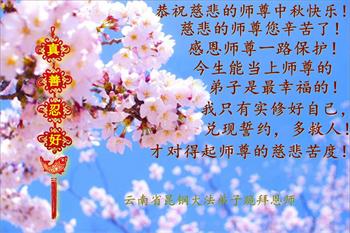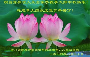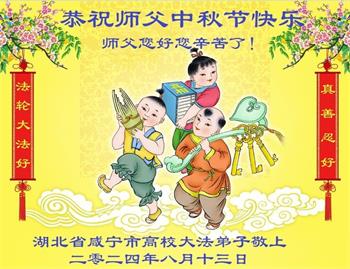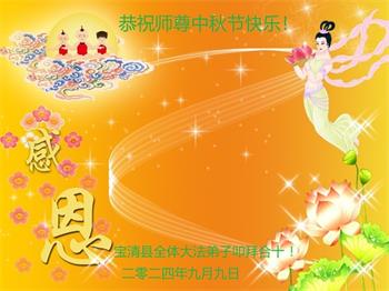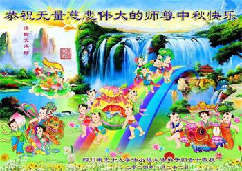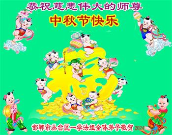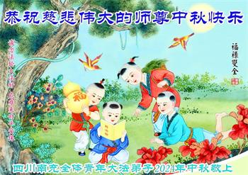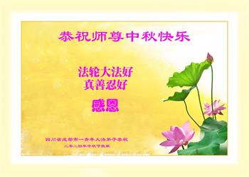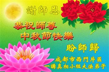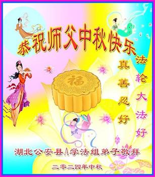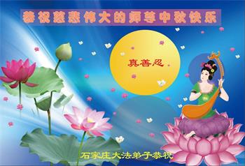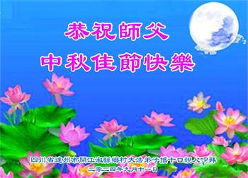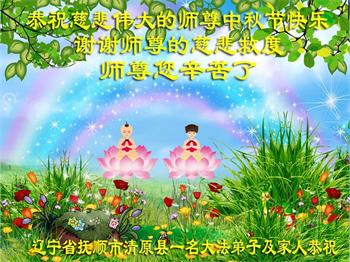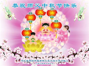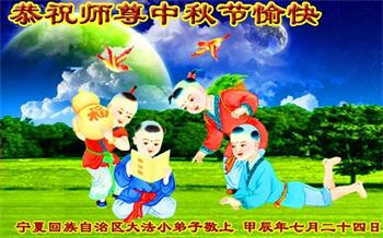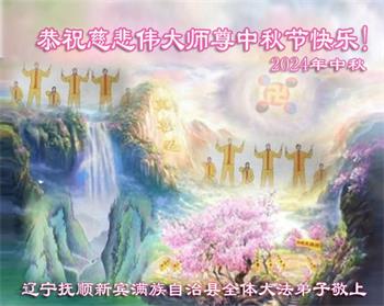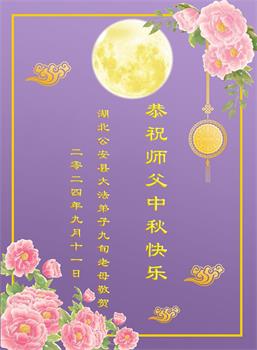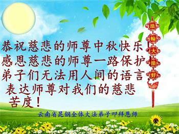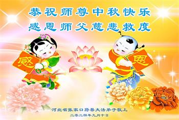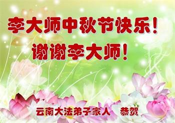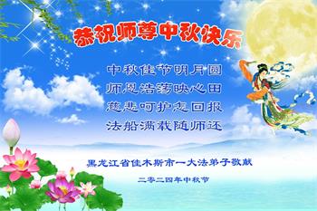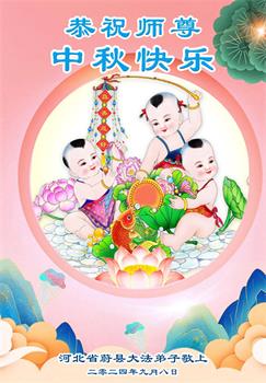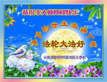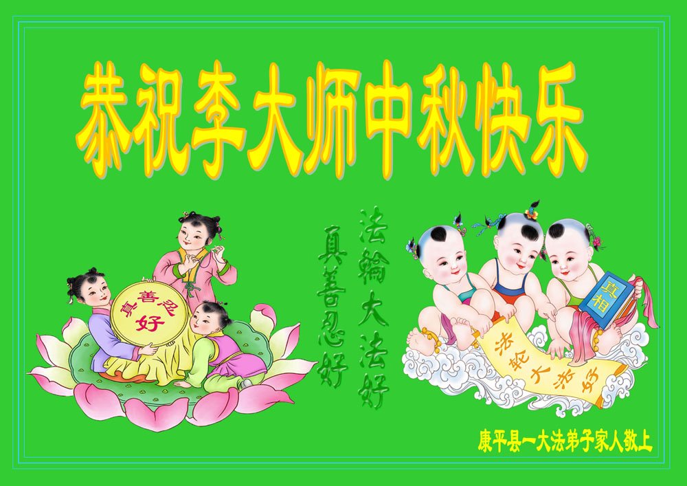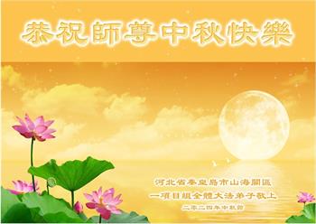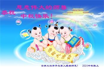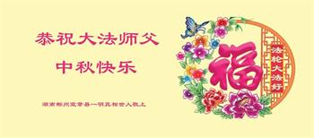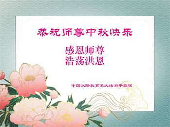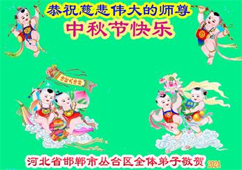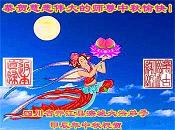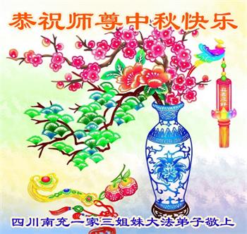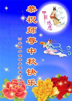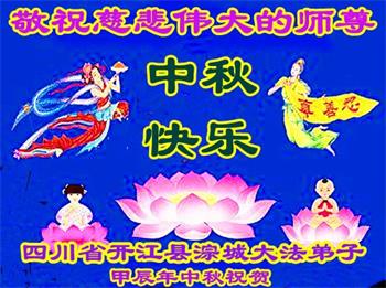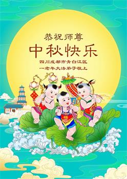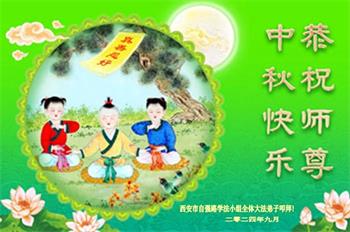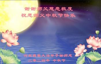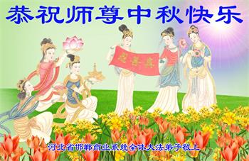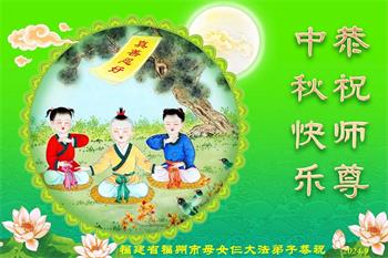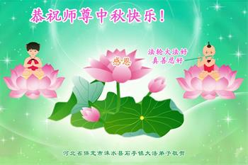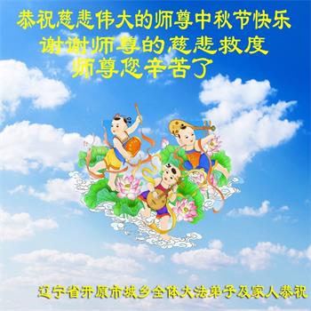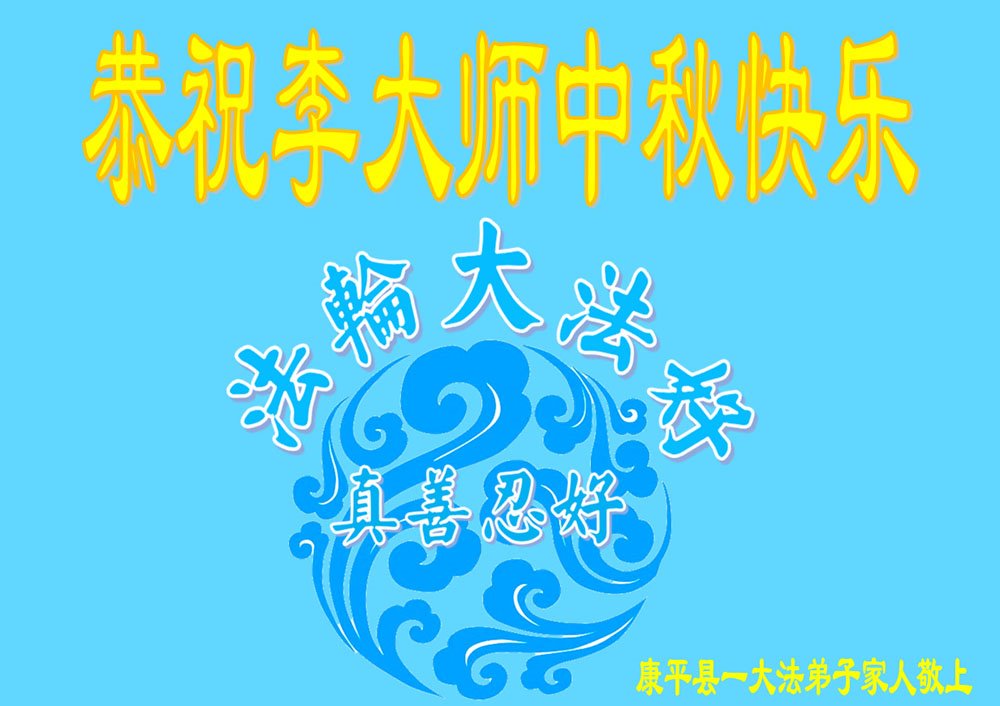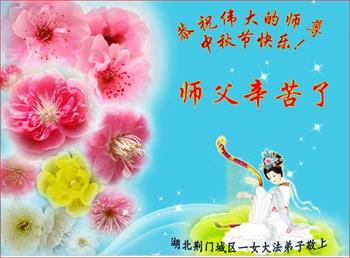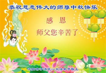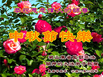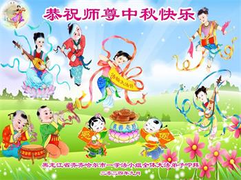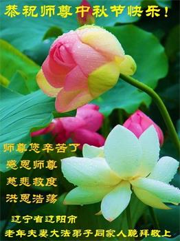 以下来自北京市、天津市、上海市、黑龙江省、吉林省长春市、吉林市、辽宁省沈阳市、新宾县、鞍山市、内蒙古自治区、宁夏回族自治区、山东省菏泽市、河北省石家庄市、河南省许昌市、三门峡市、湖北省武汉市、咸宁市、江苏省连云港市、浙江省、四川省自贡市、云南省等地的被非法关押大法弟子,以及被非法关押在黑龙江省泰来监狱、呼兰监狱、河南省新乡监狱、江苏省苏州监狱、云南省昆明监狱的大法弟子托亲友们发来敬献给慈悲伟大的师父的中秋贺词贺卡。