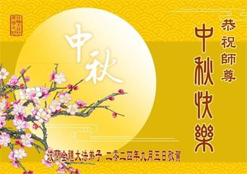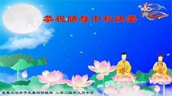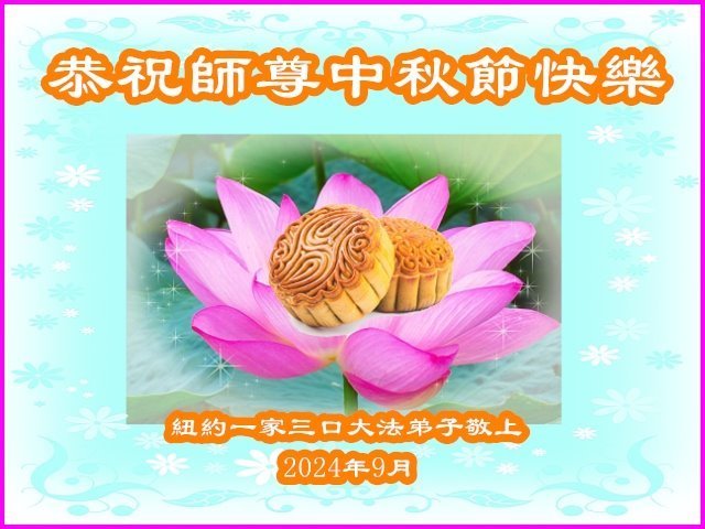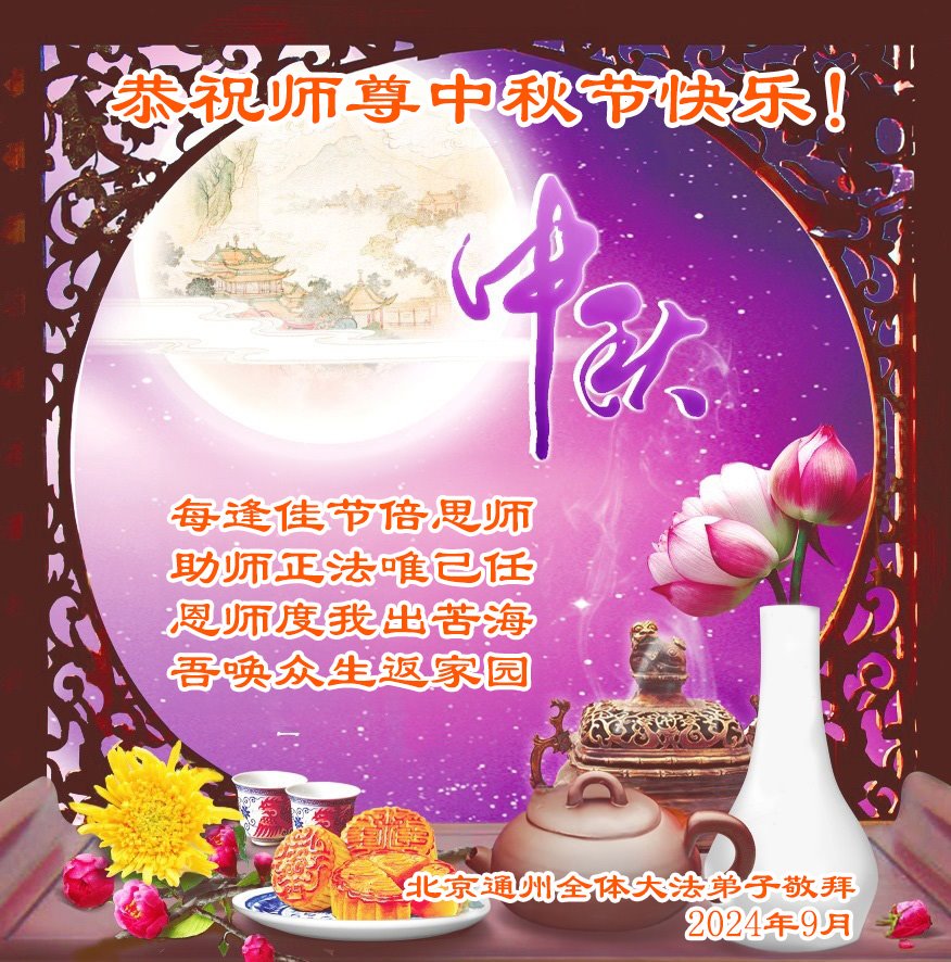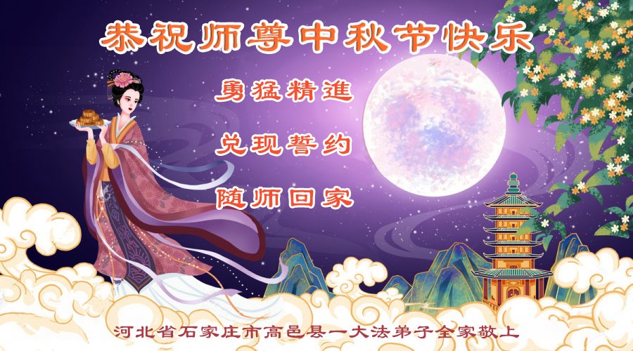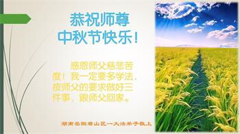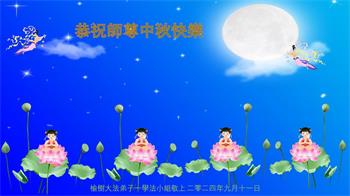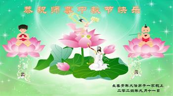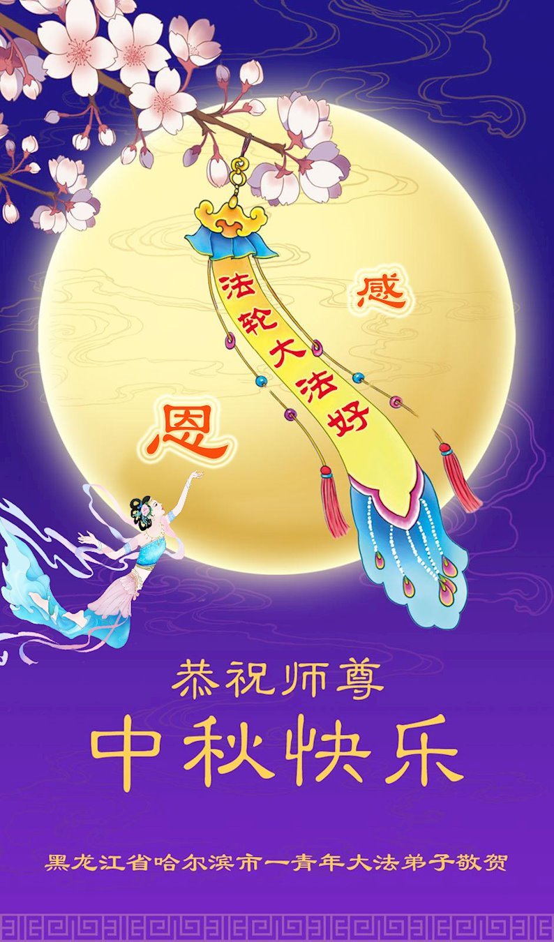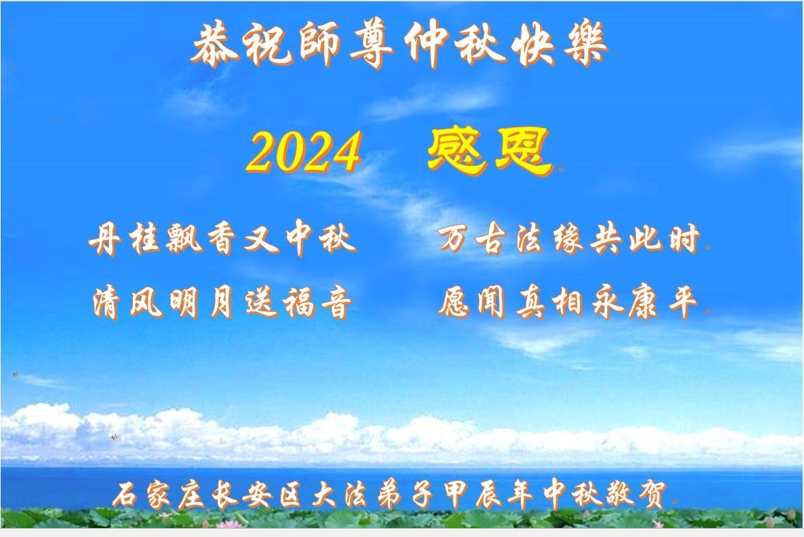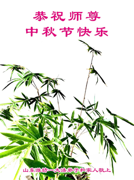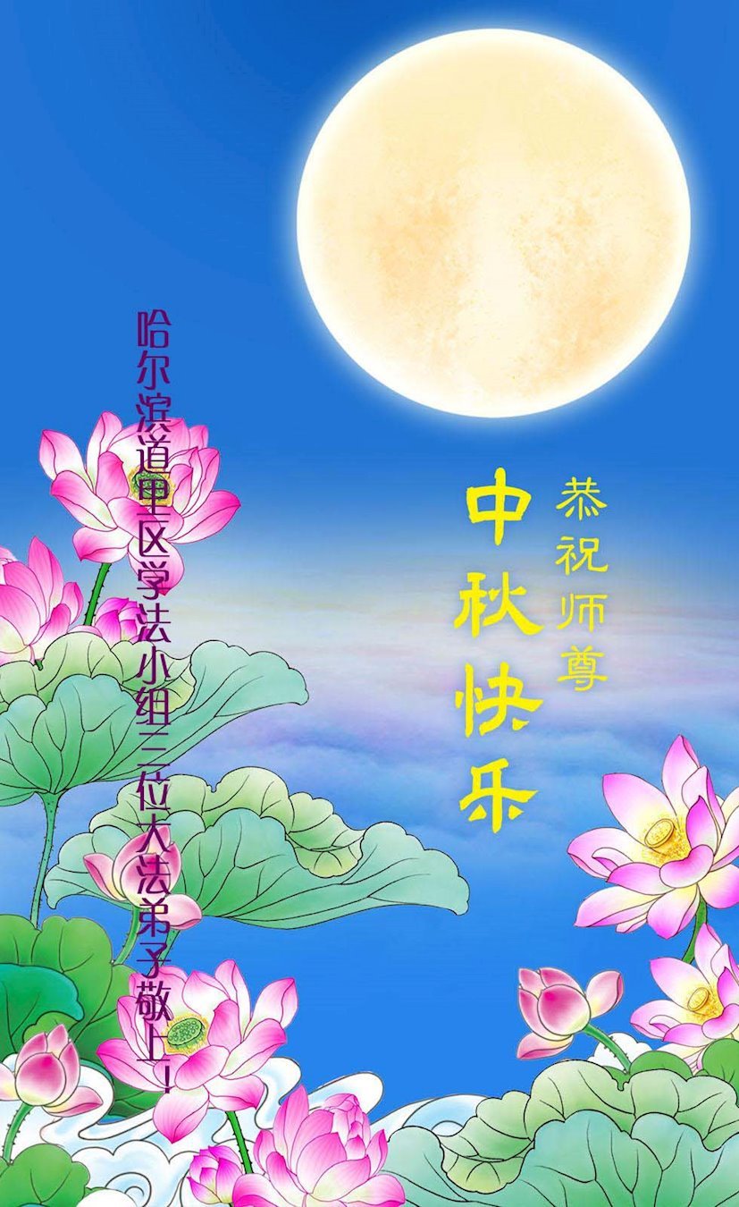 中秋节是合家团圆的日子,我们虽无法与家人团聚,心却是连在一起的。感谢师尊对我们修炼的加持!弟子坚定走正修炼的路。
