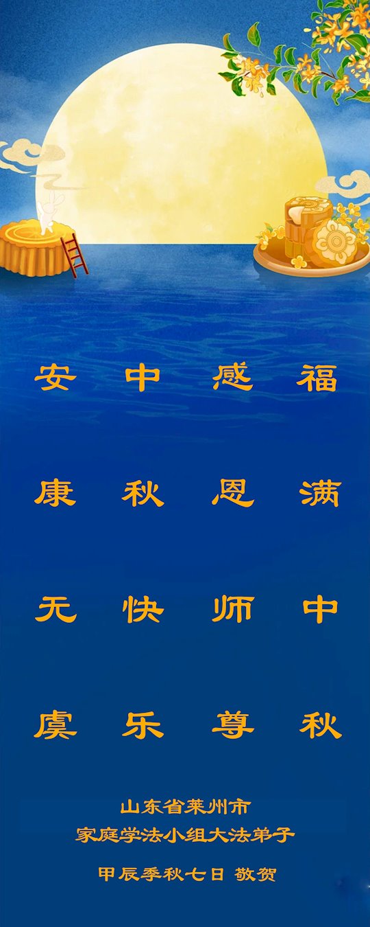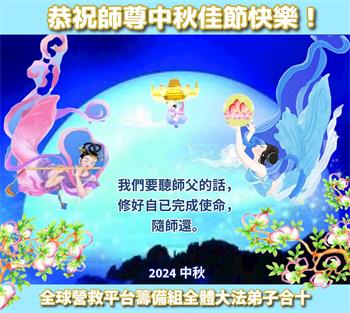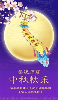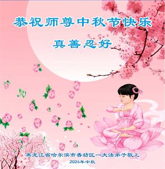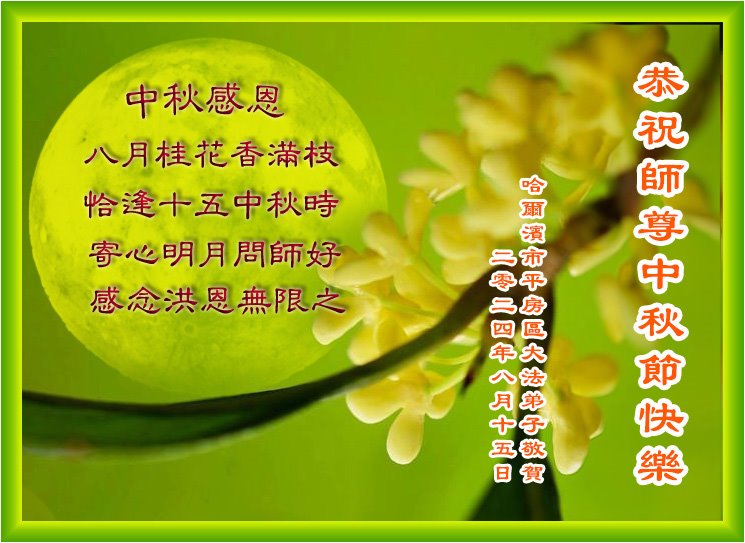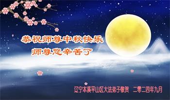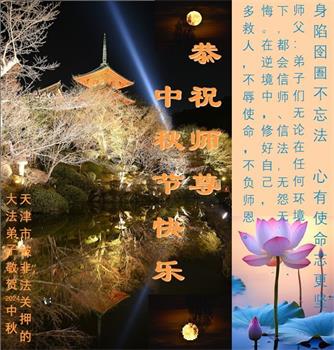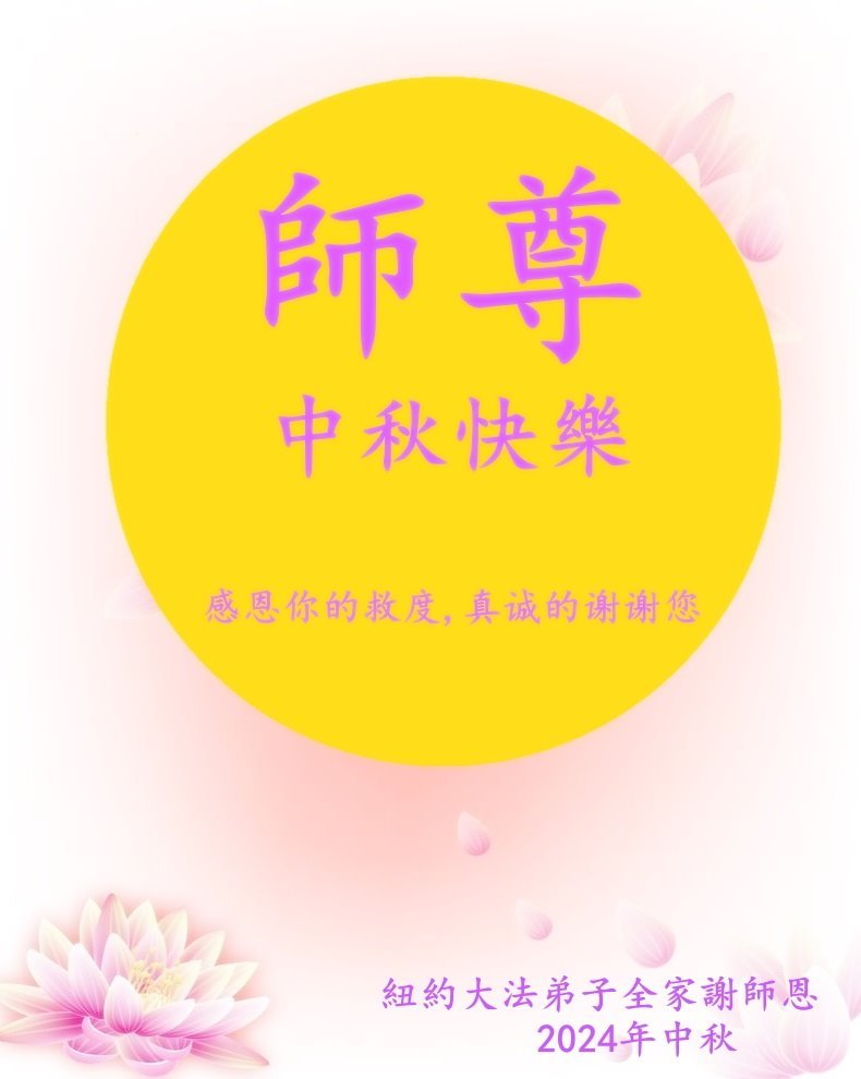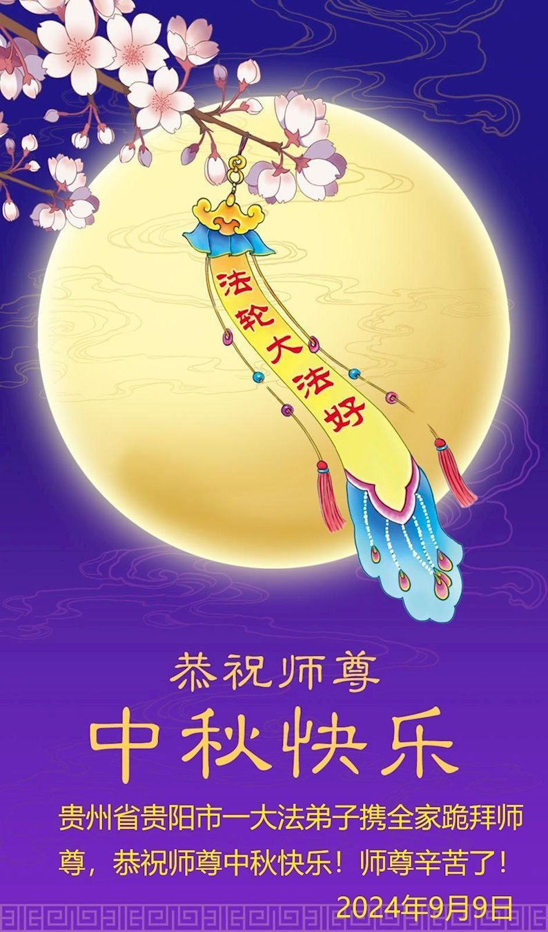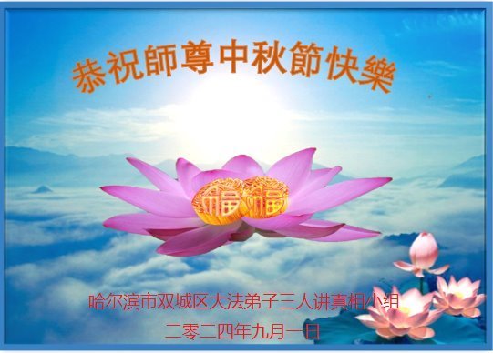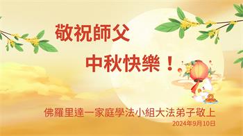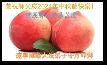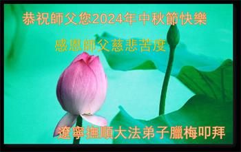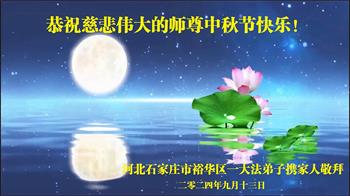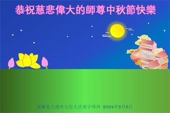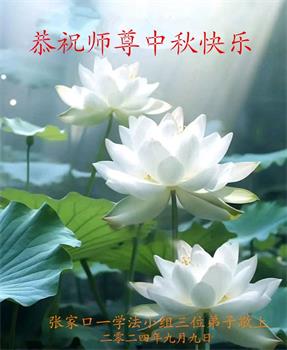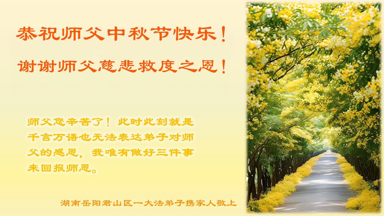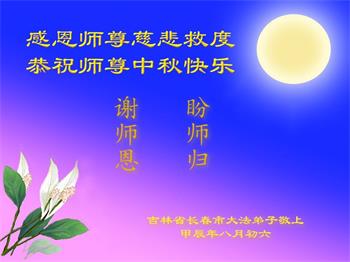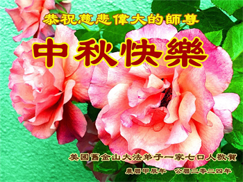 中秋节是合家团圆的日子,我们虽无法与家人团聚,心却是连在一起的。感谢师尊对我们修炼的加持!弟子坚定走正修炼的路。