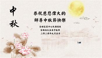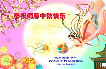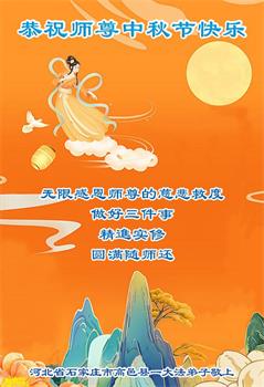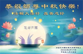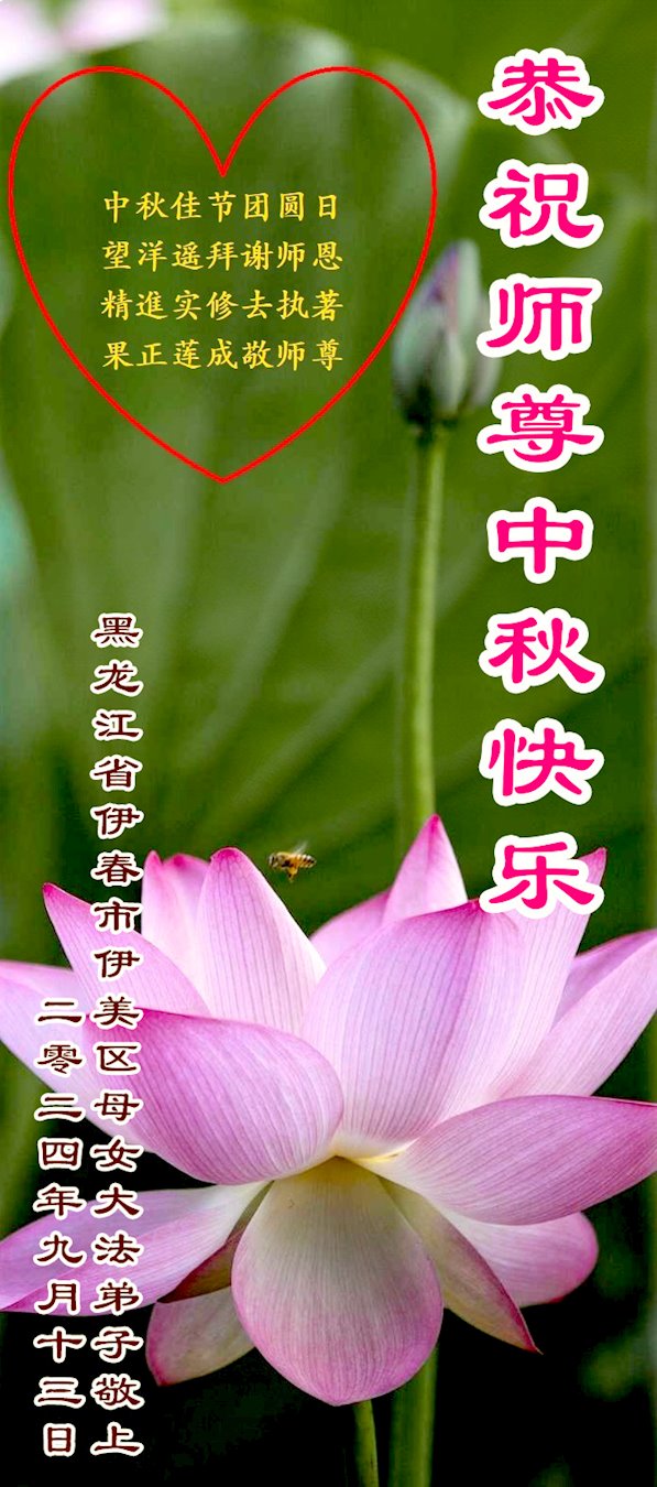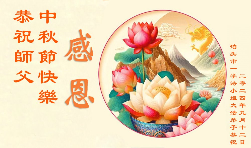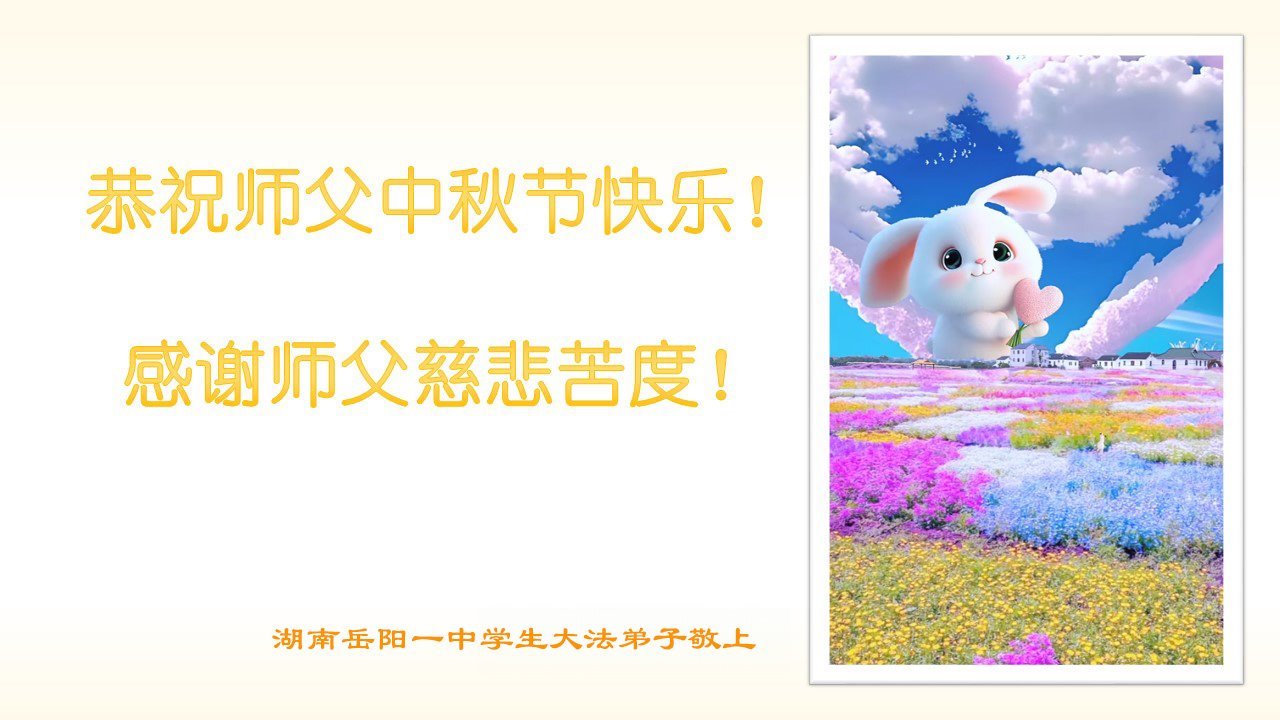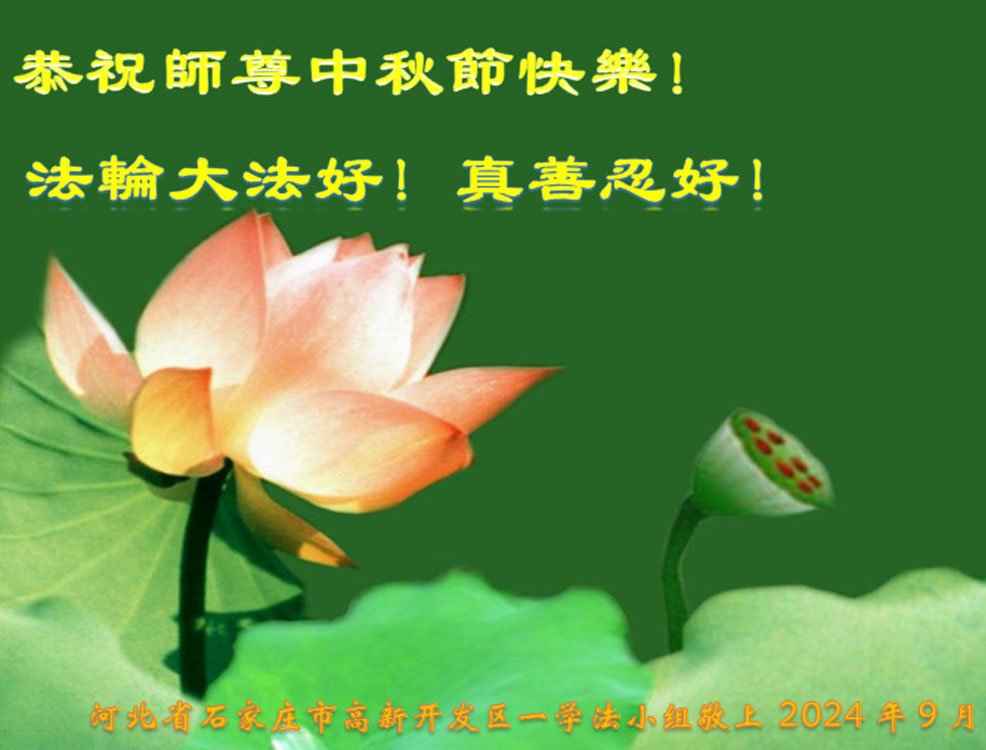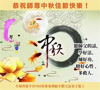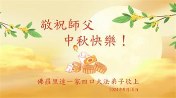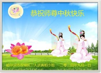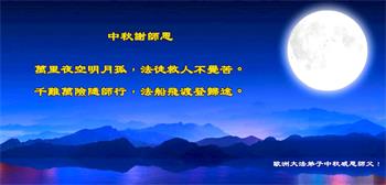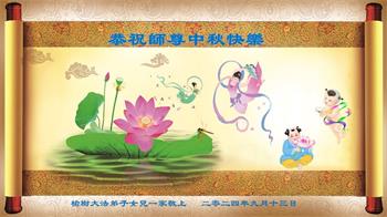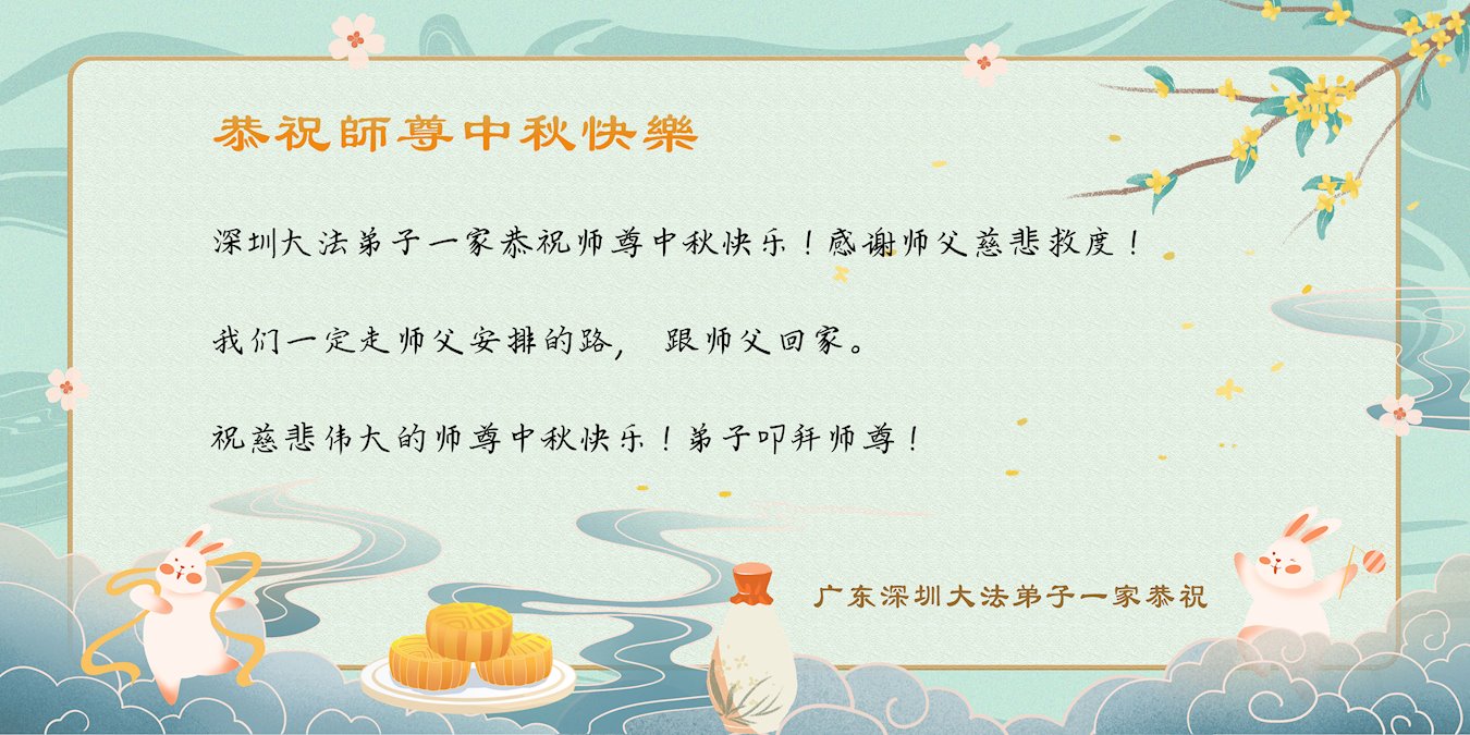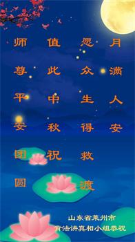 中秋节是合家团圆的日子,我们虽无法与家人团聚,心却是连在一起的。感谢师尊对我们修炼的加持!弟子坚定走正修炼的路。