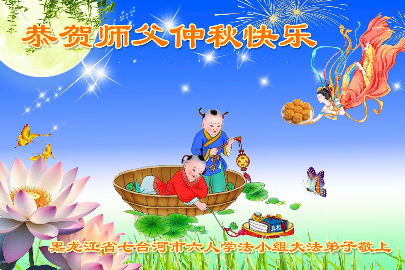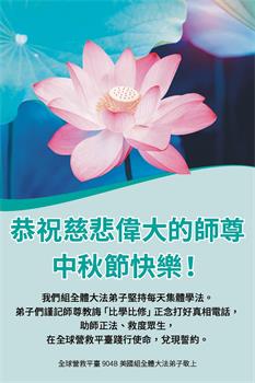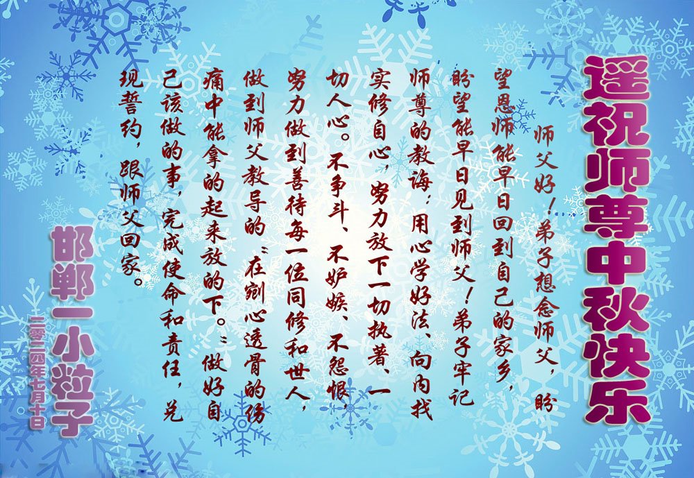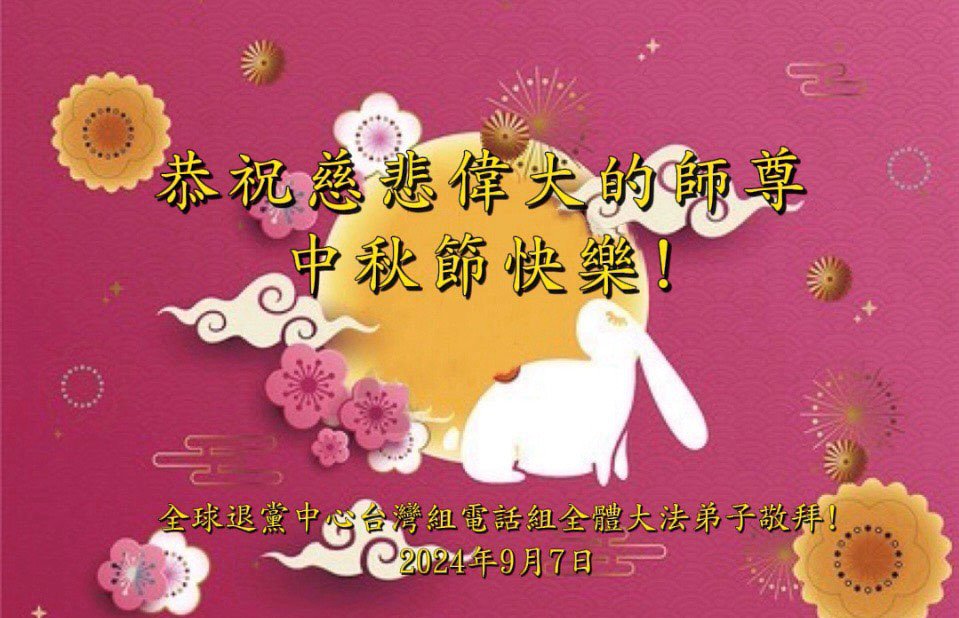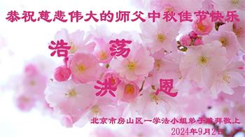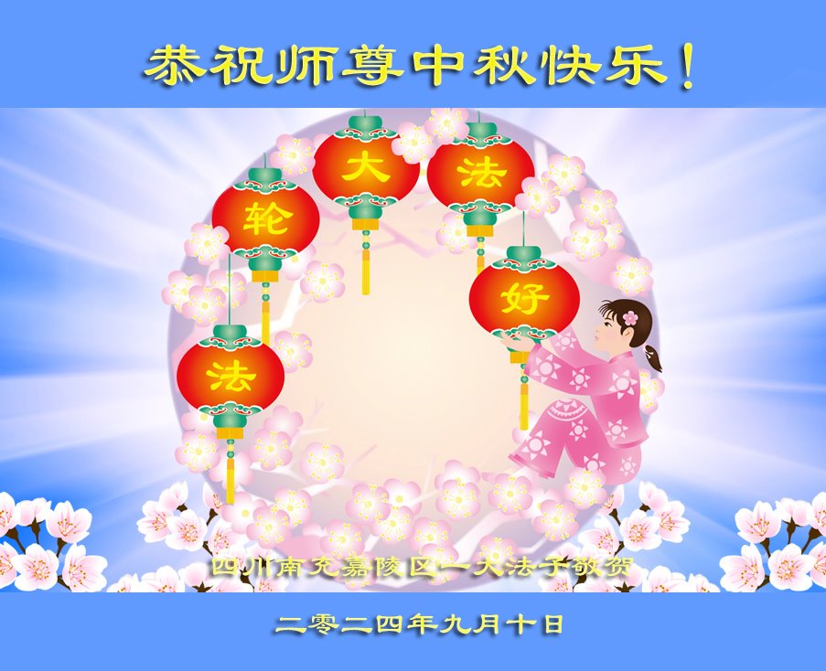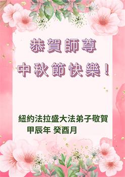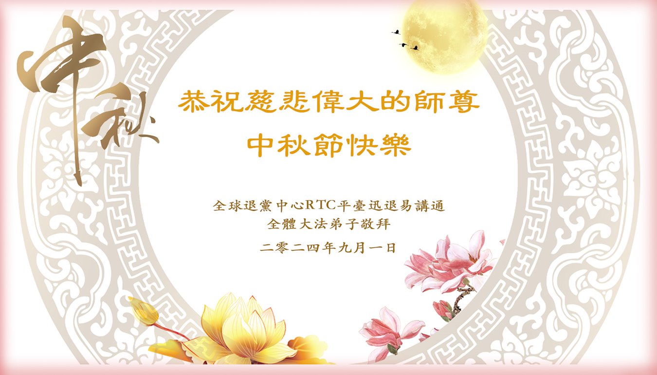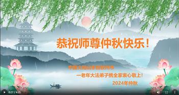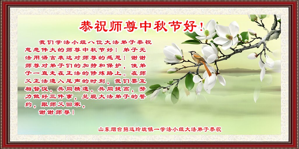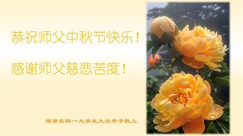 中秋节是合家团圆的日子,我们虽无法与家人团聚,心却是连在一起的。感谢师尊对我们修炼的加持!弟子坚定走正修炼的路。