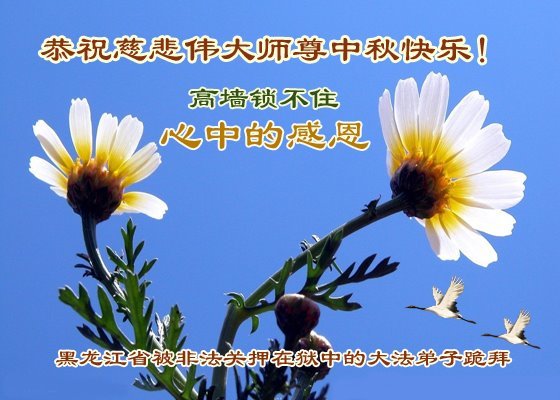 代为转达几位被非法关押大法弟子的心声:为了不辱使命,唤醒众生,凭着对师尊的信念,脑海中有大法,我们走在助师正法、救度众生的修炼路上!在中秋节来临之际,禁锢的高墙也阻挡不了我们对师尊的问候、想念、祝贺!