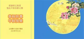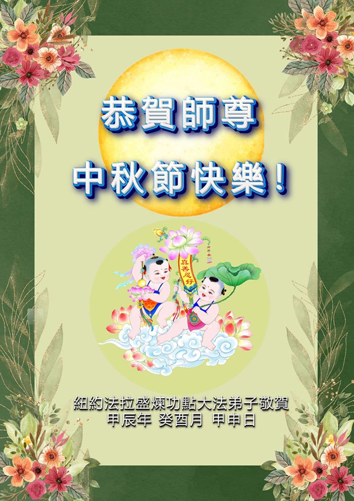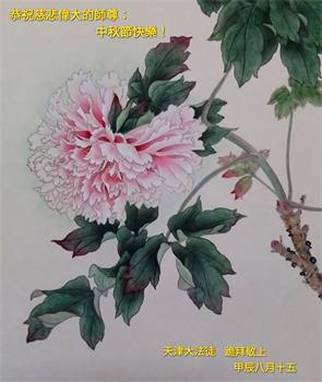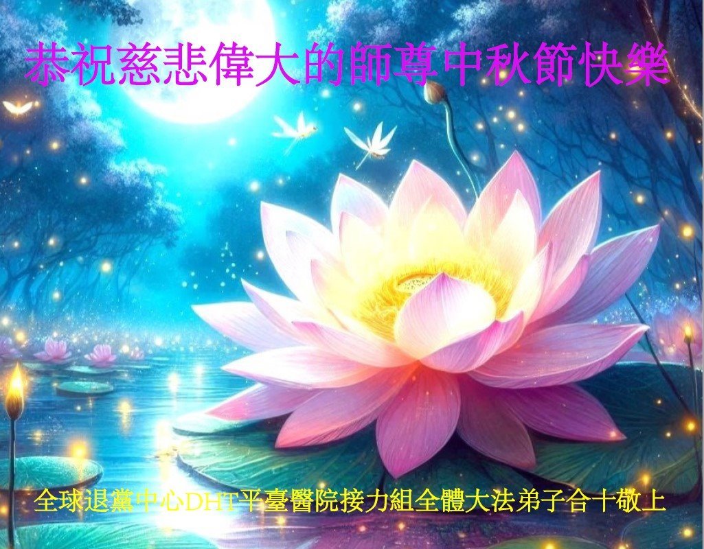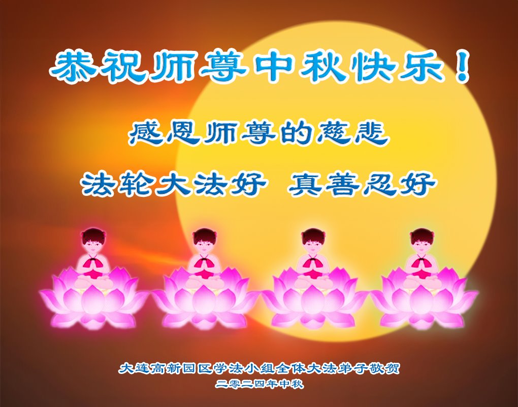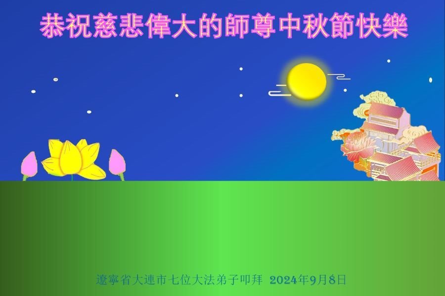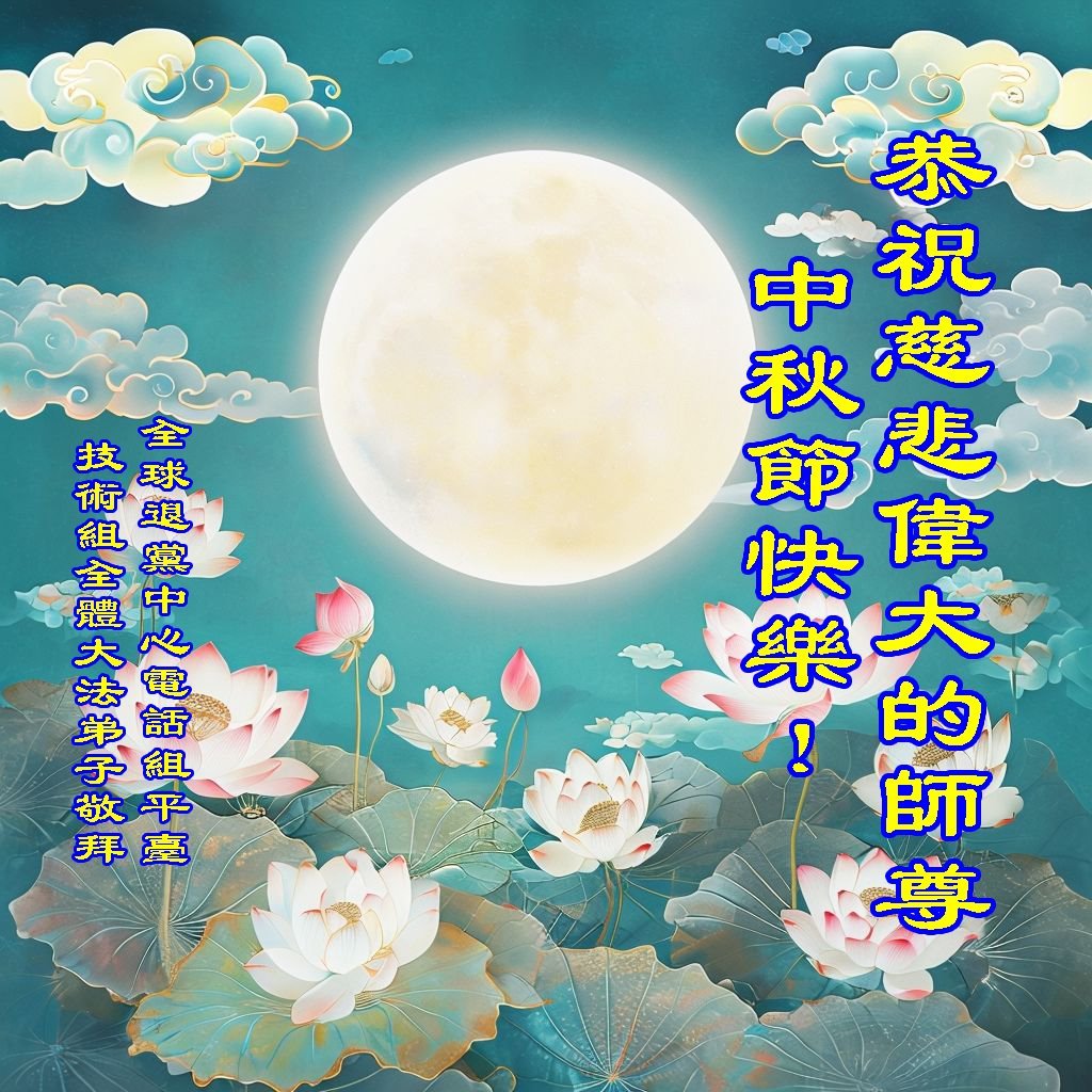 弟子恭祝师尊中秋佳节快乐!我们虽然正处在魔难之中,但我们信师信法的心坚如磐石。我们一定向内找放下人心、修去执著,正念解体邪恶。讲真相救度公检法人员,做我们该做好的事。实修自己,兑现誓约,跟师父回归自己真正的家园。