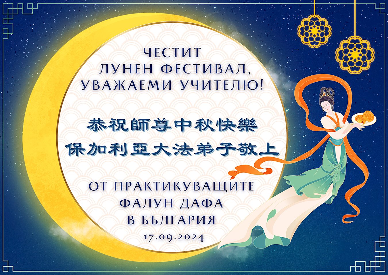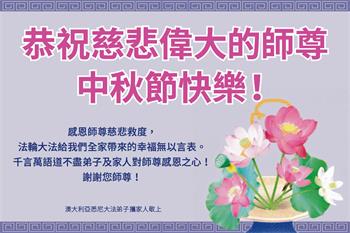 尊敬的李洪志师父:值此中秋节,在海外生活的塞尔维亚法轮大法修炼者恭祝师尊快乐!