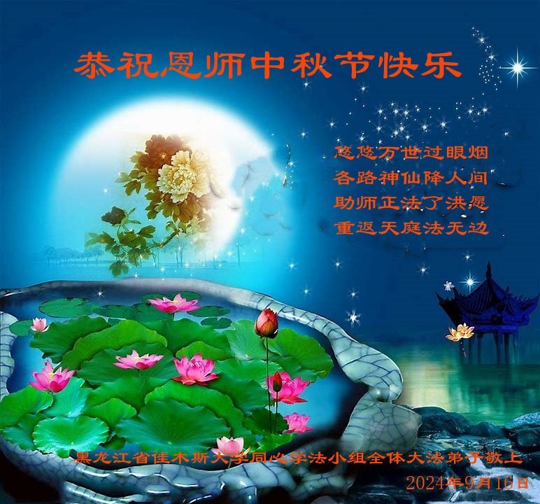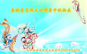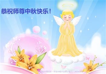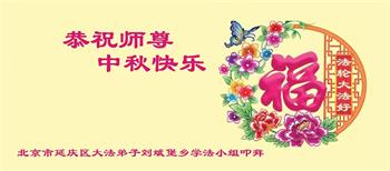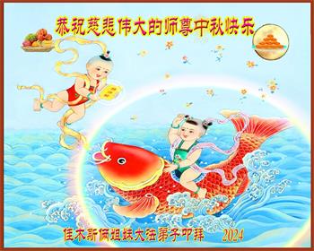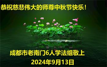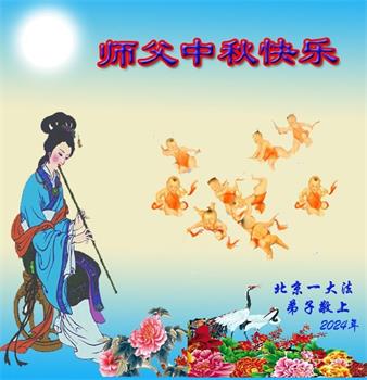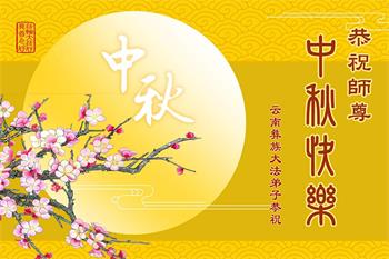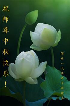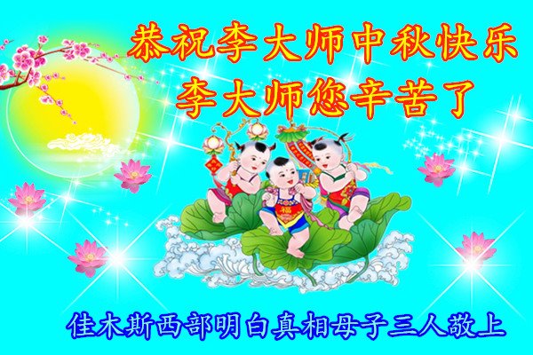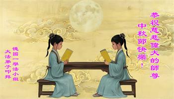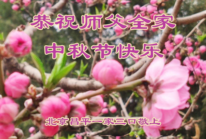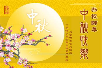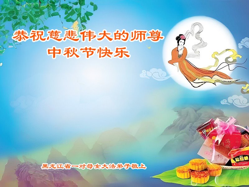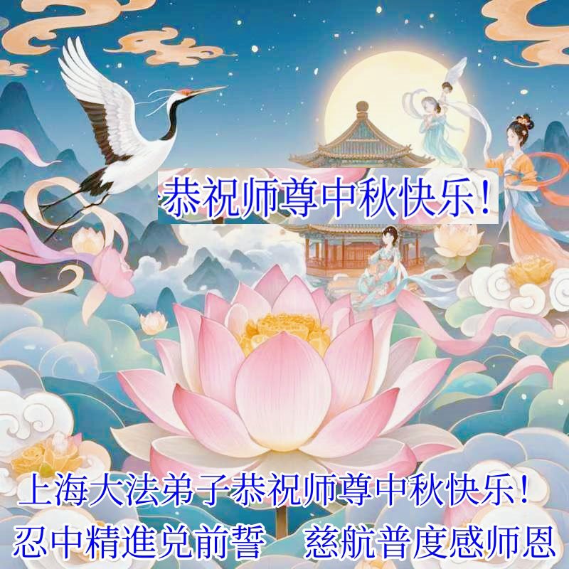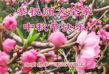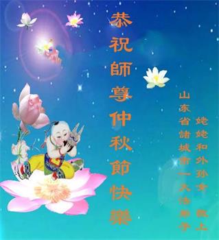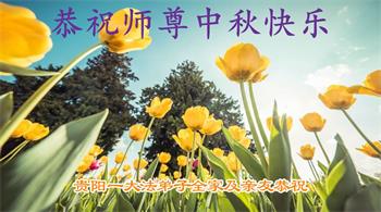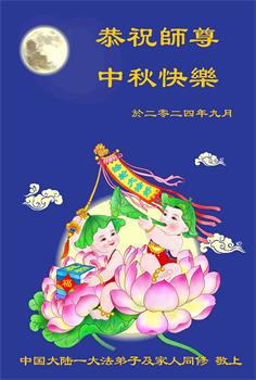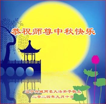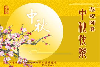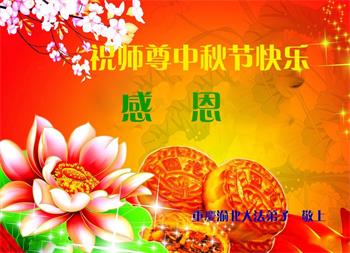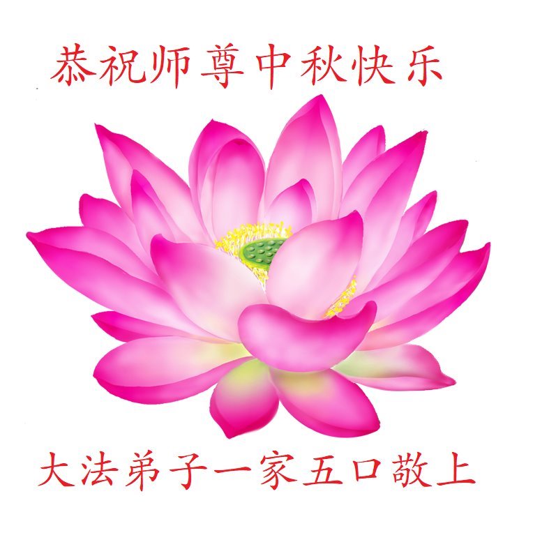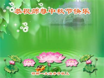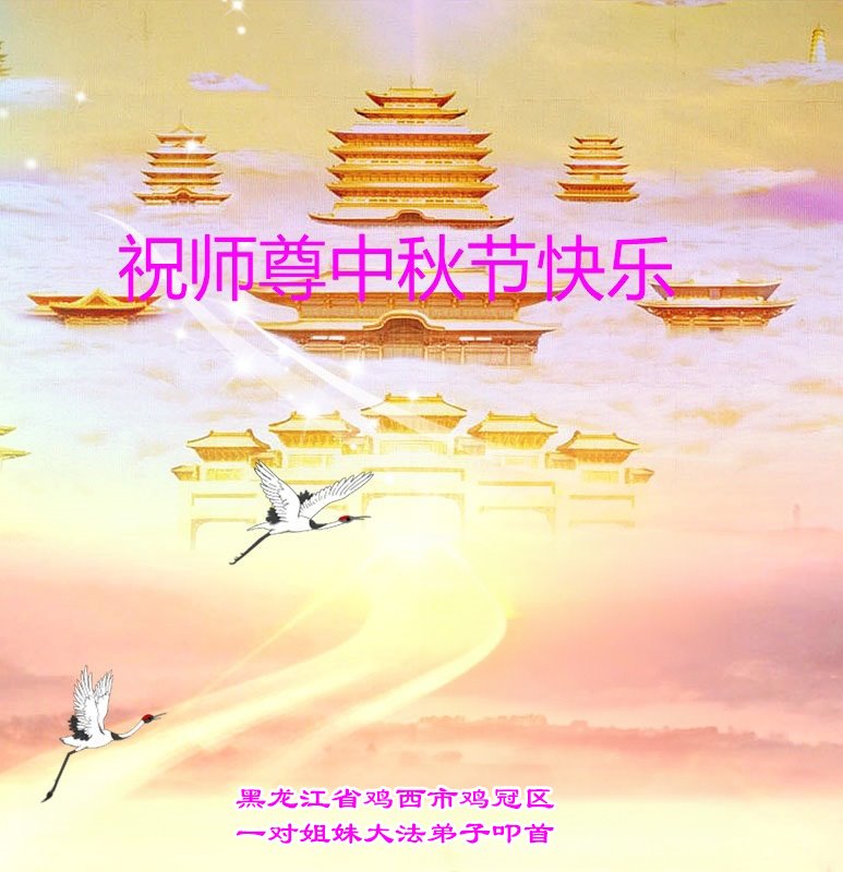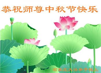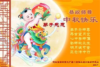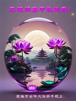 慈悲伟大的师尊好:我们在大陆都曾被邪恶残酷迫害,但我们不仅无悔,且深知能做师父的弟子是我们最大的荣耀与幸福。随师正法、救度众生是我们此生的意义与重任。弟子一定尽心、尽力去做,不负师尊的期望,不负众生的盼望。遥祝慈悲伟大的师尊中秋快乐!盼望师尊早日回大陆。