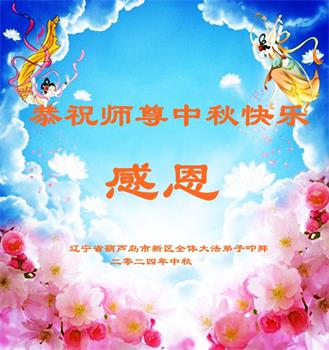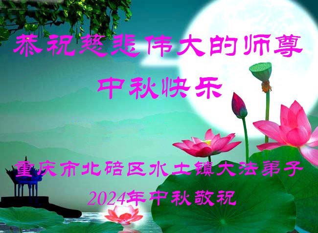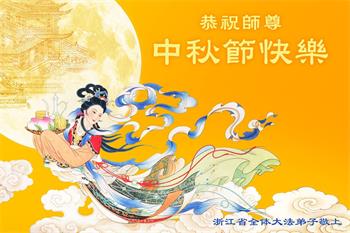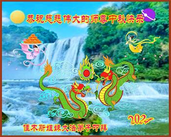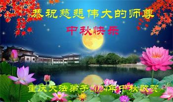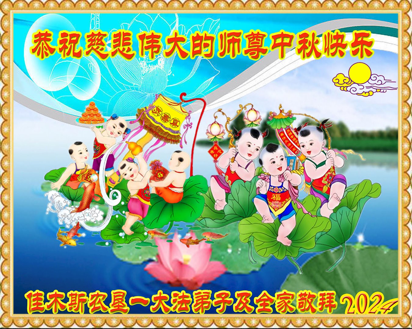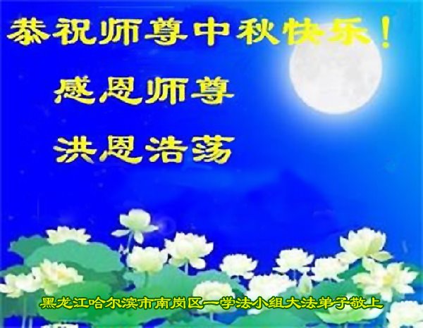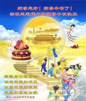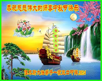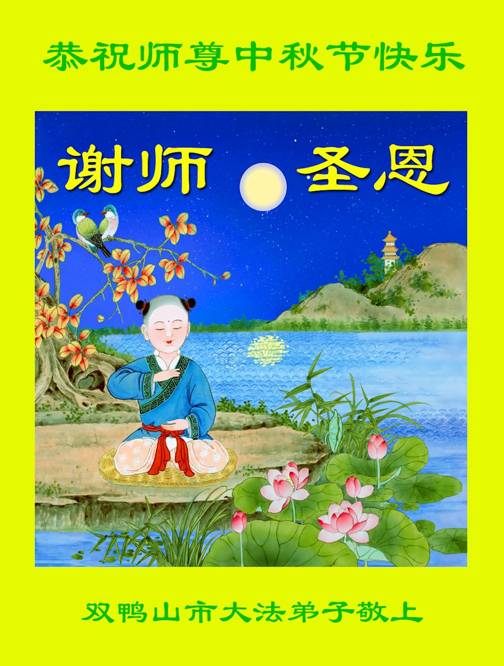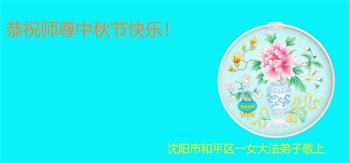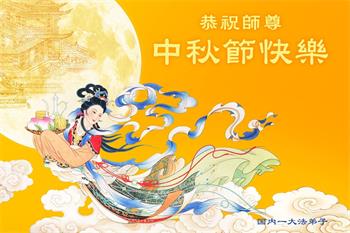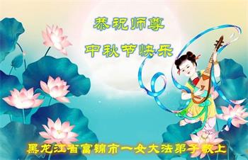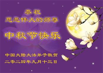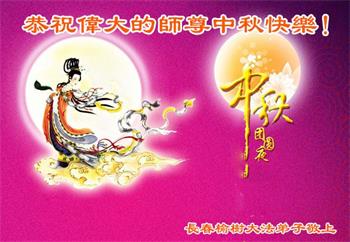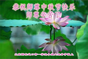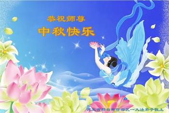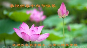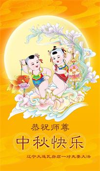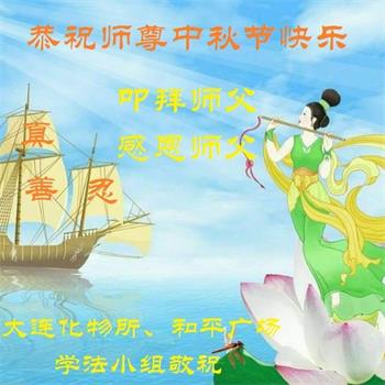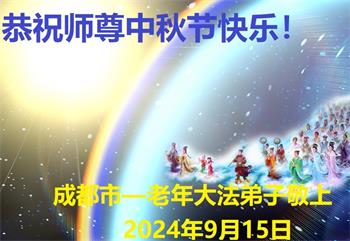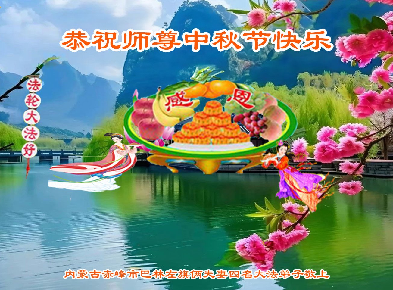 慈悲伟大的师尊好:我们在大陆都曾被邪恶残酷迫害,但我们不仅无悔,且深知能做师父的弟子是我们最大的荣耀与幸福。随师正法、救度众生是我们此生的意义与重任。弟子一定尽心、尽力去做,不负师尊的期望,不负众生的盼望。遥祝慈悲伟大的师尊中秋快乐!盼望师尊早日回大陆。