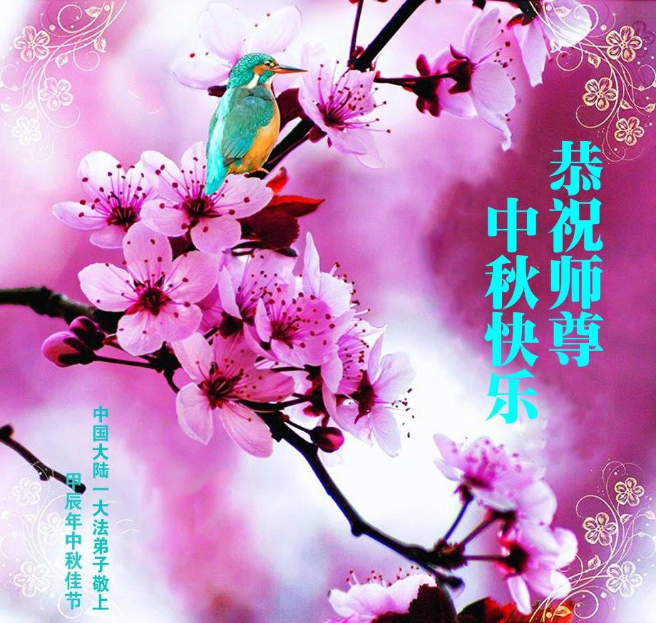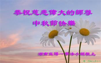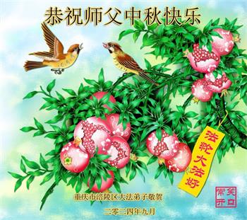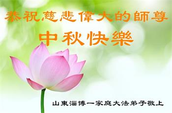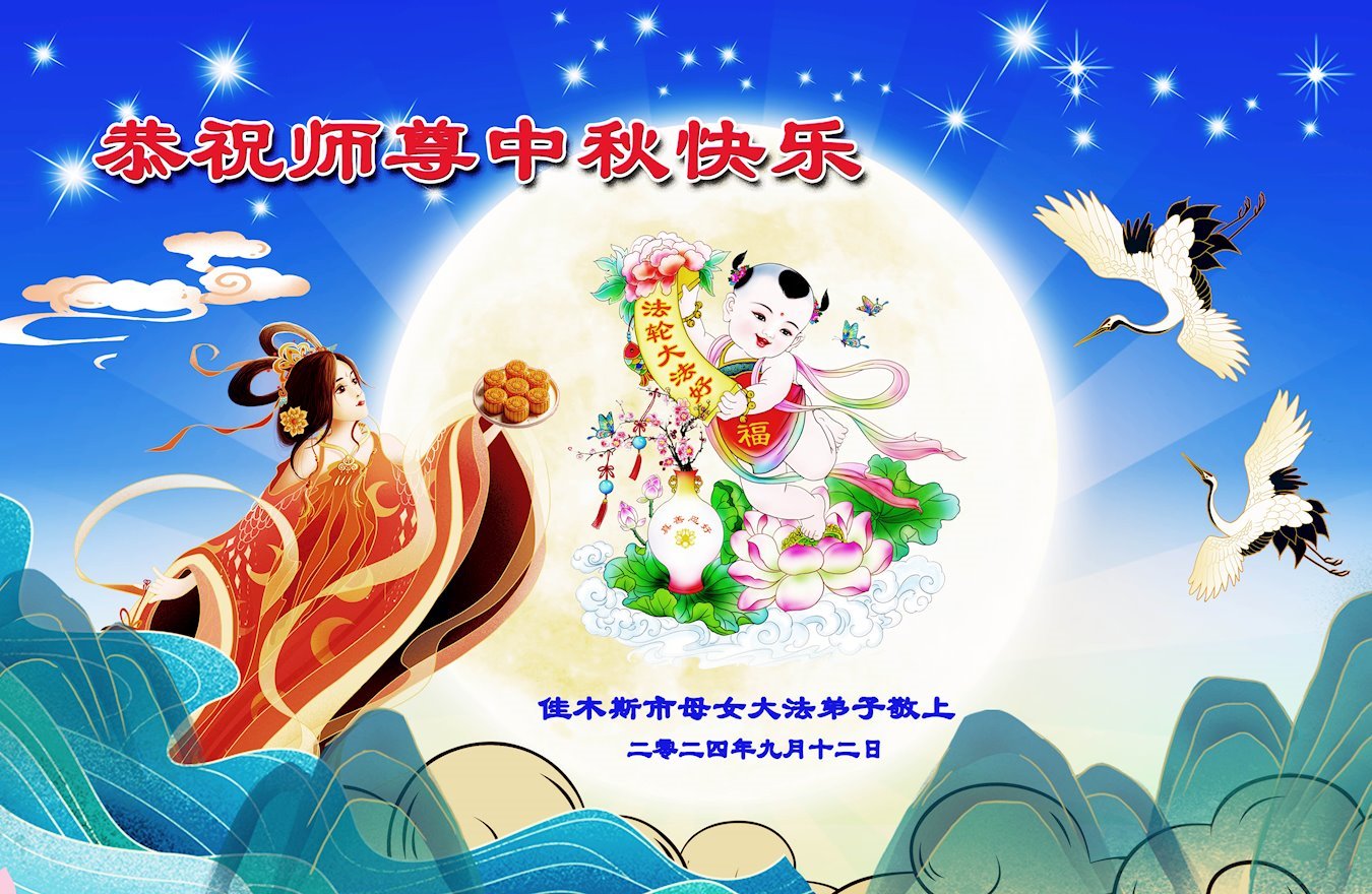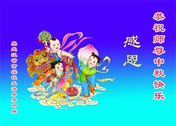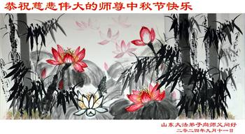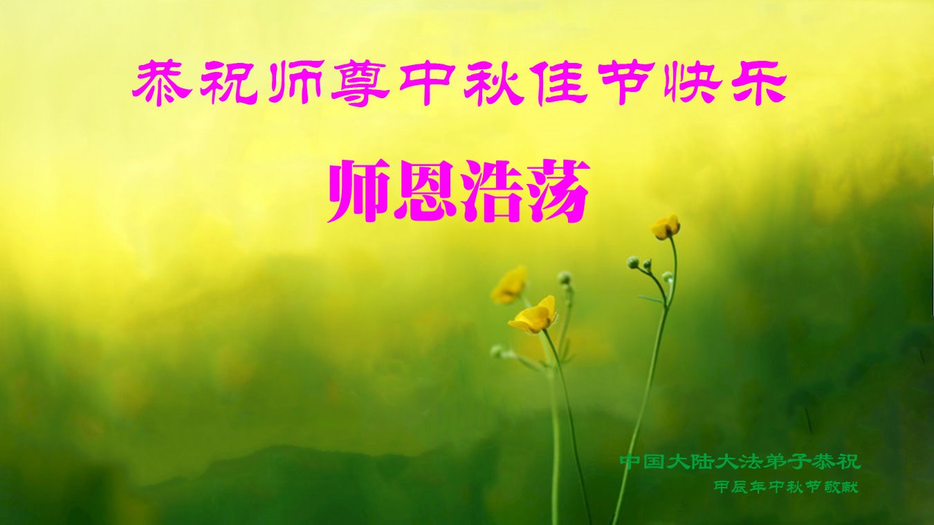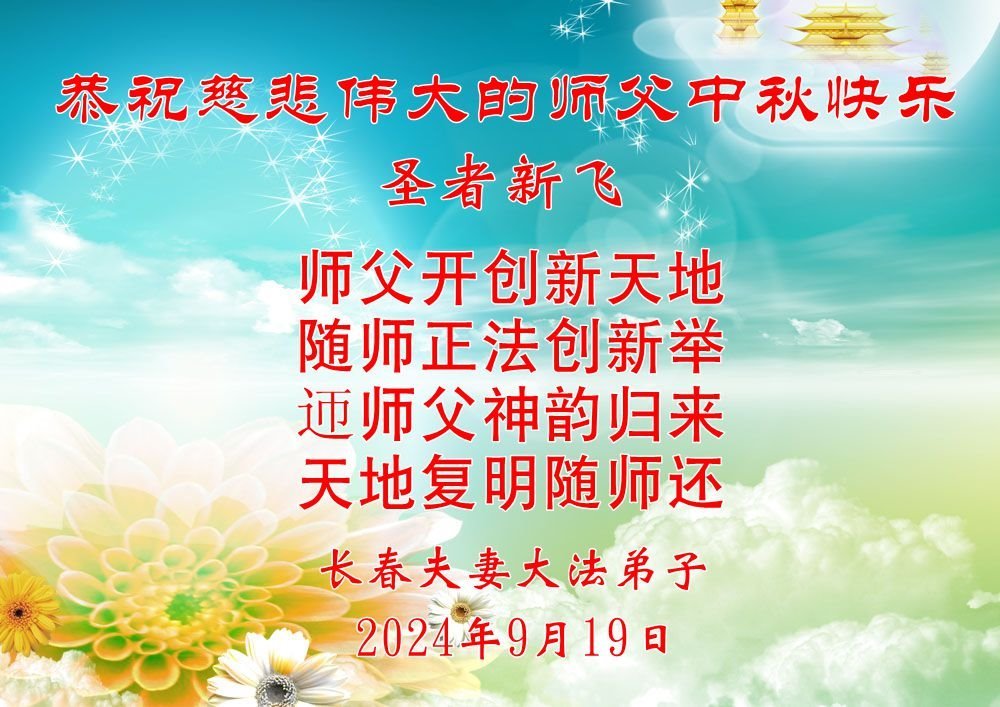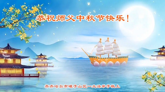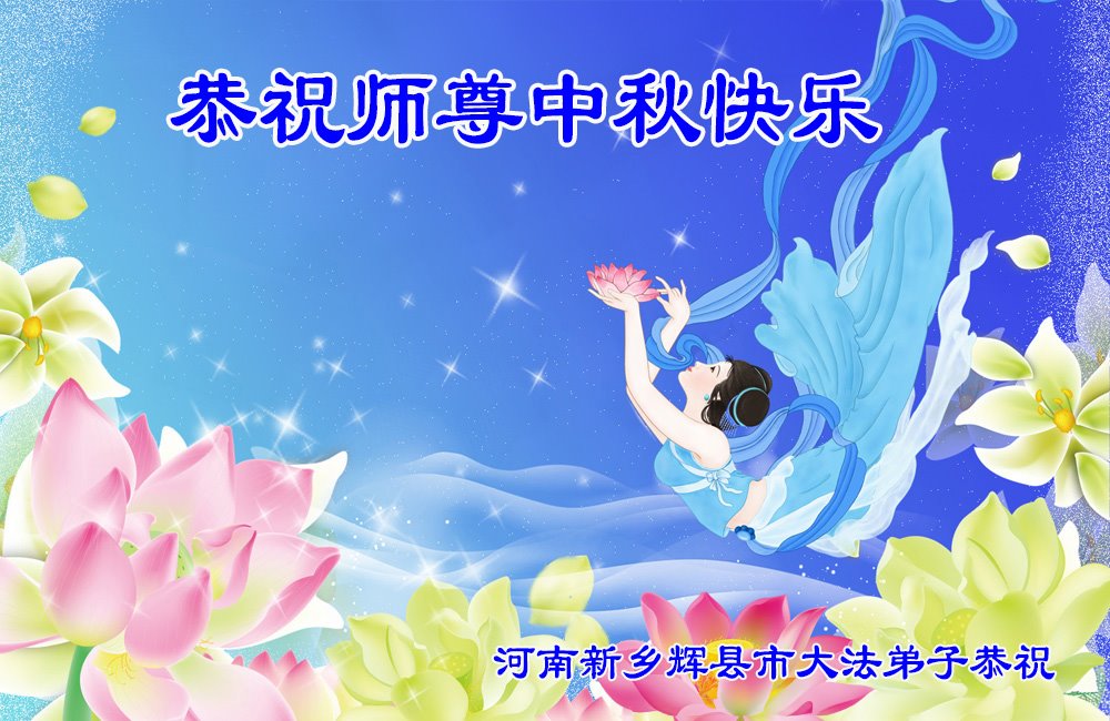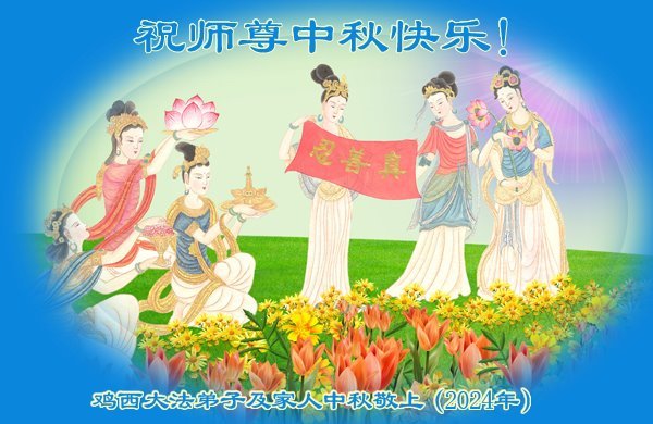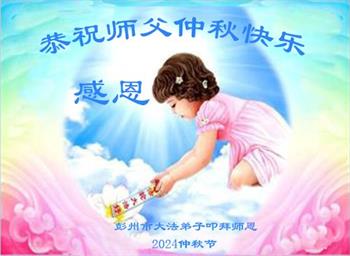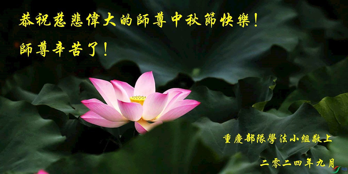 慈悲伟大的师尊好:我们在大陆都曾被邪恶残酷迫害,但我们不仅无悔,且深知能做师父的弟子是我们最大的荣耀与幸福。随师正法、救度众生是我们此生的意义与重任。弟子一定尽心、尽力去做,不负师尊的期望,不负众生的盼望。遥祝慈悲伟大的师尊中秋快乐!盼望师尊早日回大陆。