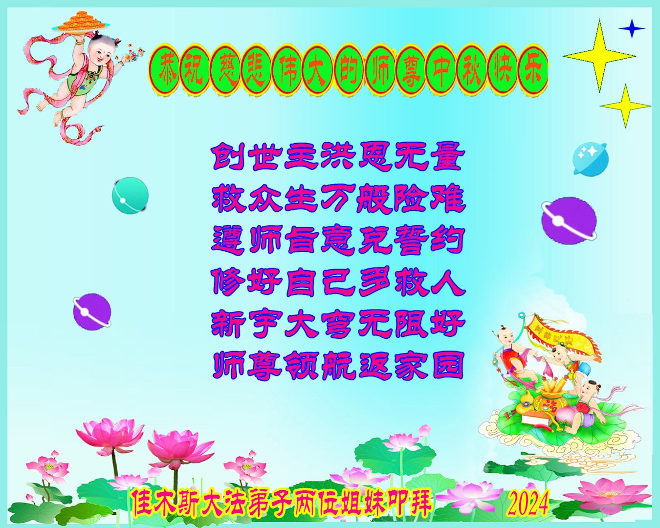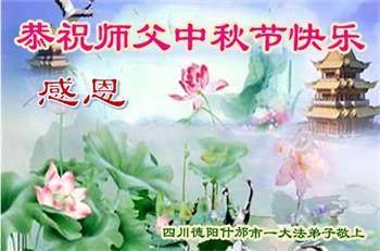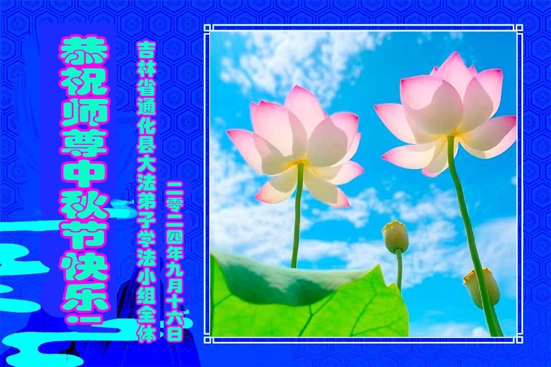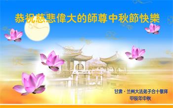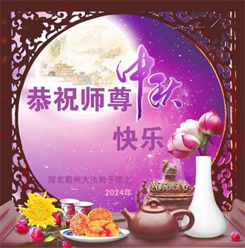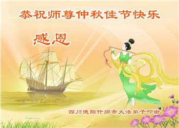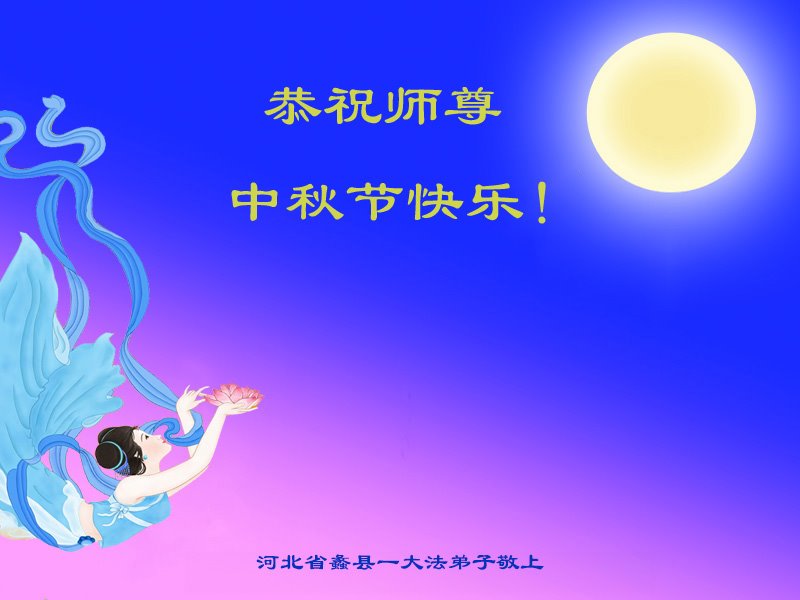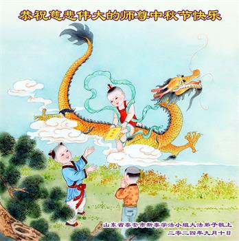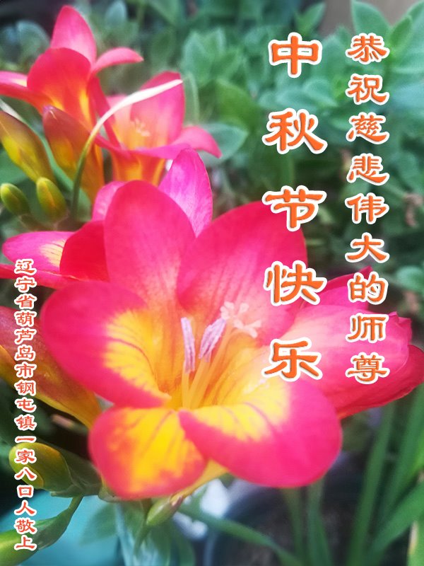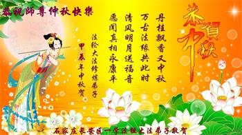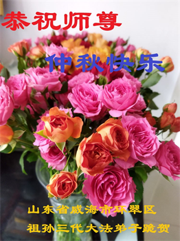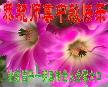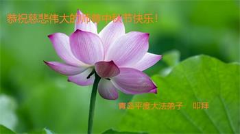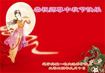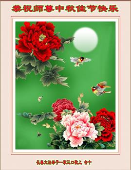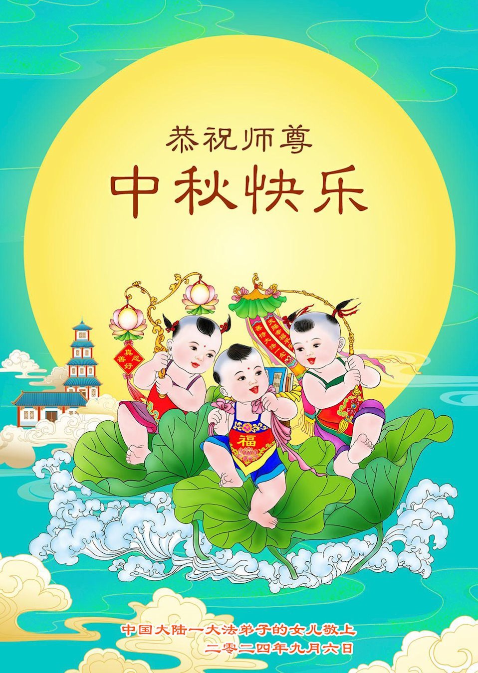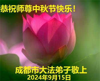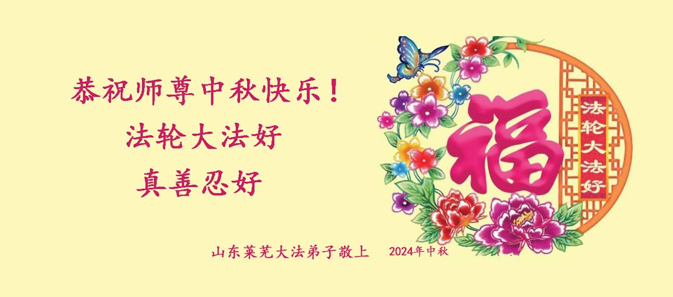 慈悲伟大的师尊好:我们在大陆都曾被邪恶残酷迫害,但我们不仅无悔,且深知能做师父的弟子是我们最大的荣耀与幸福。随师正法、救度众生是我们此生的意义与重任。弟子一定尽心、尽力去做,不负师尊的期望,不负众生的盼望。遥祝慈悲伟大的师尊中秋快乐!盼望师尊早日回大陆。