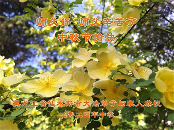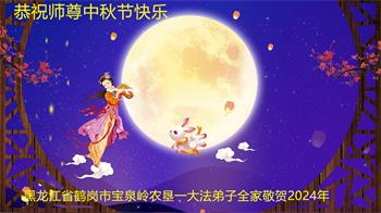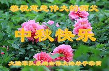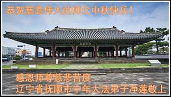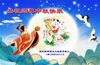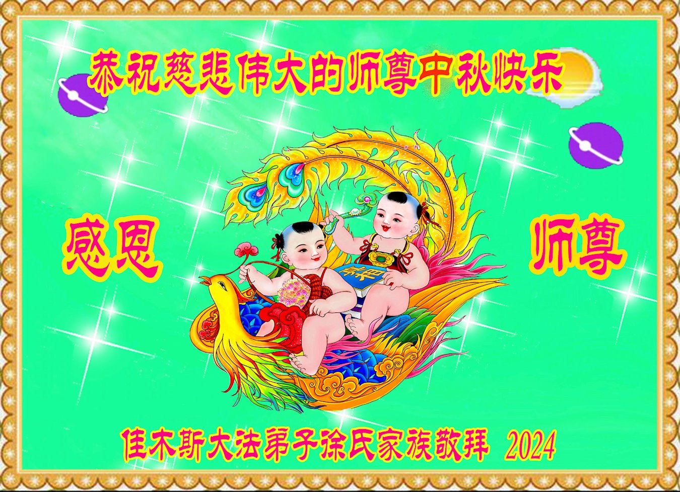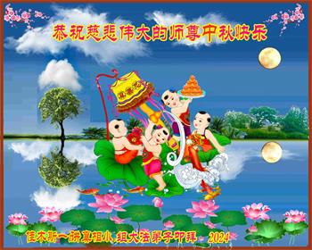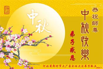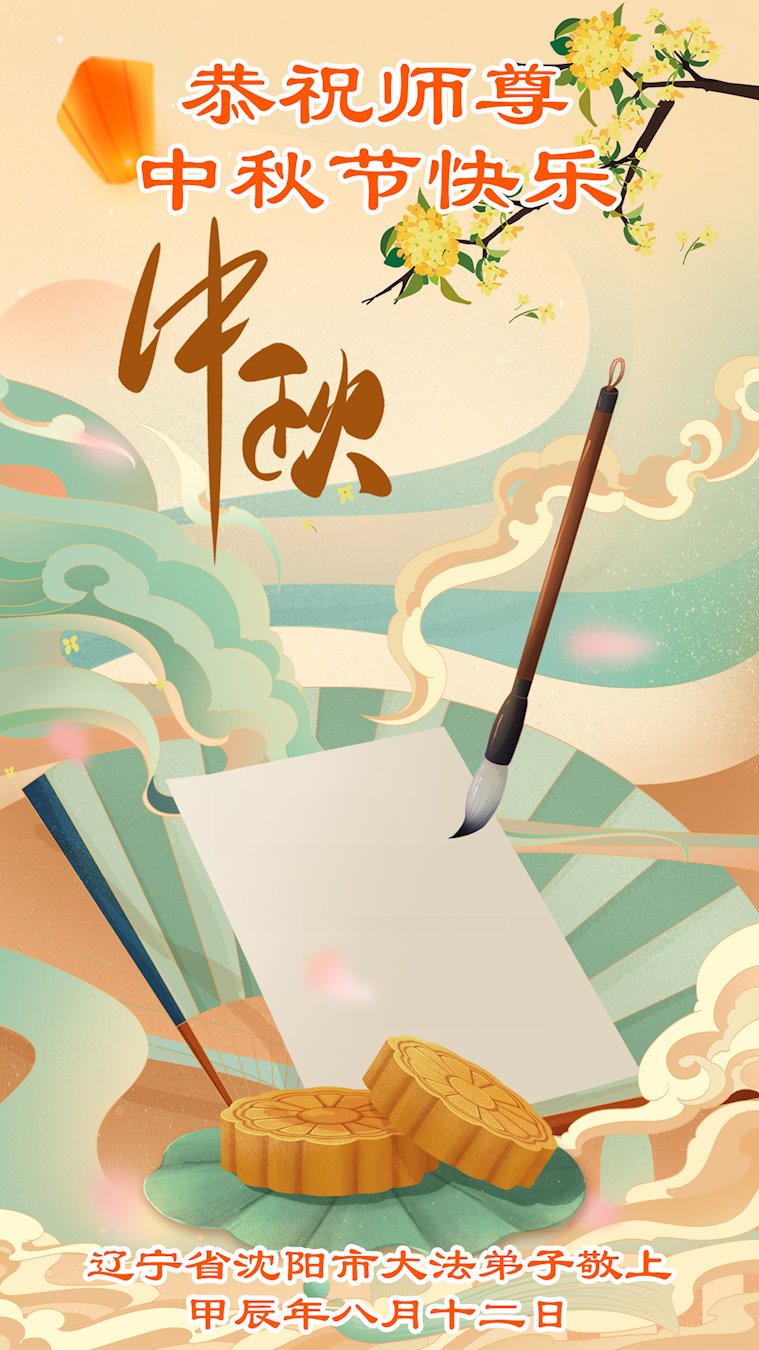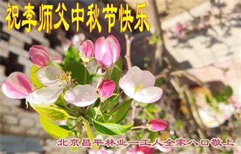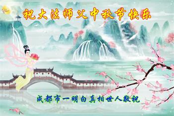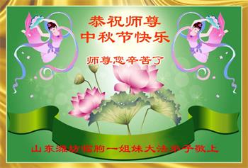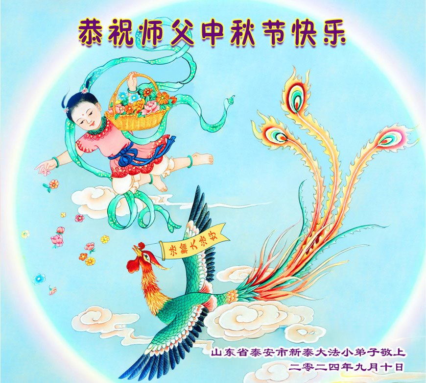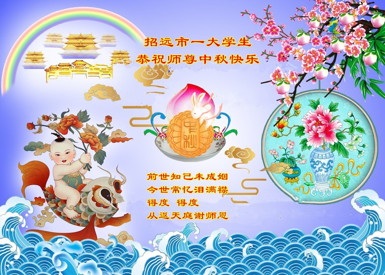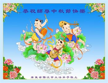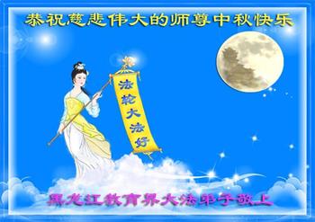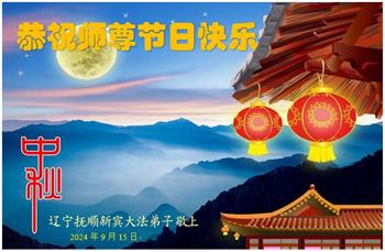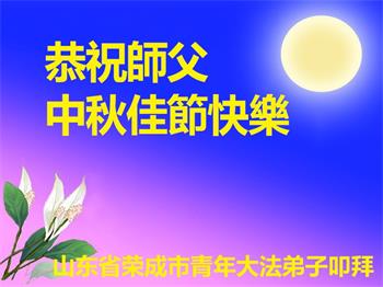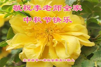 慈悲伟大的师尊好:我们在大陆都曾被邪恶残酷迫害,但我们不仅无悔,且深知能做师父的弟子是我们最大的荣耀与幸福。随师正法、救度众生是我们此生的意义与重任。弟子一定尽心、尽力去做,不负师尊的期望,不负众生的盼望。遥祝慈悲伟大的师尊中秋快乐!盼望师尊早日回大陆。