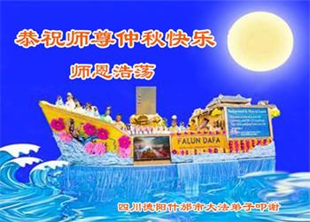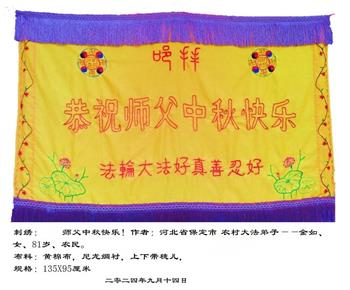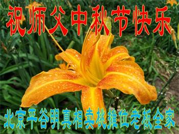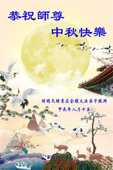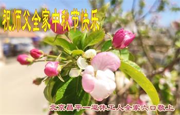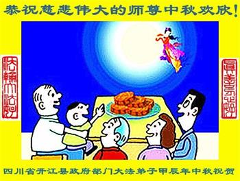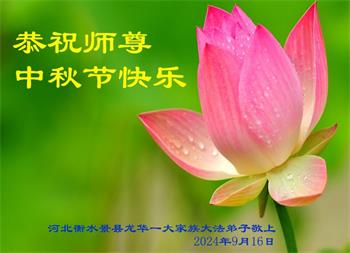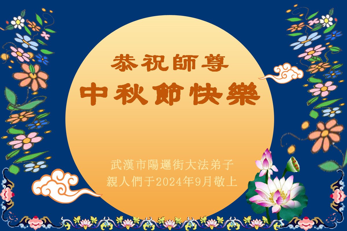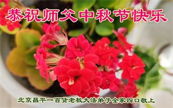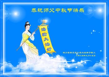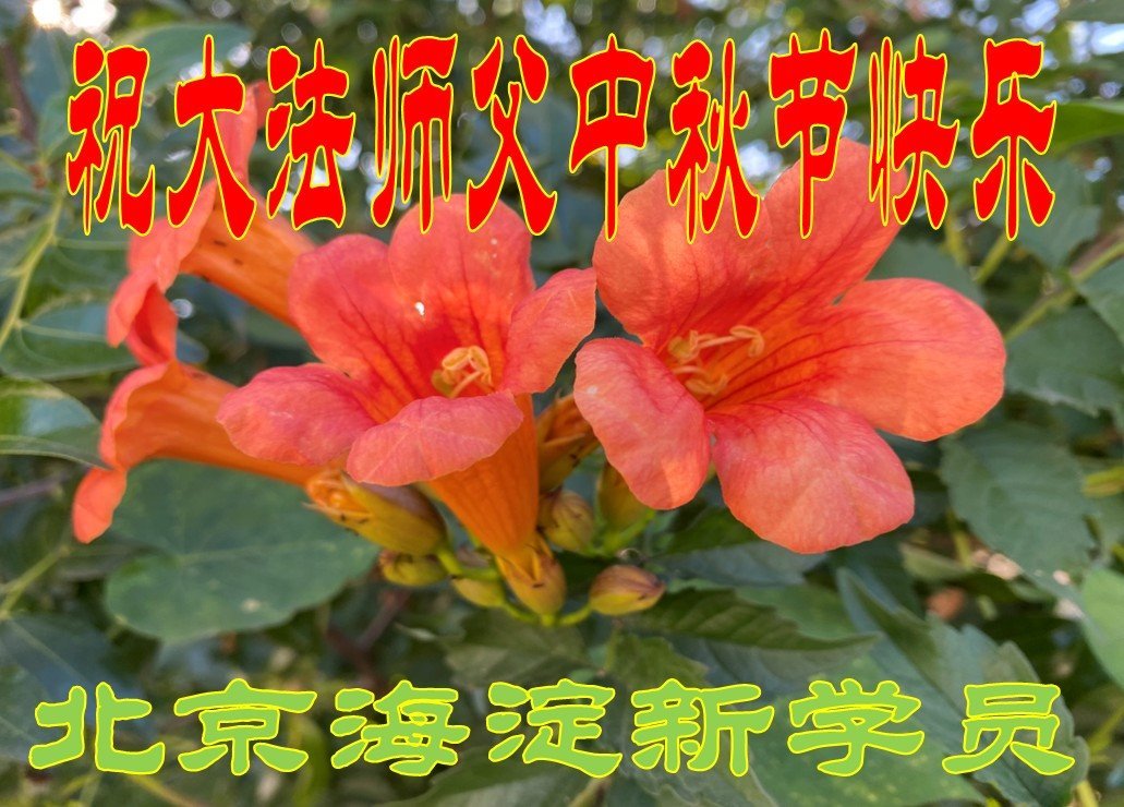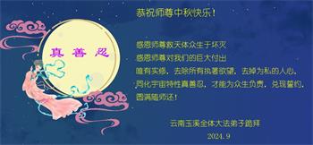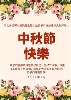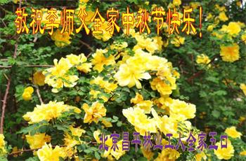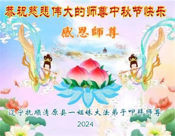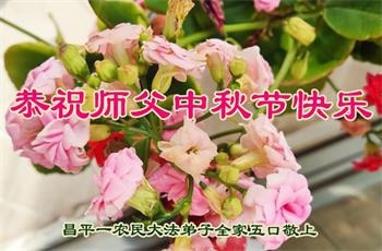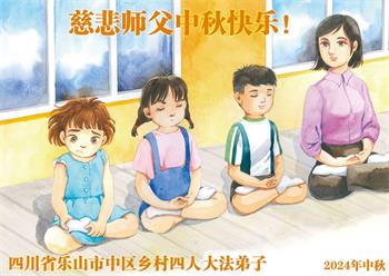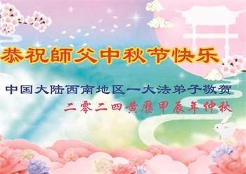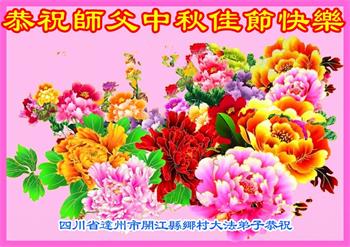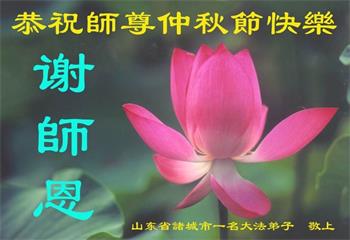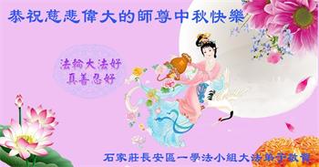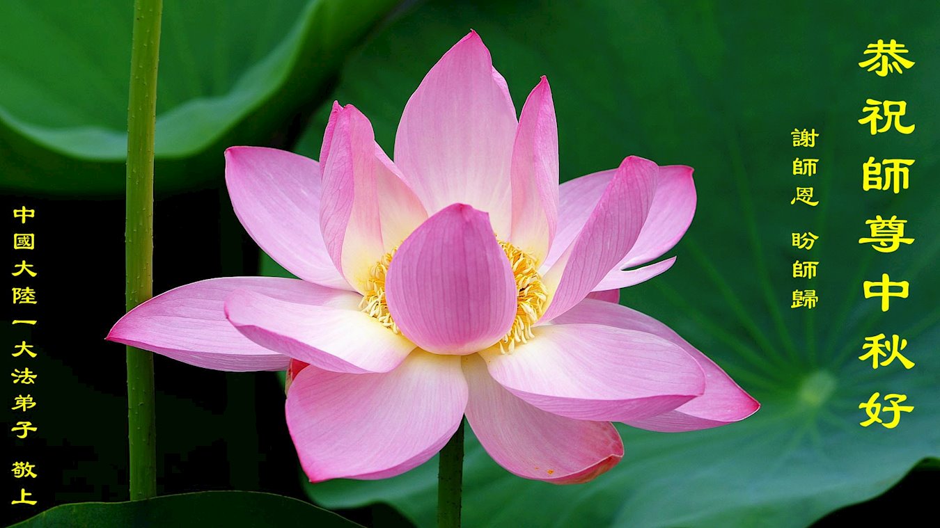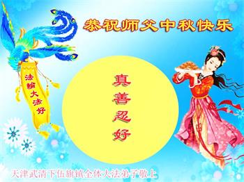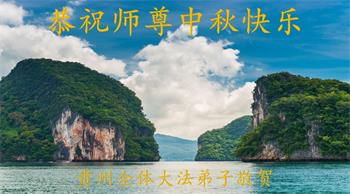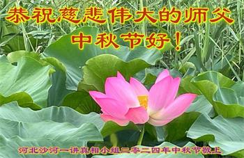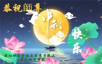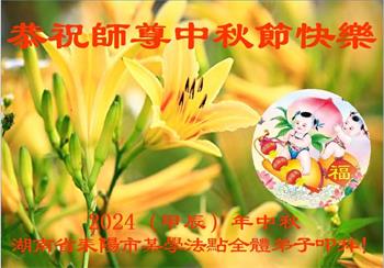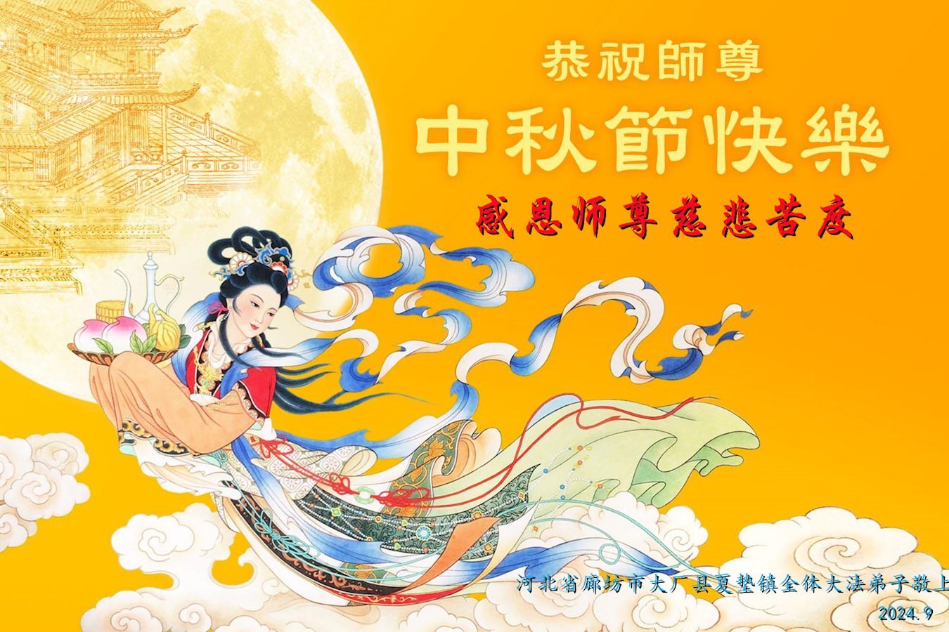慈悲伟大的师尊好:我们在大陆都曾被邪恶残酷迫害,但我们不仅无悔,且深知能做师父的弟子是我们最大的荣耀与幸福。随师正法、救度众生是我们此生的意义与重任。弟子一定尽心、尽力去做,不负师尊的期望,不负众生的盼望。遥祝慈悲伟大的师尊中秋快乐!盼望师尊早日回大陆。
