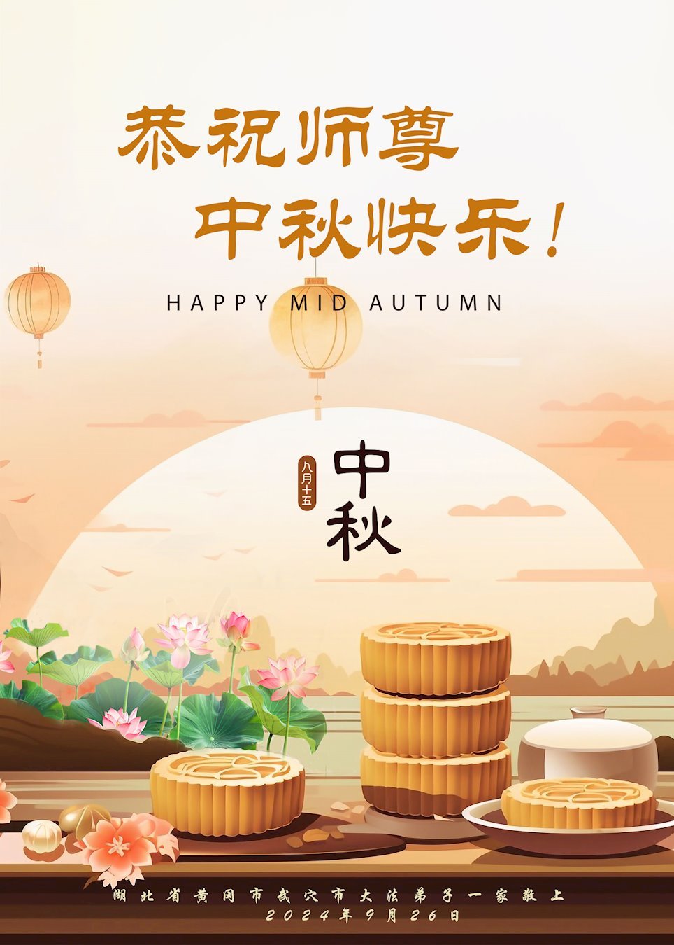 金桂飘香之时,中秋佳节即将到来之际,感恩师尊的慈悲救度,恭祝师尊甲辰年中秋节快乐!