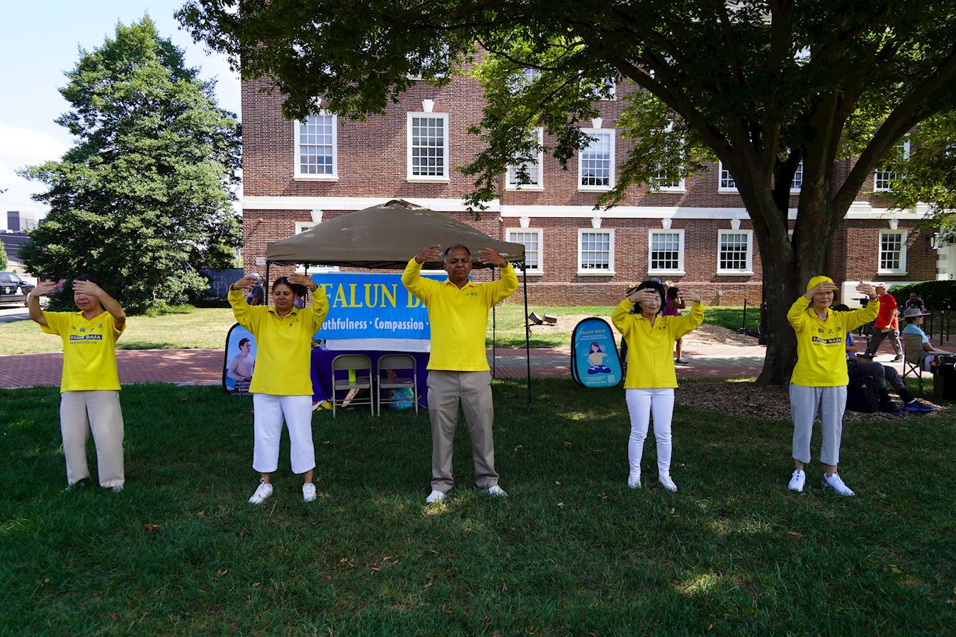 法轮功学员参加这个活动已有十几年了。法轮功学员辛迪表示,很多人看到法轮功功法展示后都很有兴趣,“很多人现在很想了解东方的功法,他们对法轮功的功法也是很接受的,有很多人认真听功法介绍,跟着学炼,也想加入法轮功集体炼功的活动。”