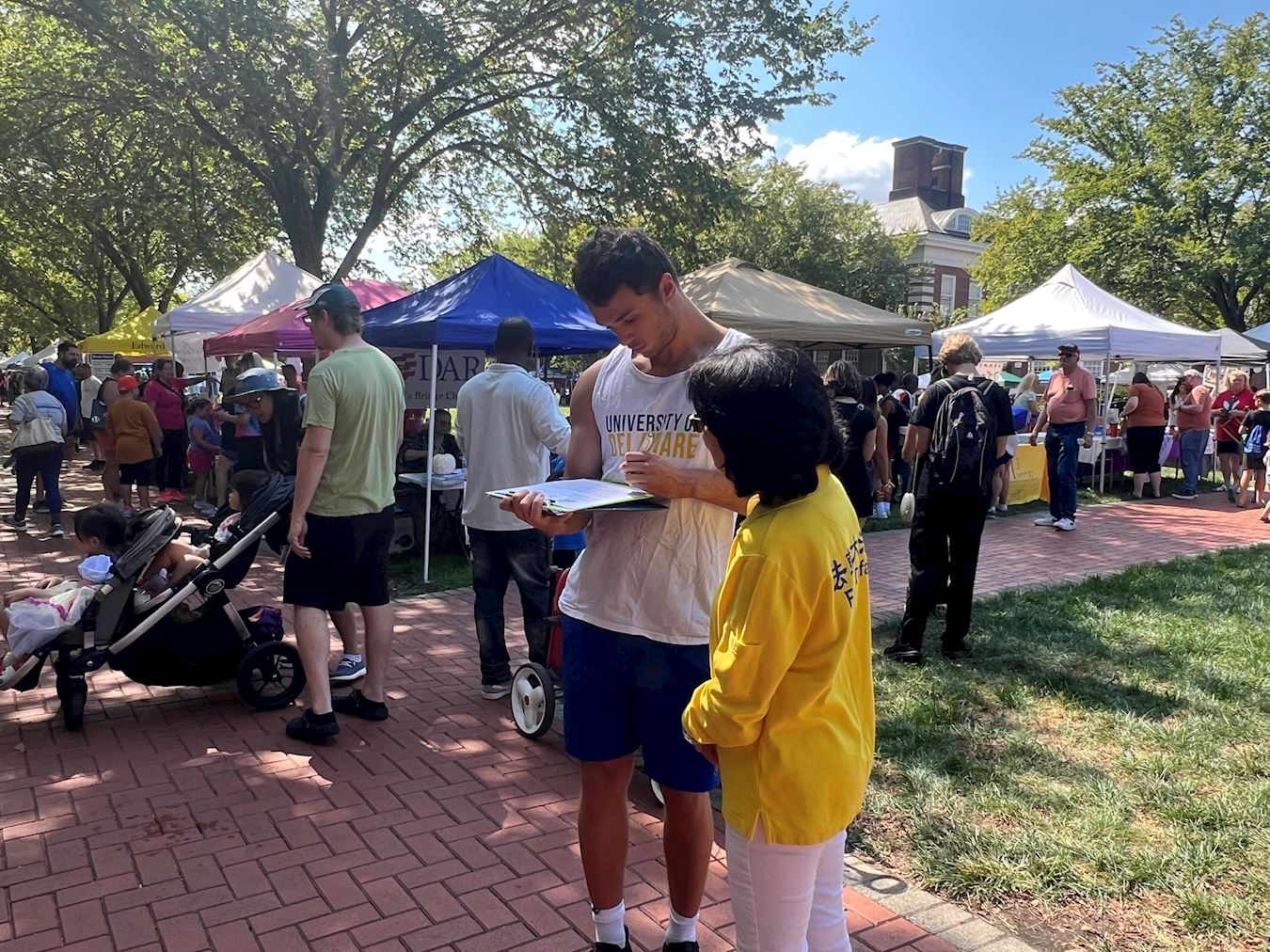 【明慧网二零二四年九月二十日】二零二四年九月十五日,美国大费城部分法轮功学员参加了特拉华州纽瓦克社区日(Community Day)活动。这是当地最大的年度庆祝活动之一,每年都吸引本地及周边包括宾夕法尼亚州、新泽西州、马里兰州的上万民众参加。